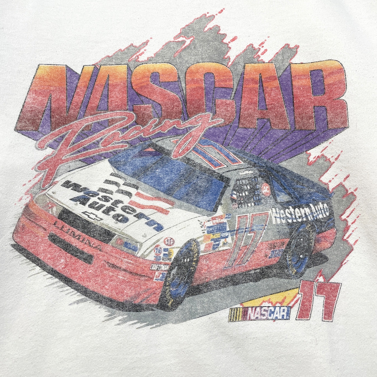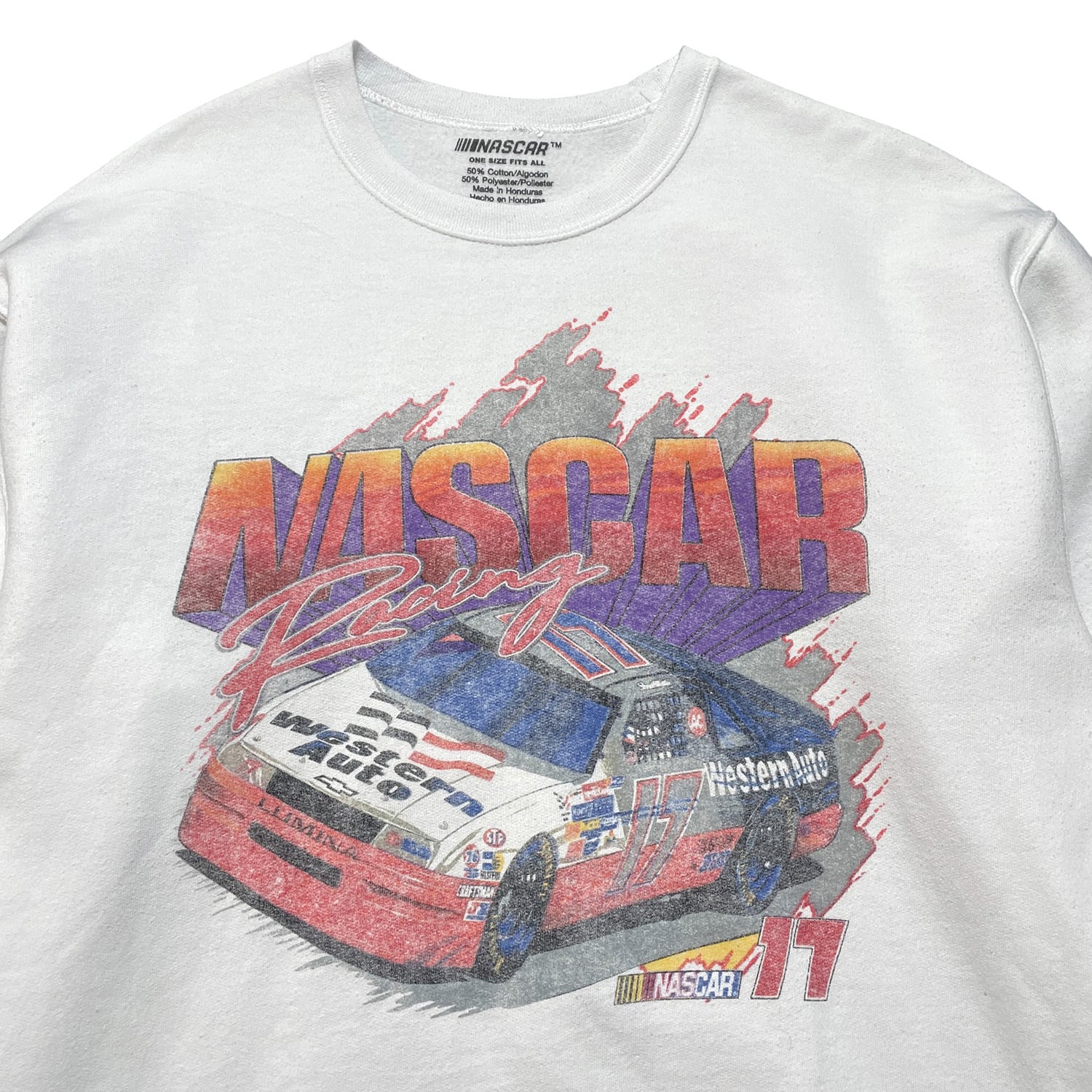 USA 古着 NASCAR ナスカー クルーネック レーシング スウェット トレーナー プリント ホワイト 白 BD3092