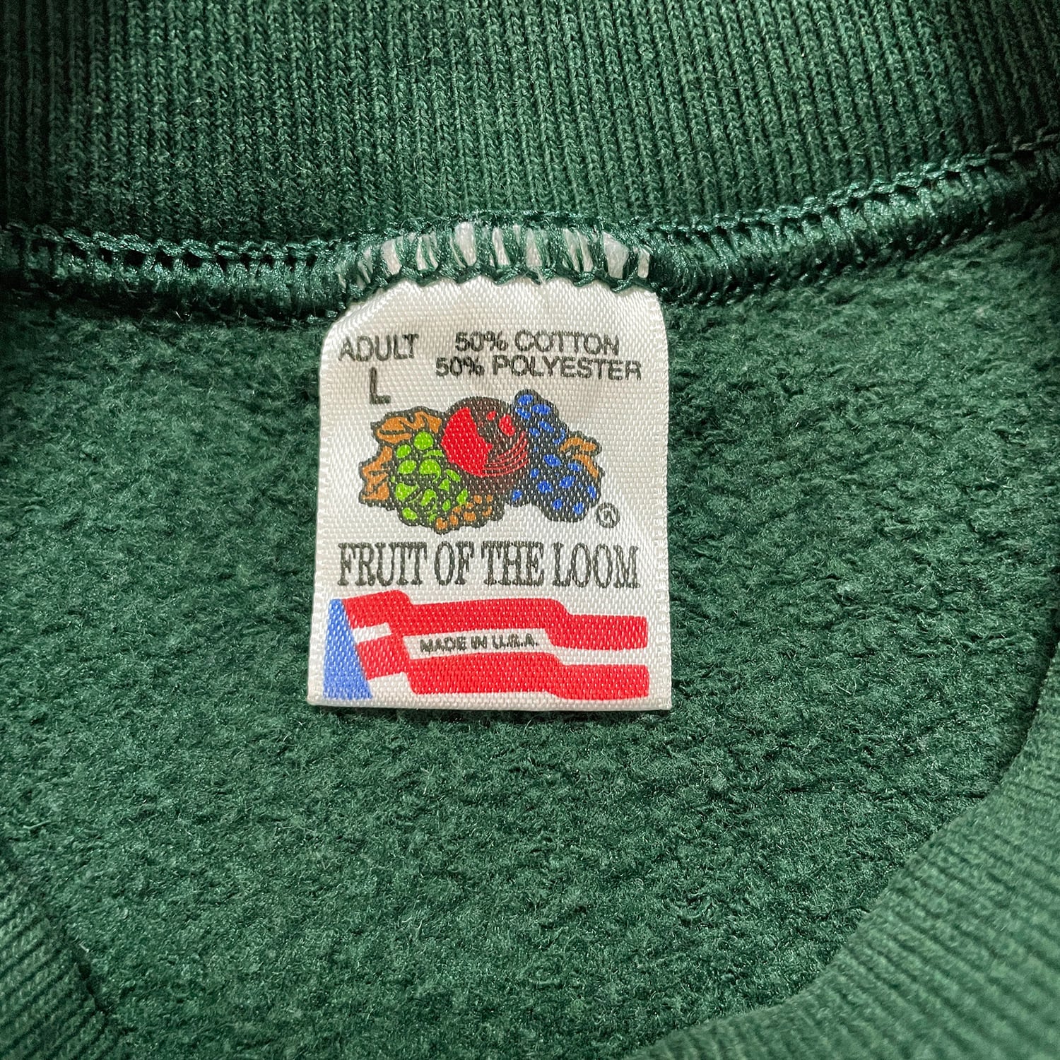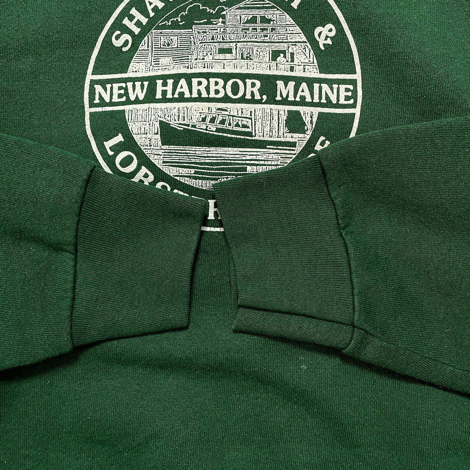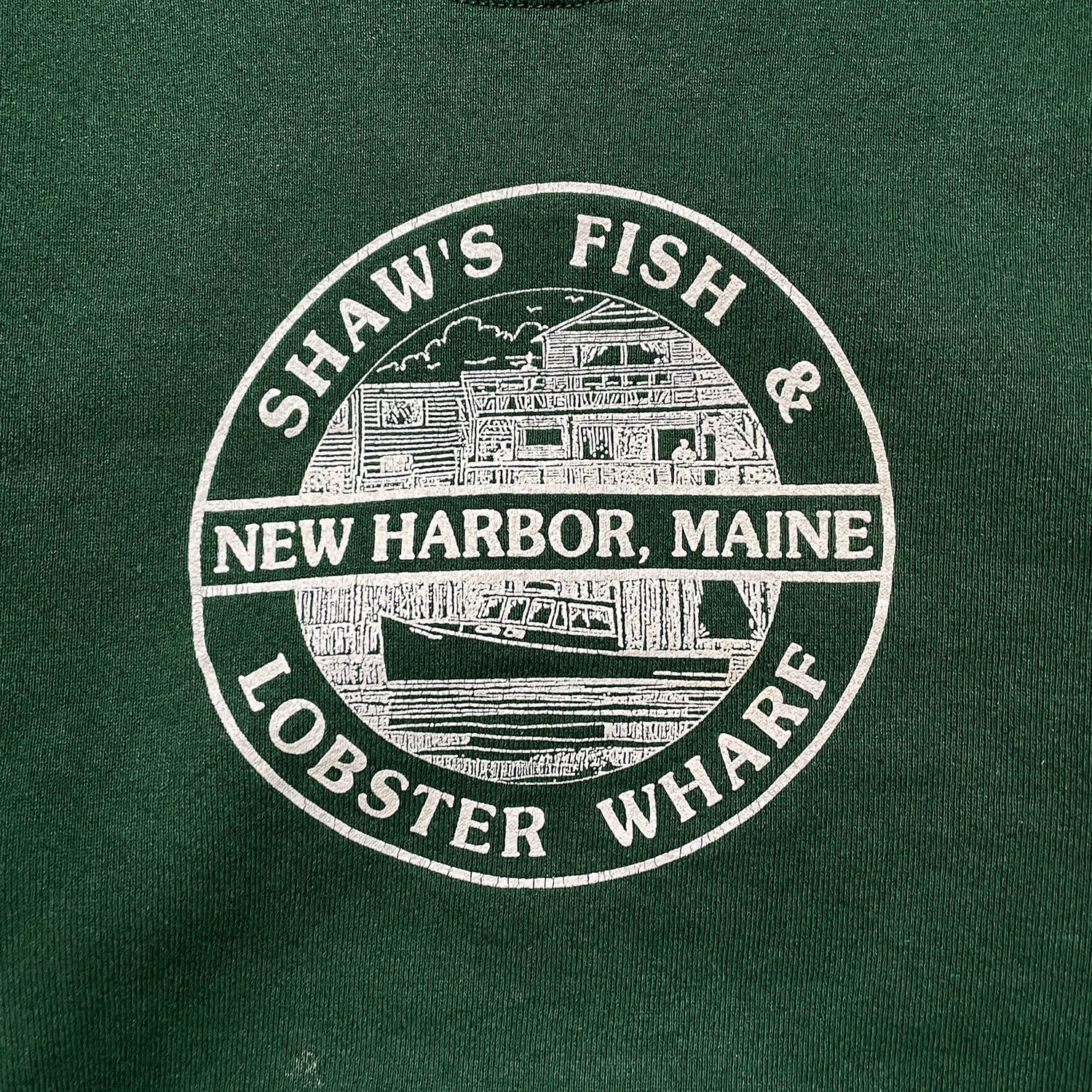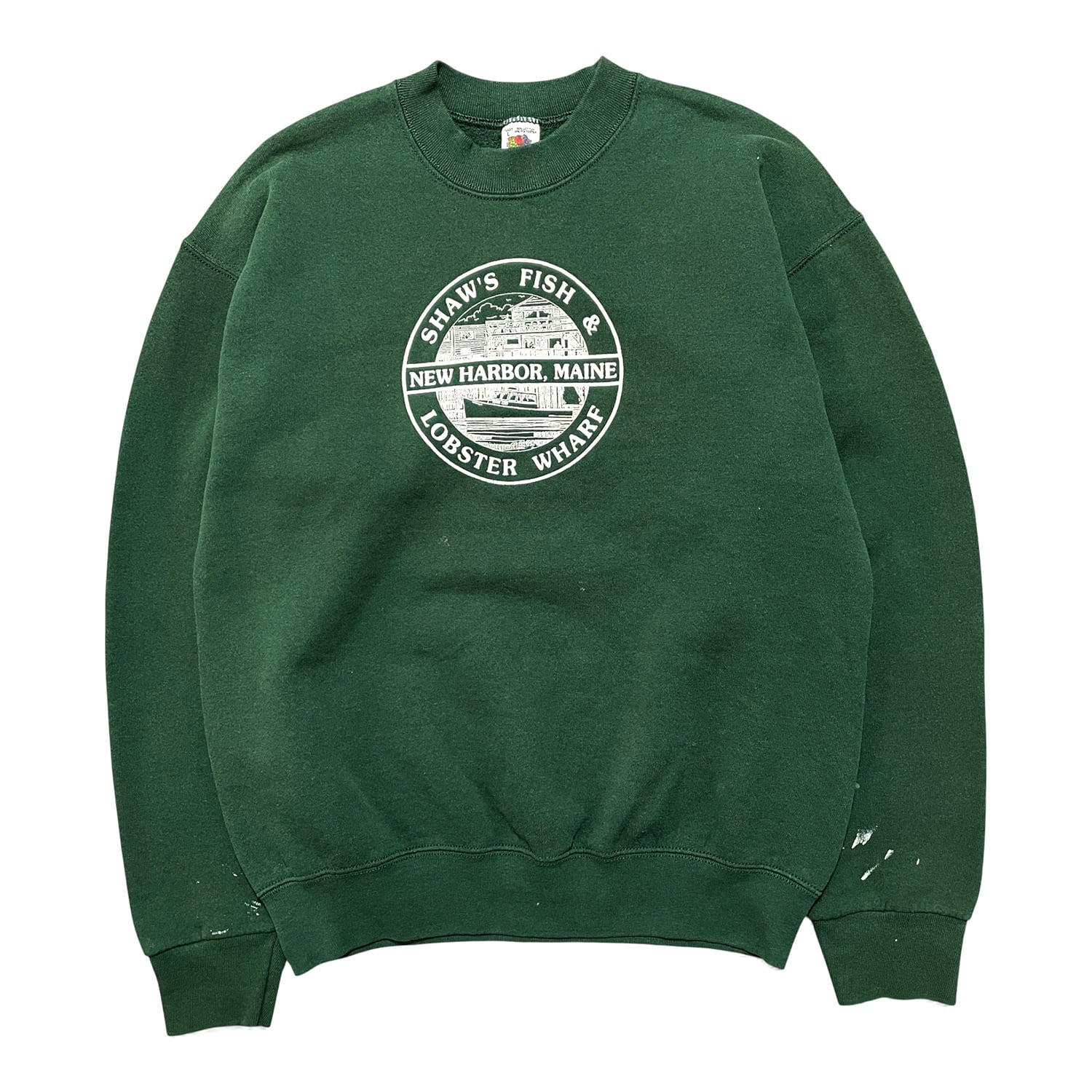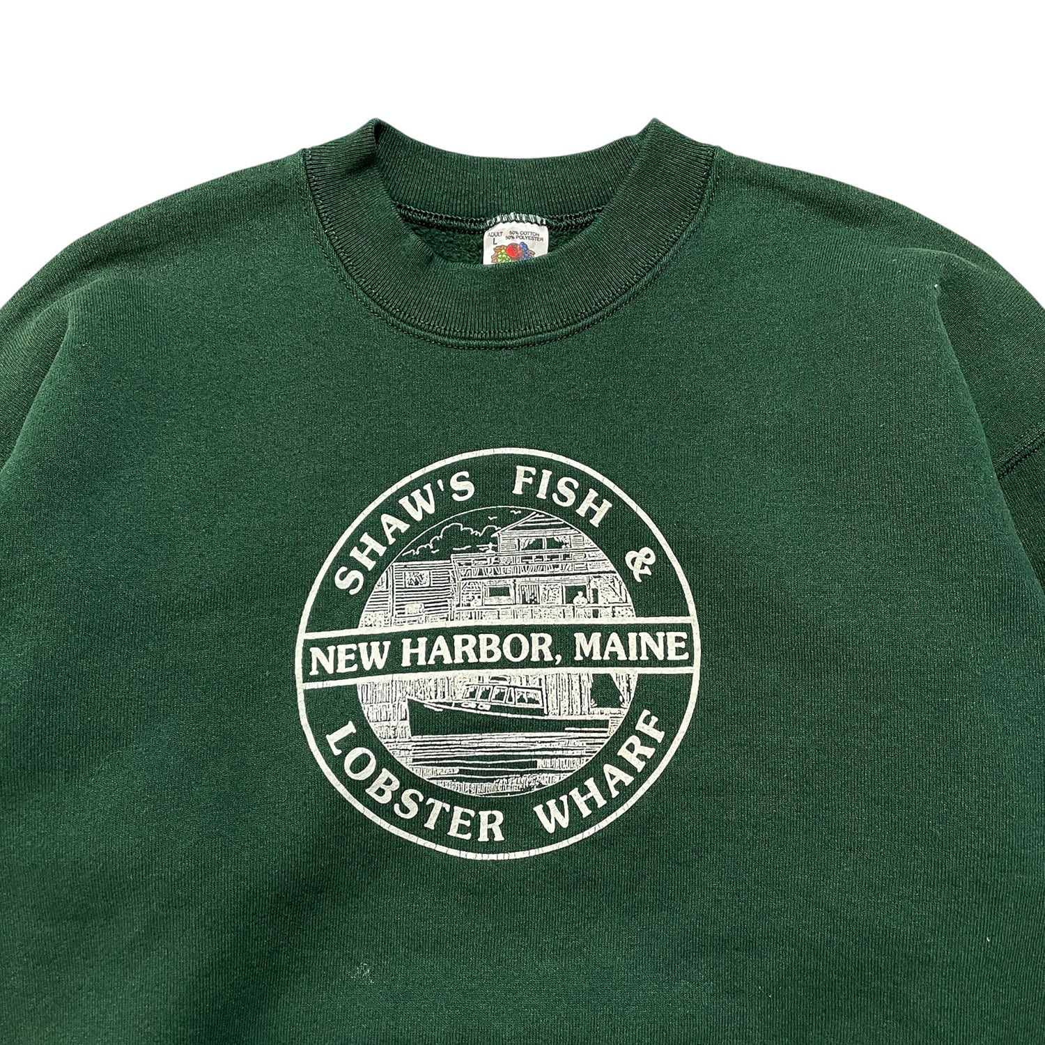 古着 USA製 90S ショーズフィッシュ&ロブスターワーフ 企業系 クルーネック ヴィンテージ スウェット トレーナー プリント グリーン メンズL BD3172