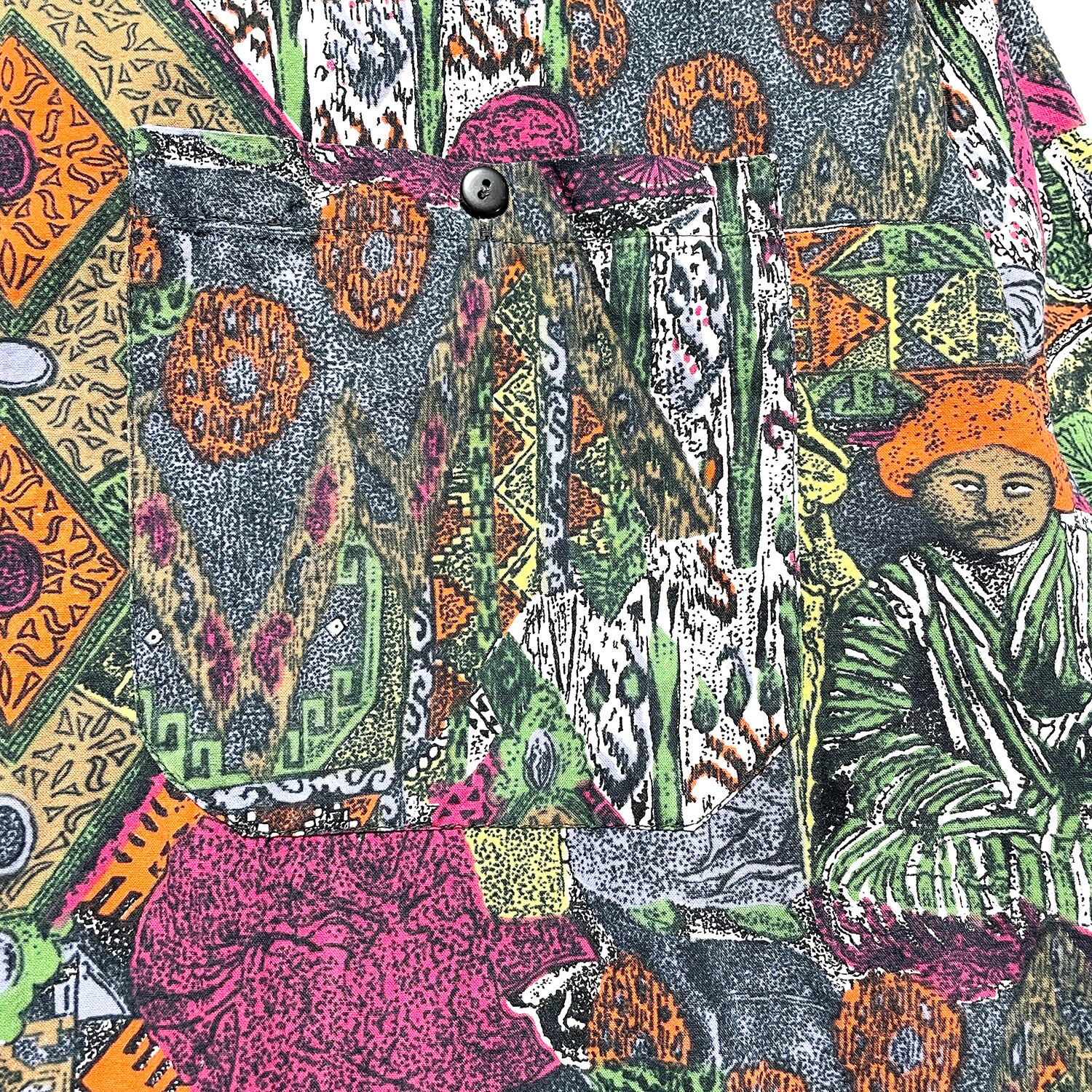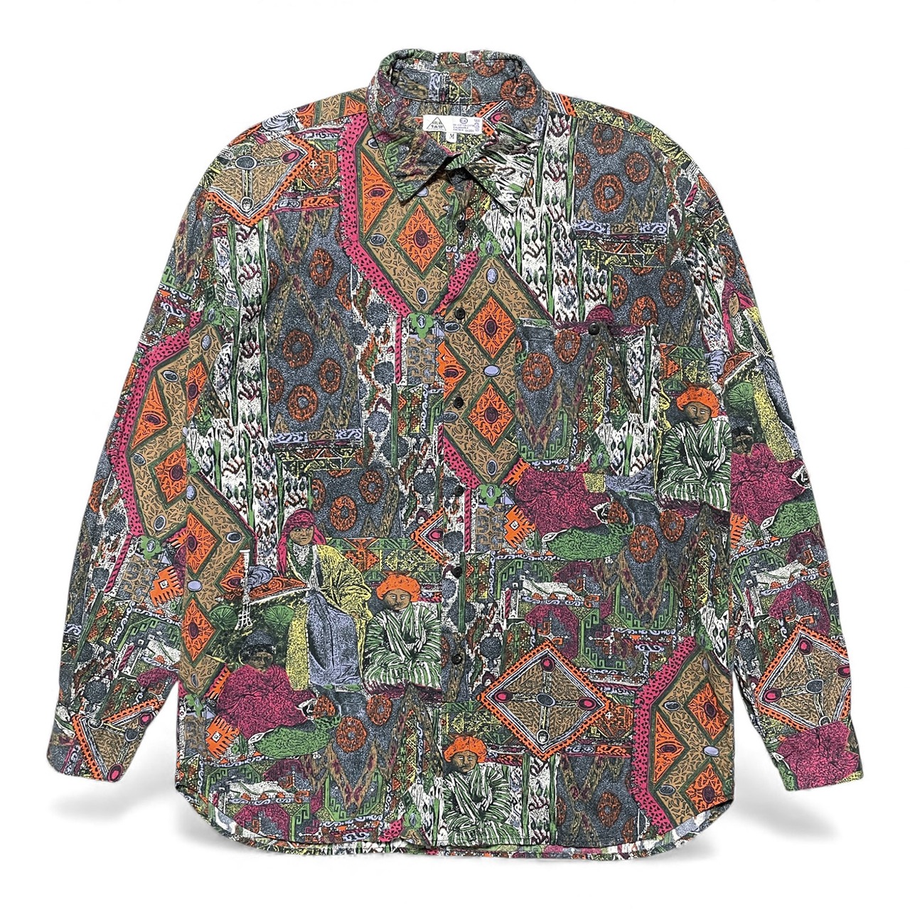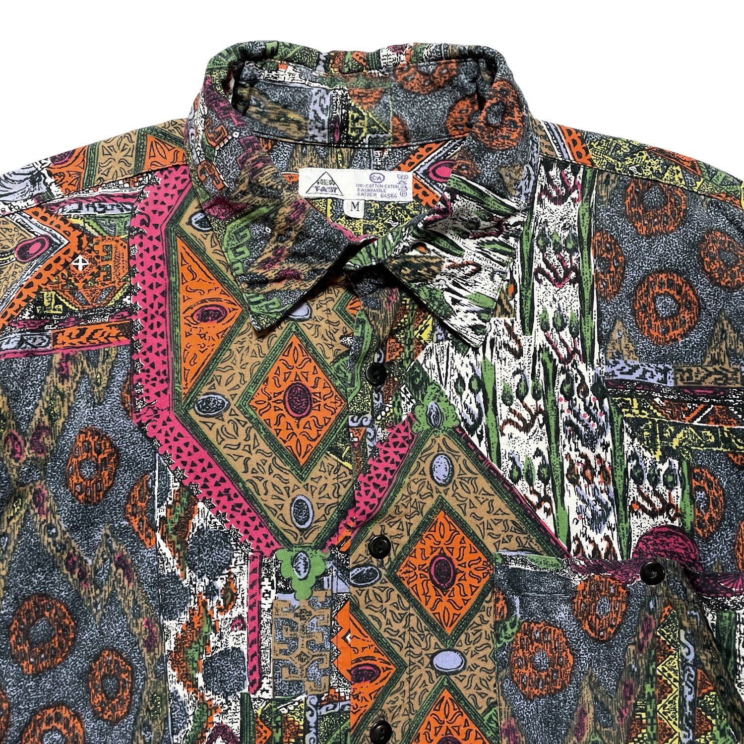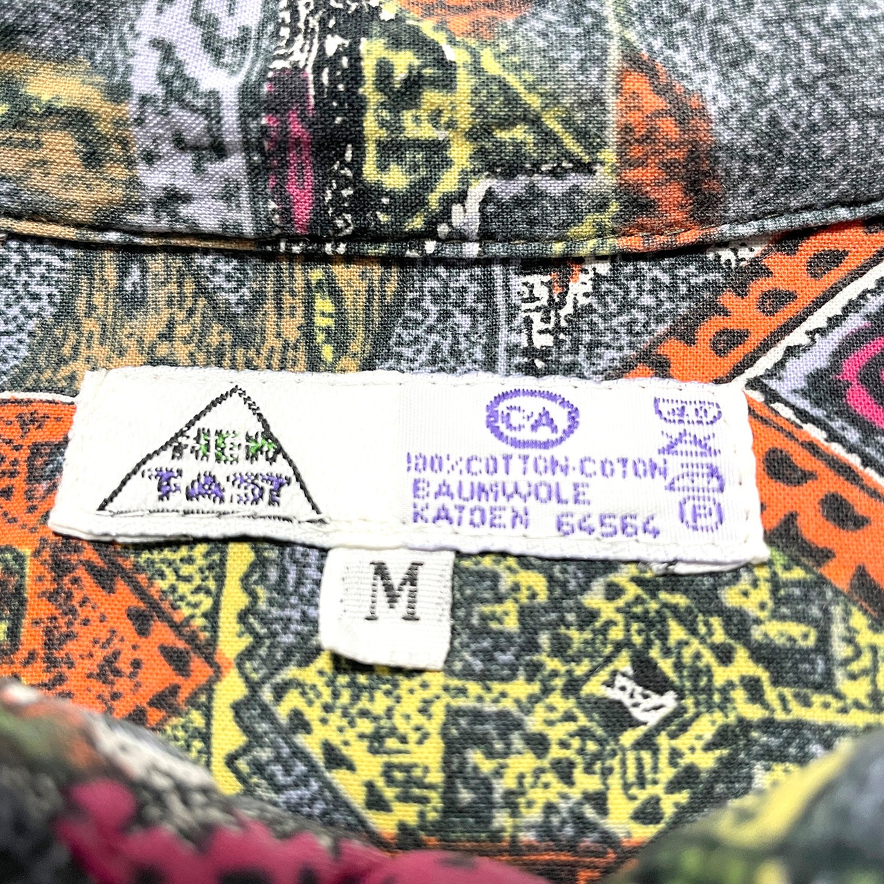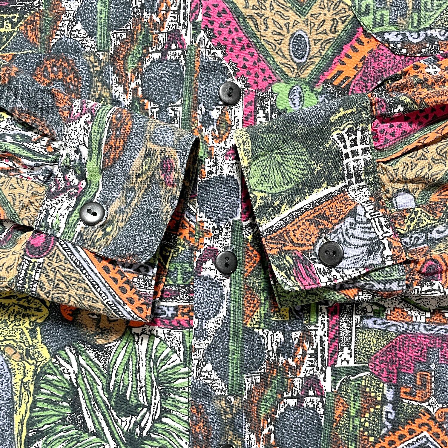 USA 古着 ヴィンテージ コットン 総柄 長袖シャツ 柄シャツ ドレスシャツ メンズM BG1198