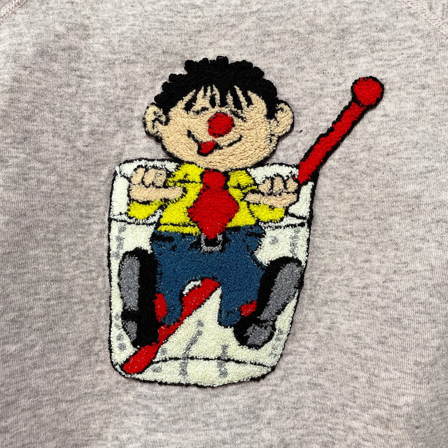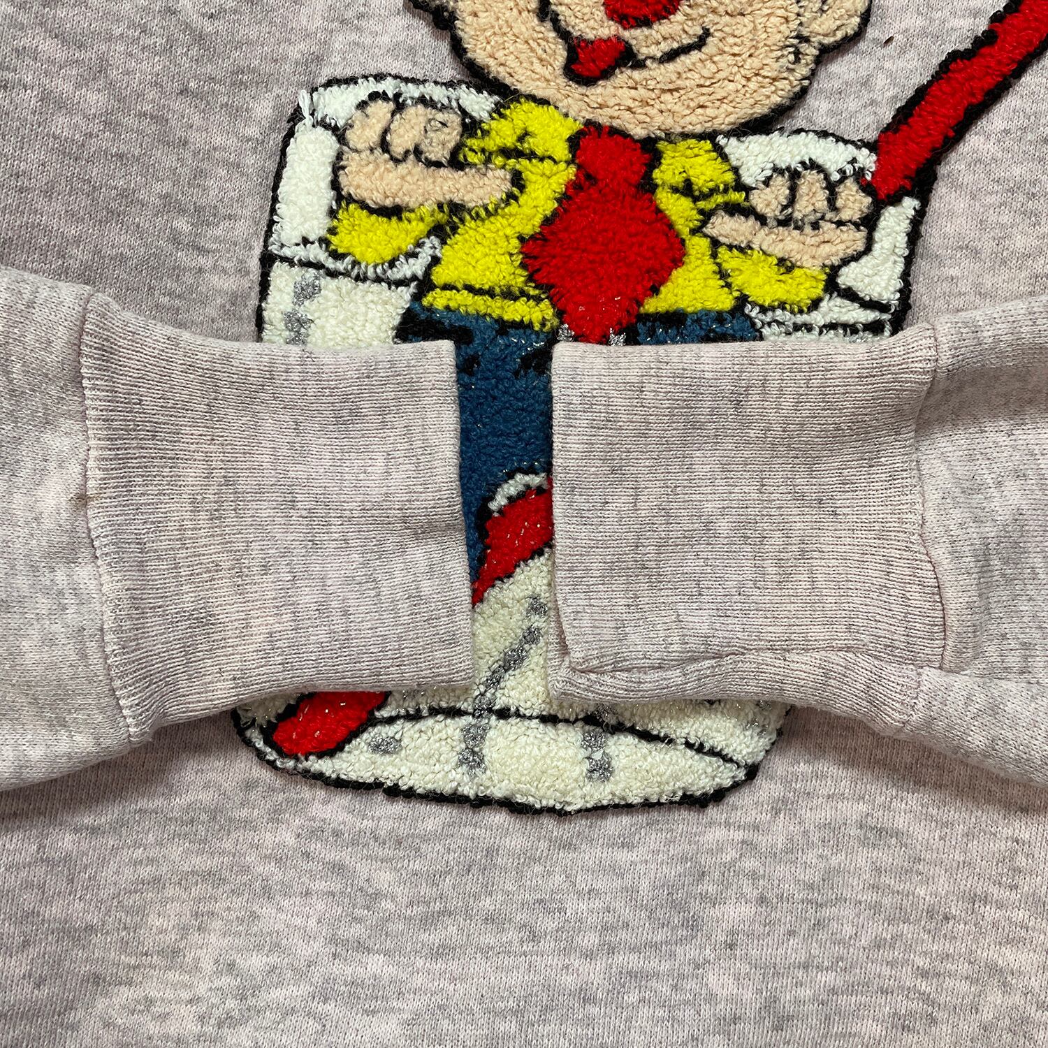 古着 USA製 90S ヴィンテージ クルーネック スウェット トレーナー パイルワッペン メンズL ピンクグレー BD3183