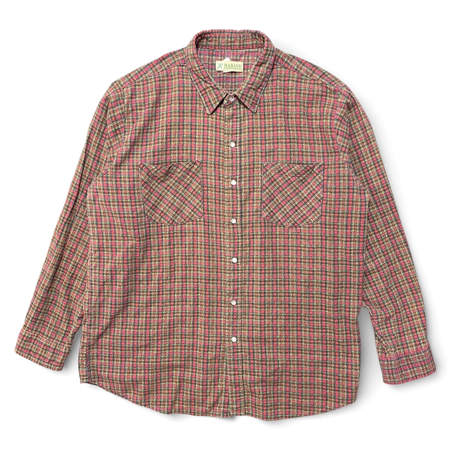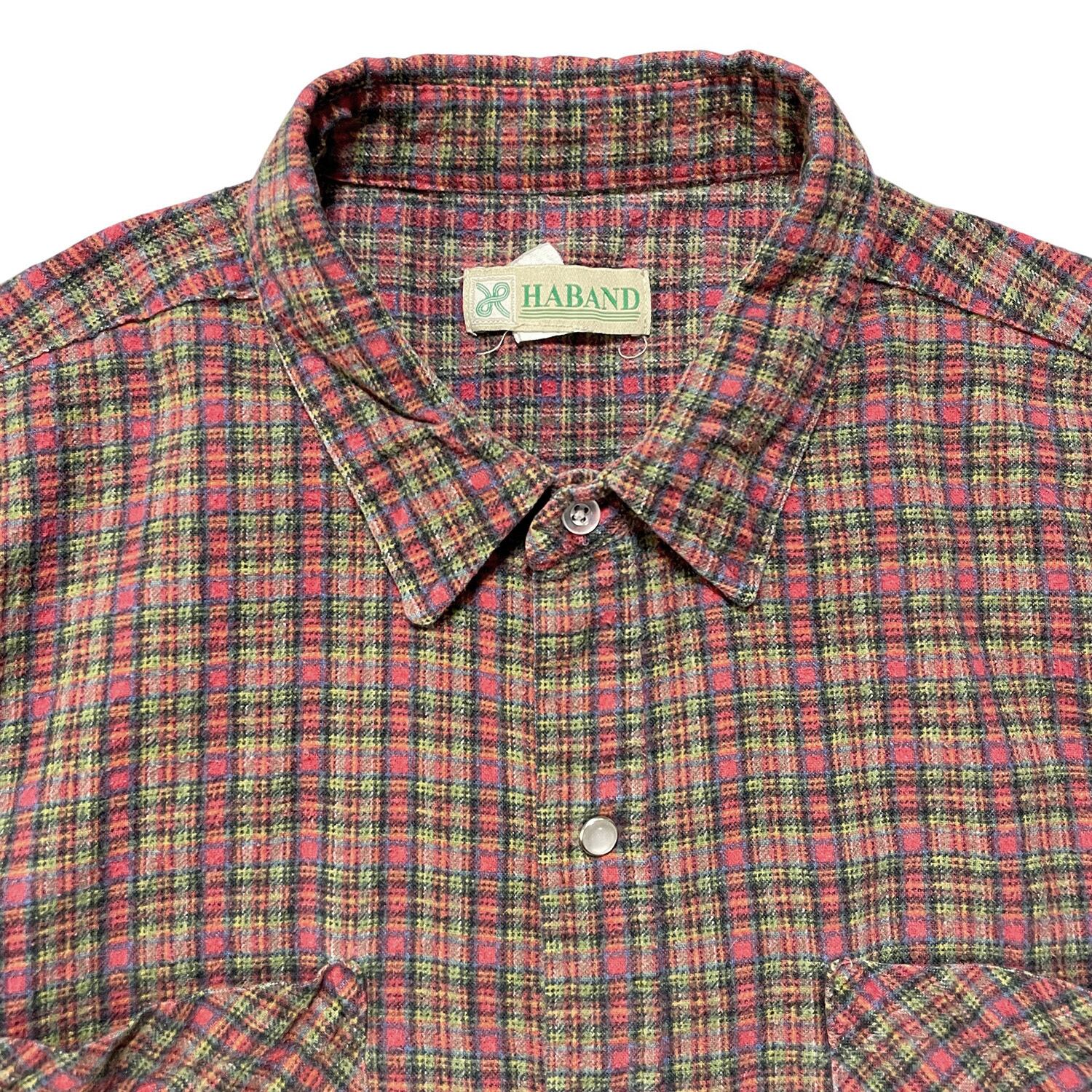 USA 古着 HABAND ヴィンテージ アウトドア コットン チェック柄 ライトフランネル 長袖シャツ プリント ネルシャツ メンズL相当 BG1206