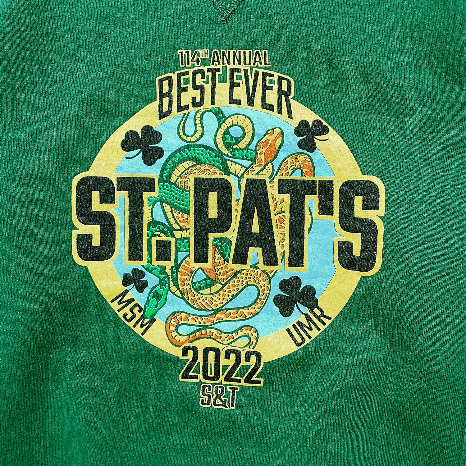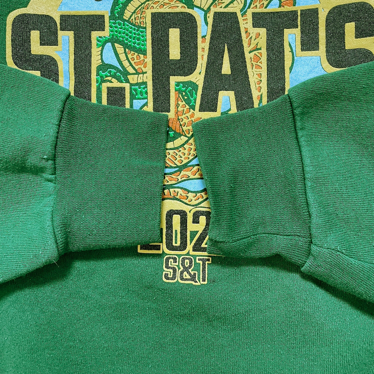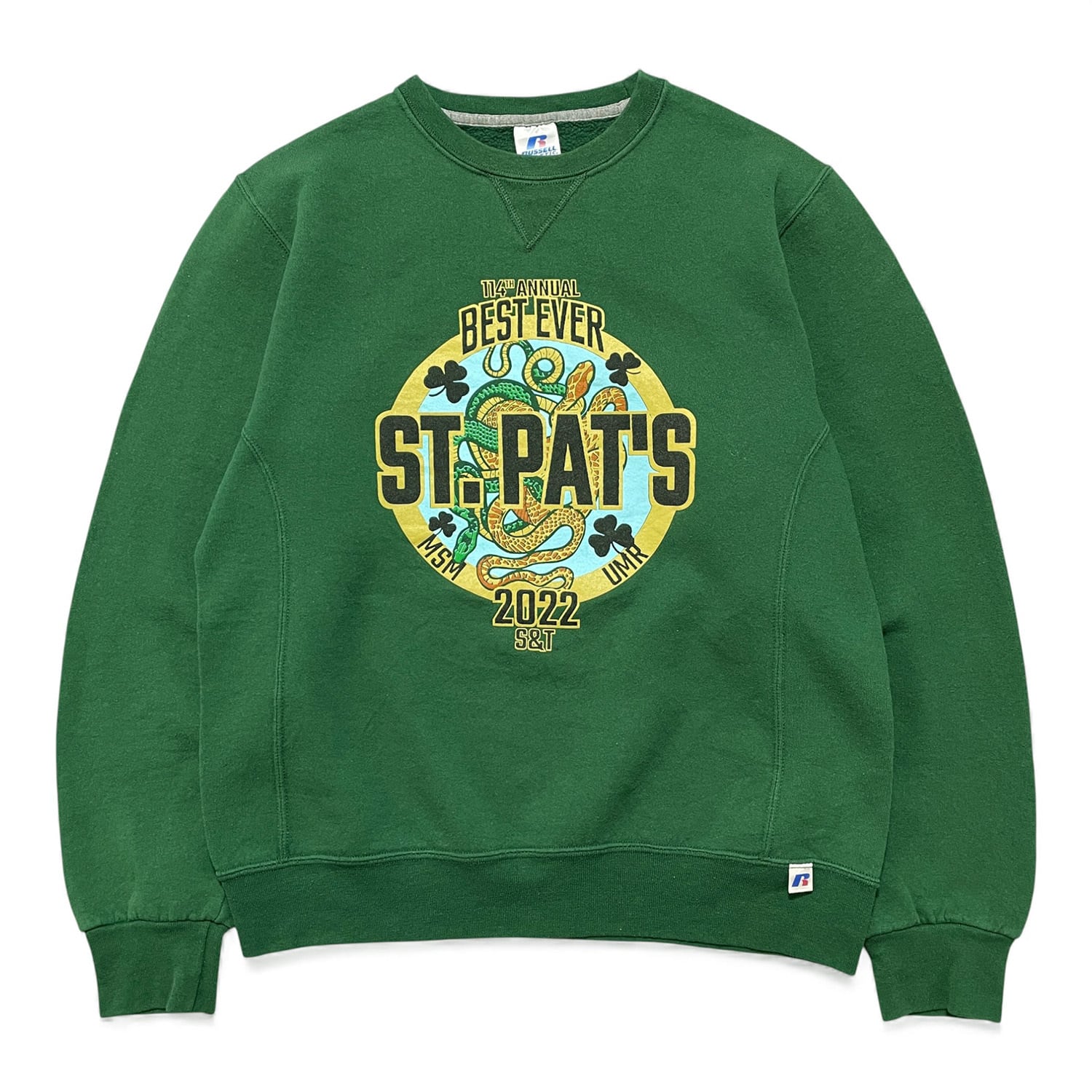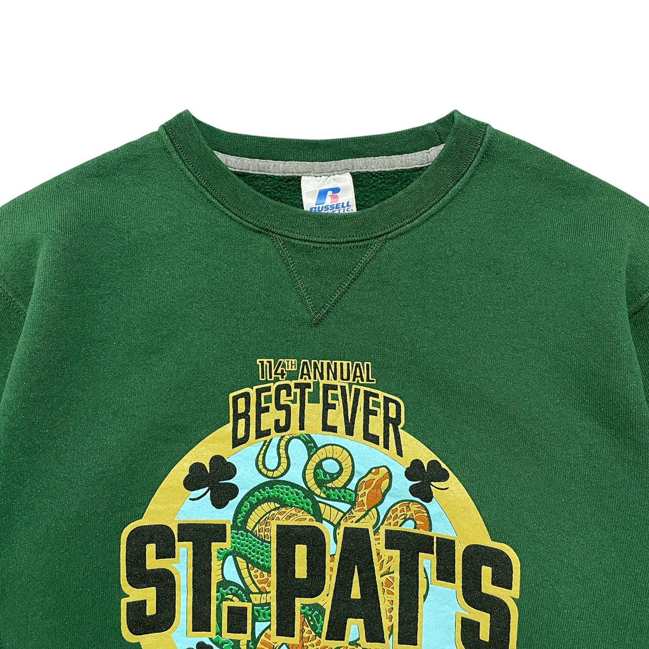 USA 古着 Russell ラッセル 前V クルーネック スウェット トレーナー セントパトリックスデイ プリント グリーン メンズM BD3170