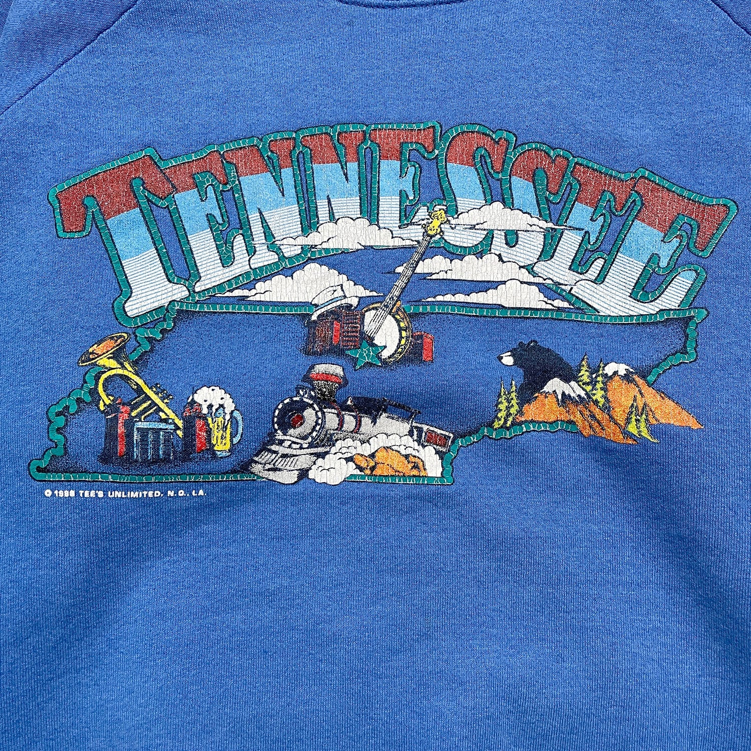 USA 古着 80S ヴィンテージ クルーネック スウェット トレーナー テネシー プリント ブルー メンズXL 程度 BD3168