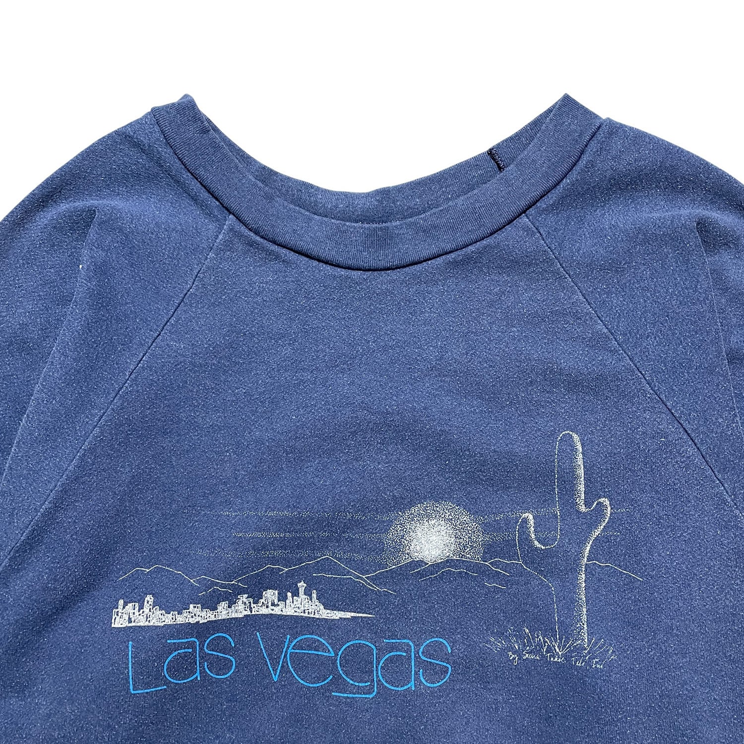 古着 USA製 80S ラスベガス ヴィンテージ クルーネック スウェット トレーナー プリント ネイビー メンズXL BD3166
