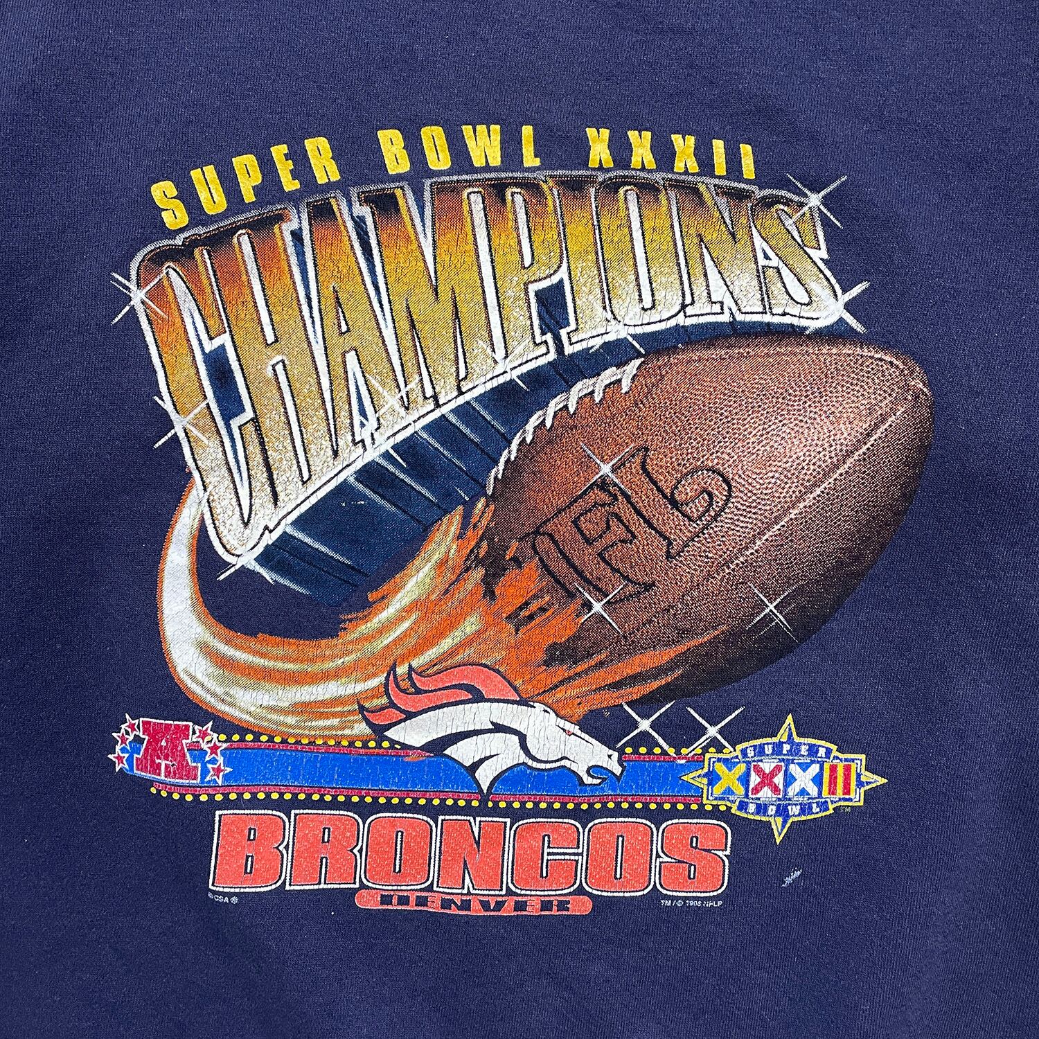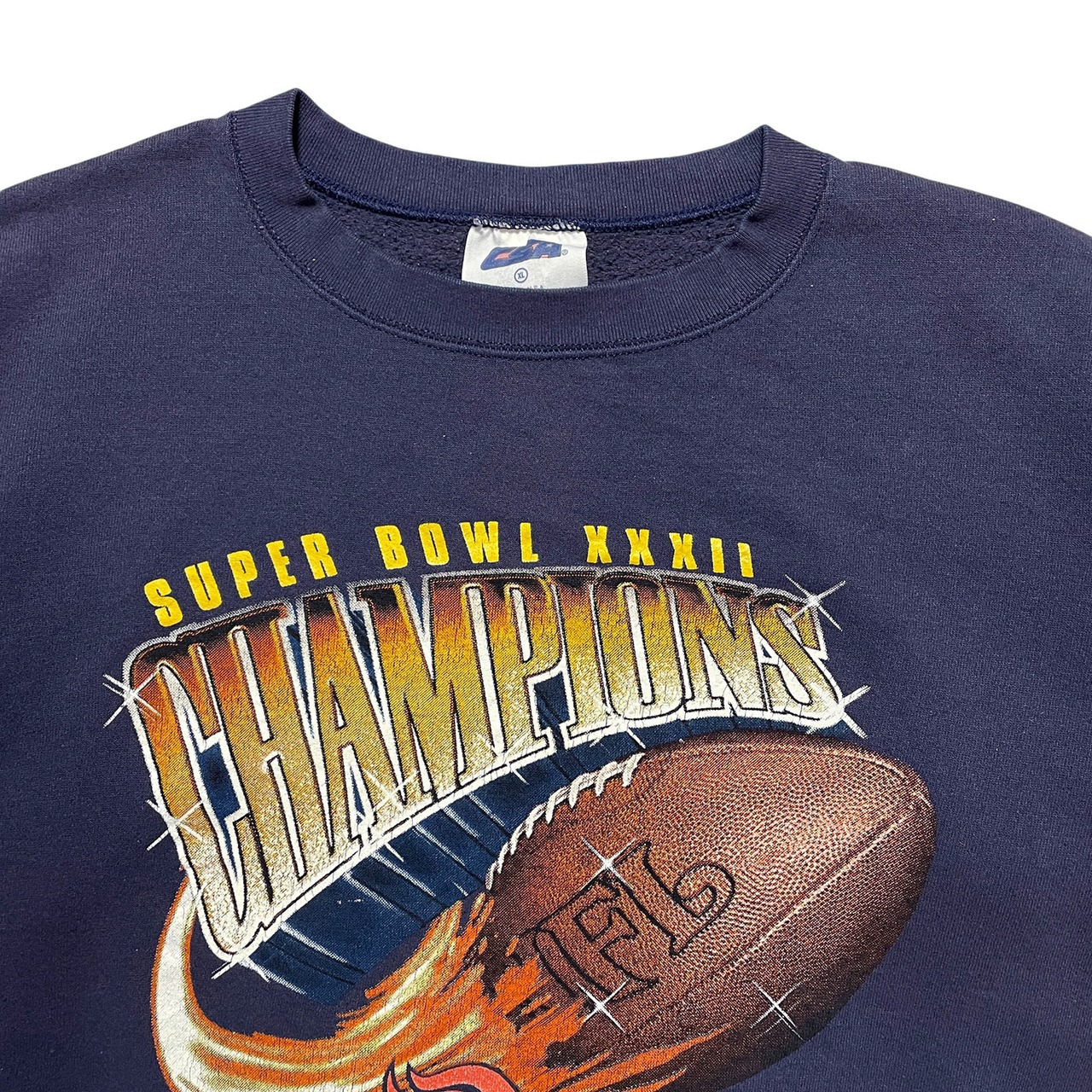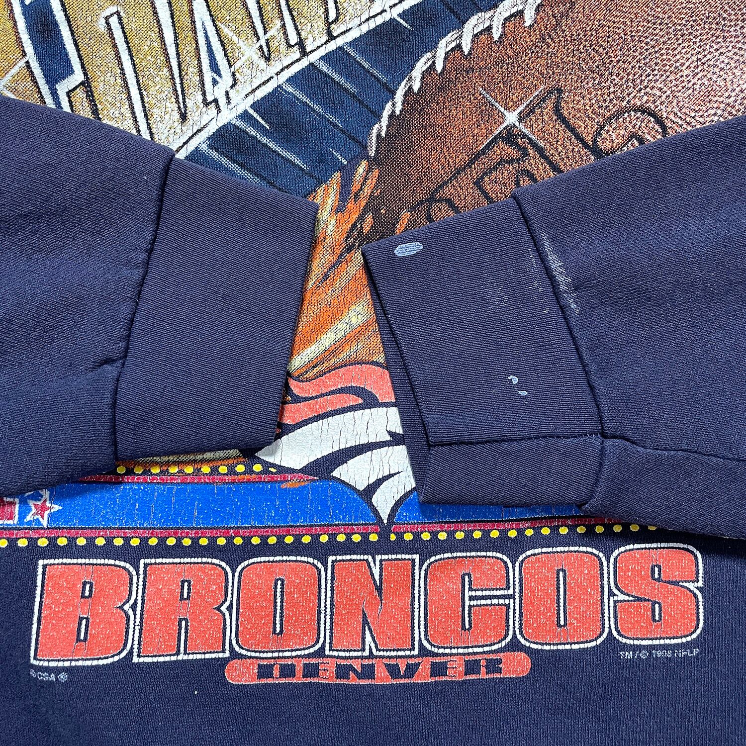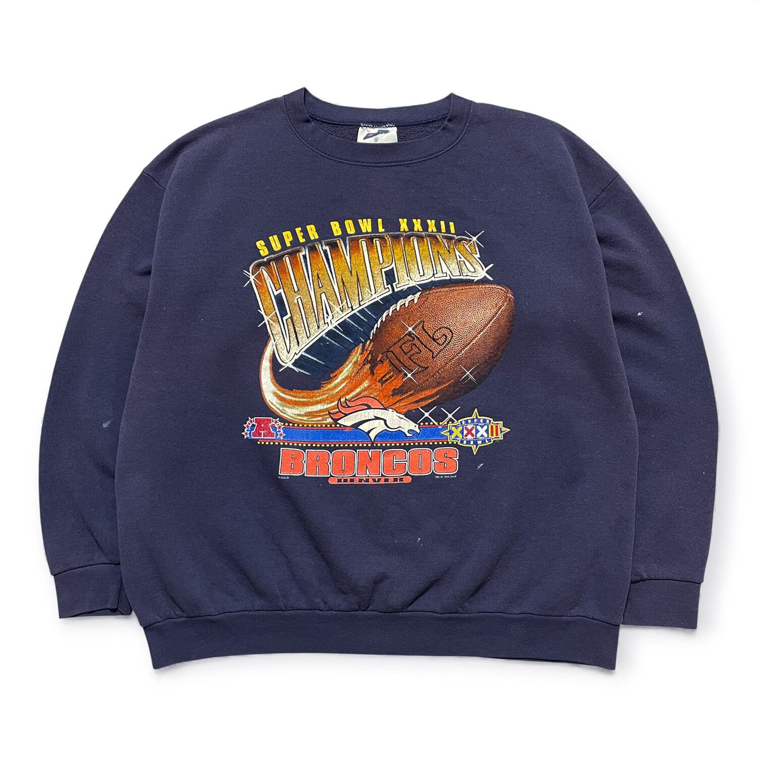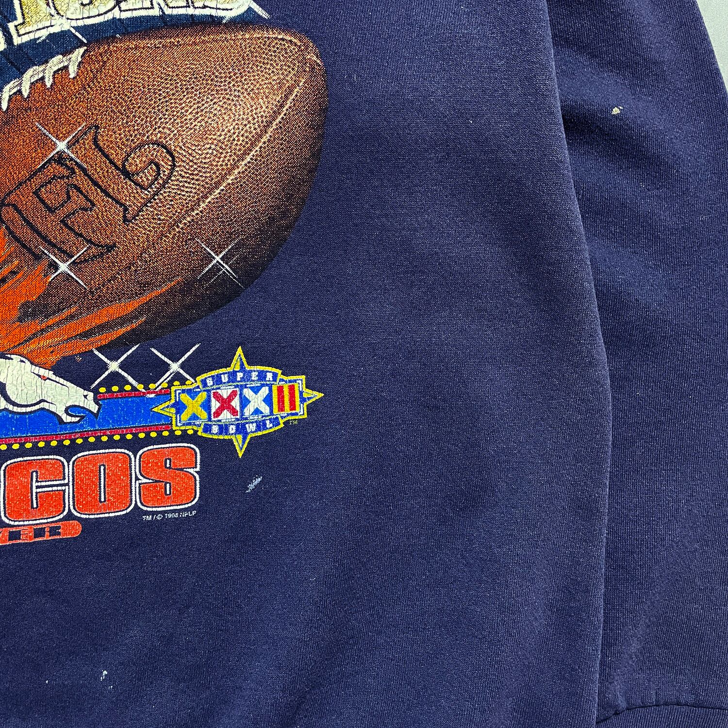 古着 USA製 90S NFL デンバーブロンコス スーパーボウル ヴィンテージ スウェット トレーナー プリント ネイビー メンズXL BD3165