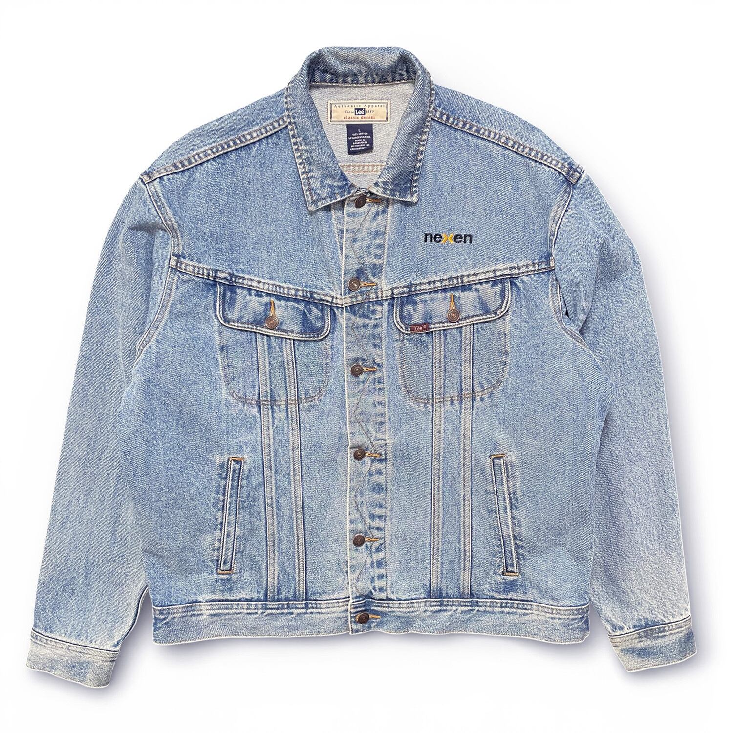 USA 古着 90S Lee NEXEN ヴィンテージ 企業系 デニムジャケット ジージャン トラッカージャケット 刺繍 ワークジャケット メンズL AK0367