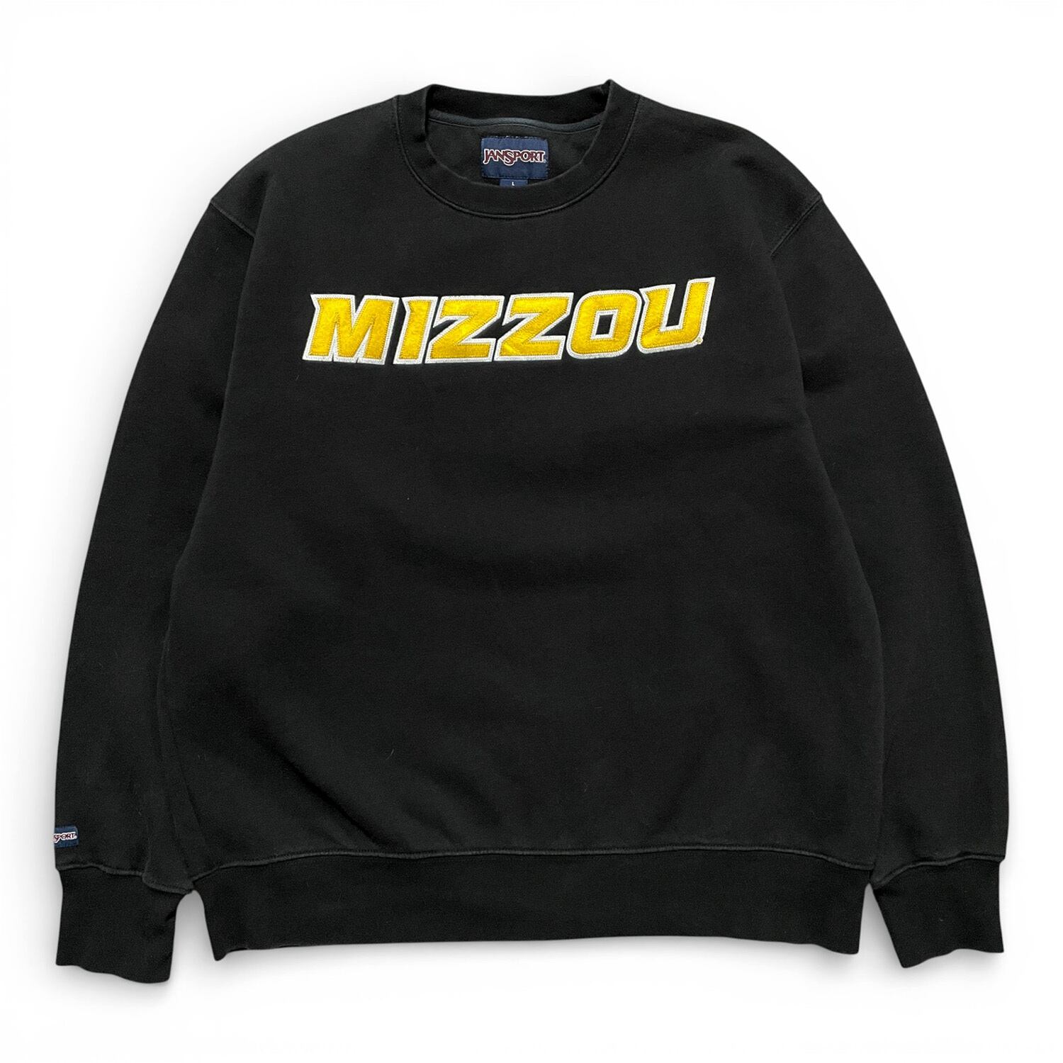 USA 古着 JANSPORT ミズーリ大学 カレッジ クルーネック スウェット トレーナー ロゴ ブラック 黒 メンズLBD3190