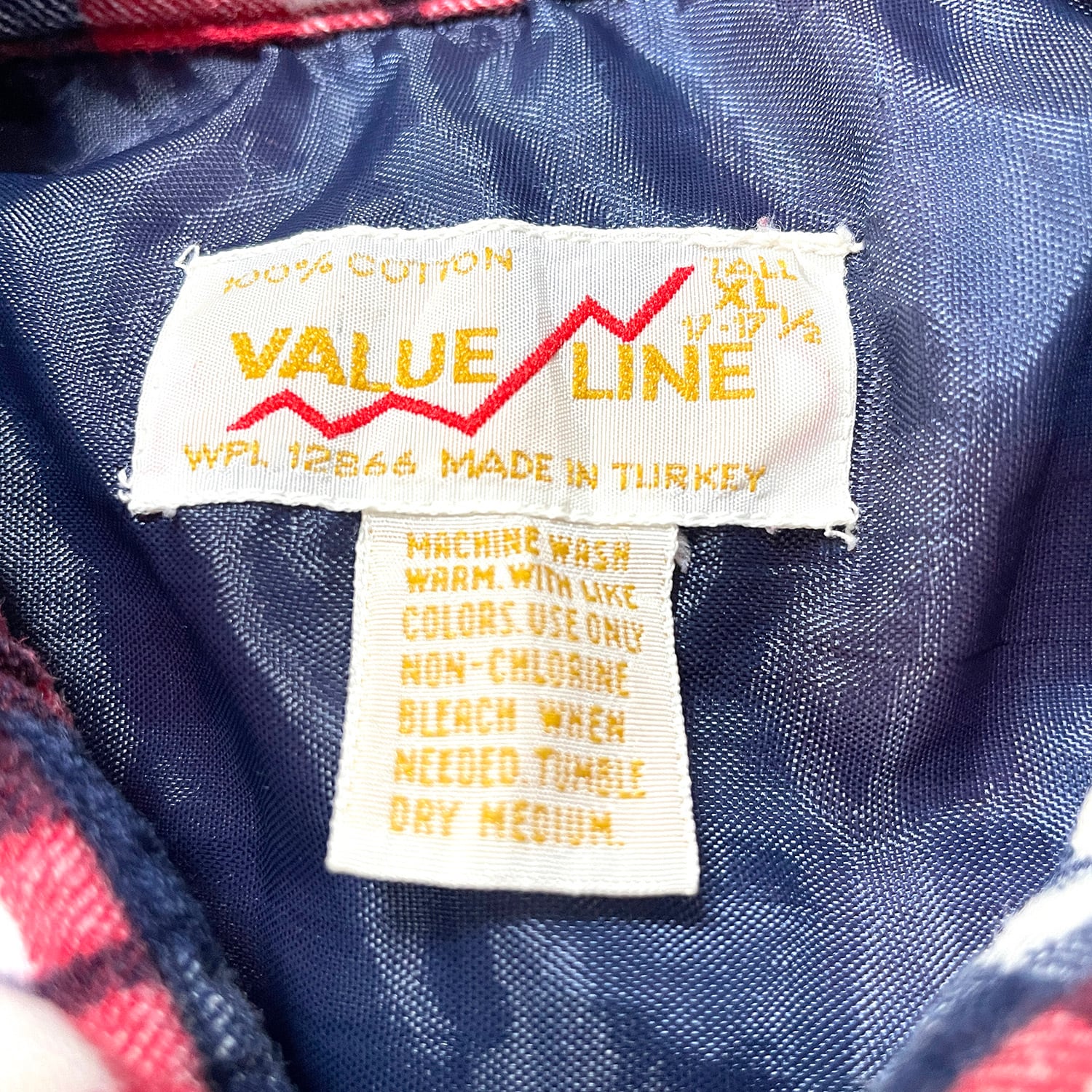 USA 古着 80S VALUE LINE ヴィンテージ コットン チェック柄 ライトフランネル ネルシャツ 長袖シャツ メンズXL BG1234