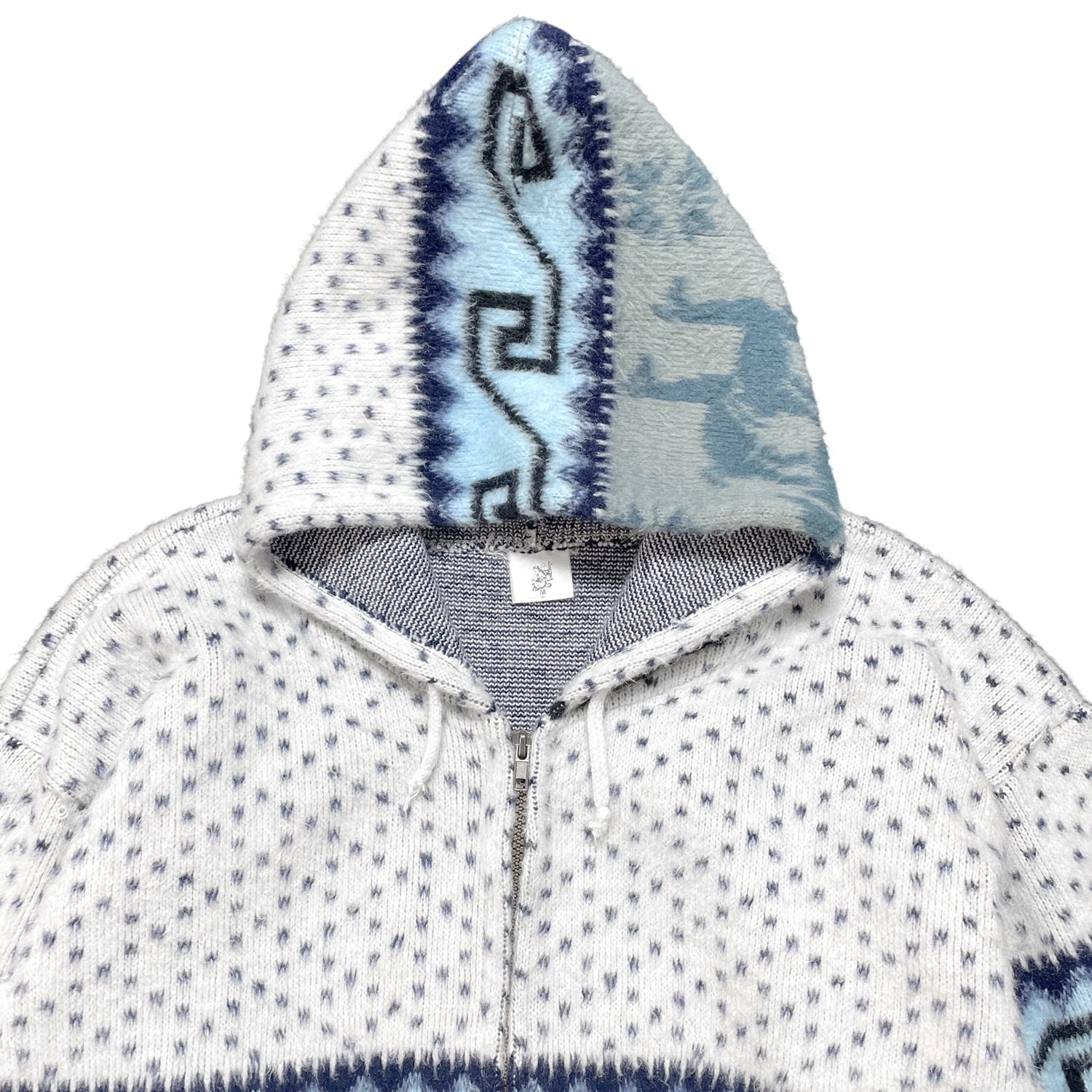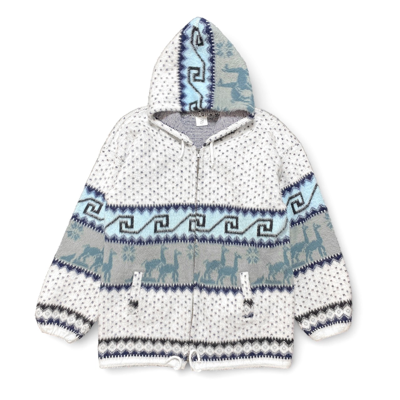 USA 古着 エクアドル製 ヴィンテージ ジップアップ フーディー アクリル パーカ ラマ ネイティブ メンズM オリエンタル パーカ AK0370