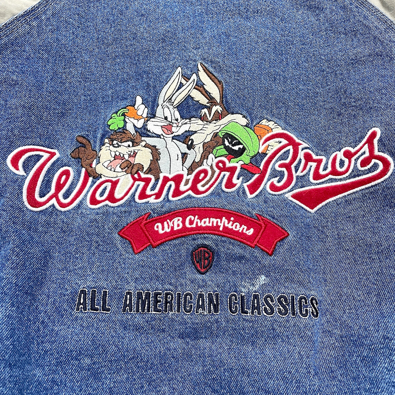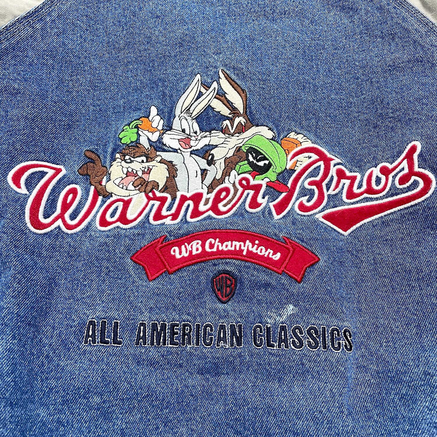 USA 古着 ワーナーブラザーズ ルーニーテューンズ ヴィンテージ 中綿 ブルゾン スタジャン デニムブルゾン メンズS AK0372