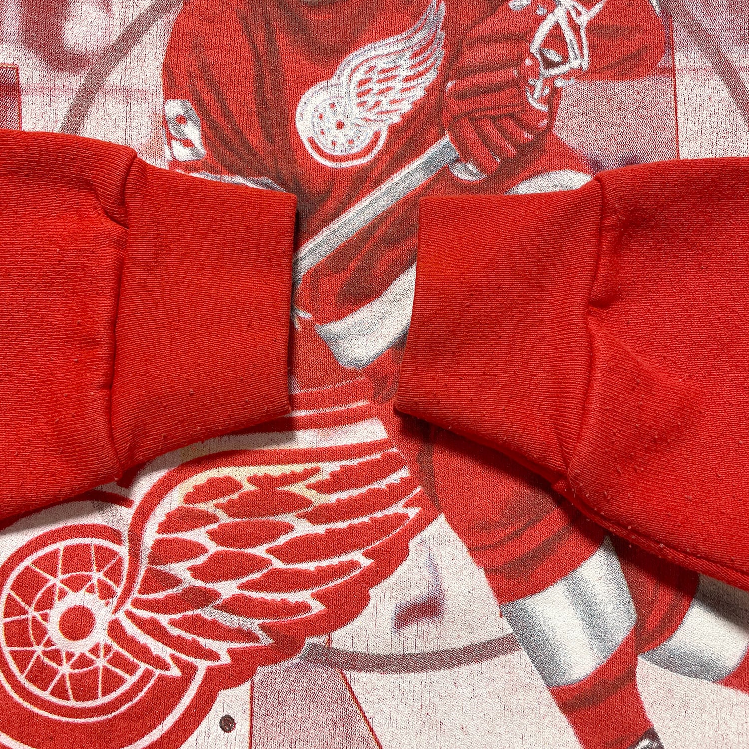 USA 古着 NHL デトロイトレッドウィングス スティーブアイザーマン スウェット トレーナー プリント レッド メンズL 程度 BD3228
