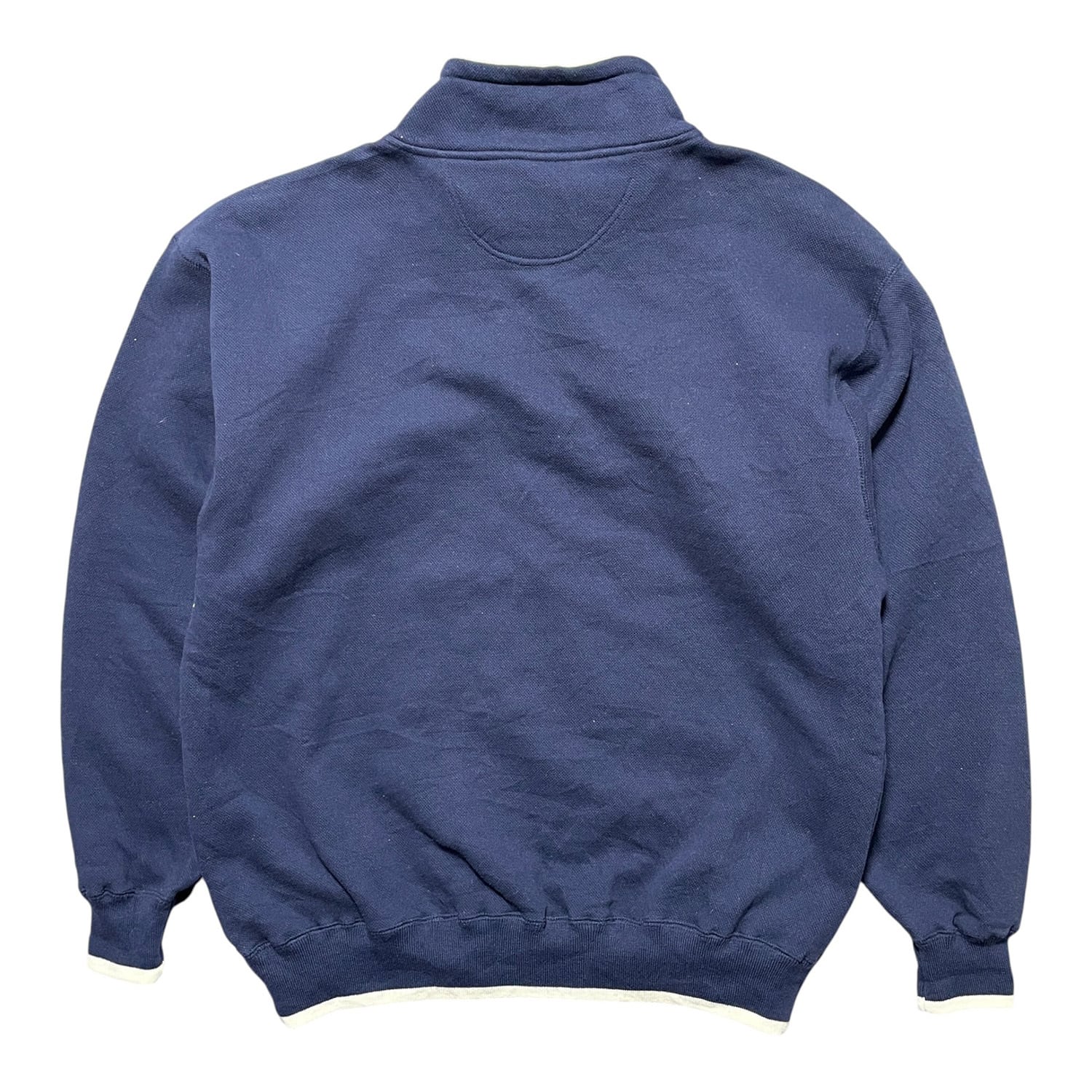 USA 古着 企業系 ヴィクトリアクリッパー ハーフジップ スウェット トレーナー 刺繍 ロゴ ワンポイント ネイビー メンズL BD3224