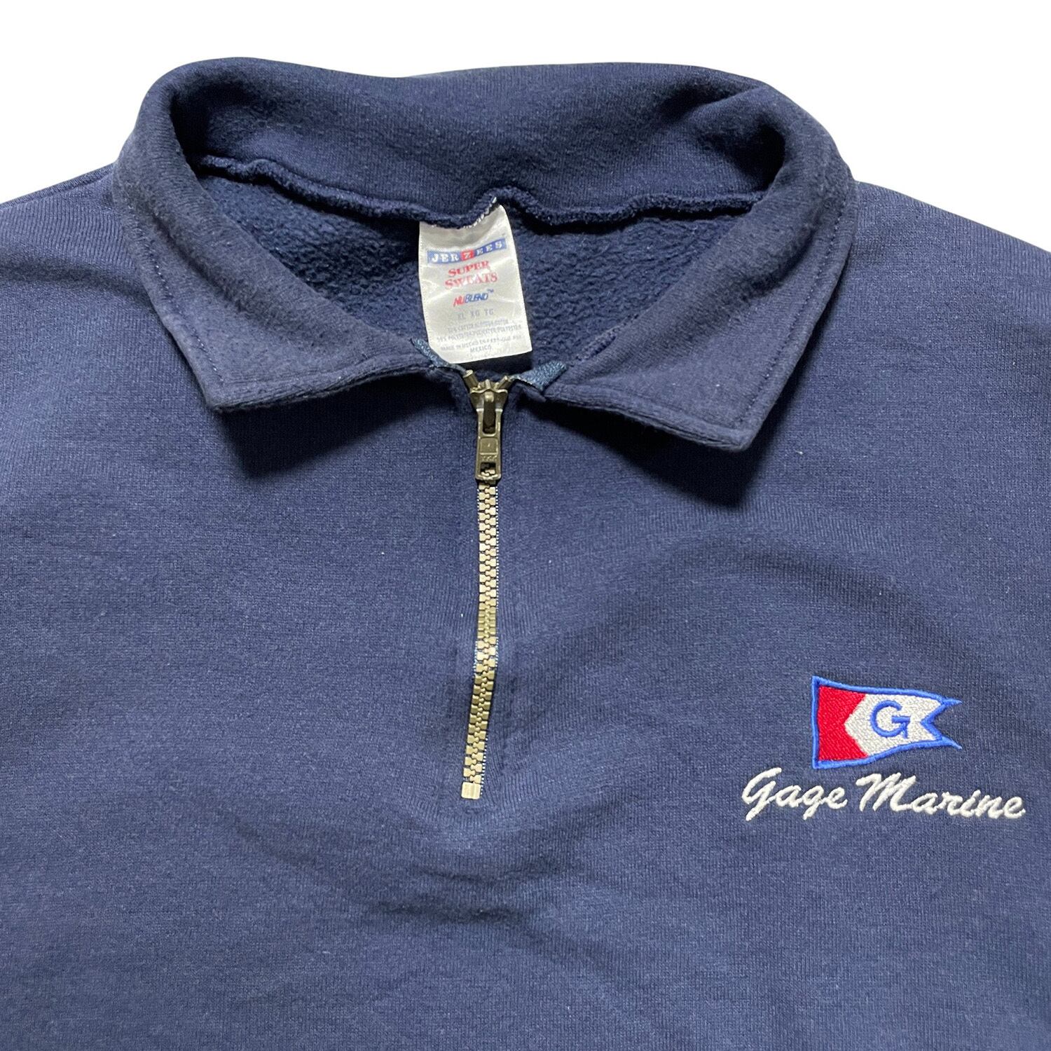 USA 古着 企業系 ハーフジップ スウェット トレーナー 刺繍 ロゴ ワンポイント ネイビー メンズXL BD3225