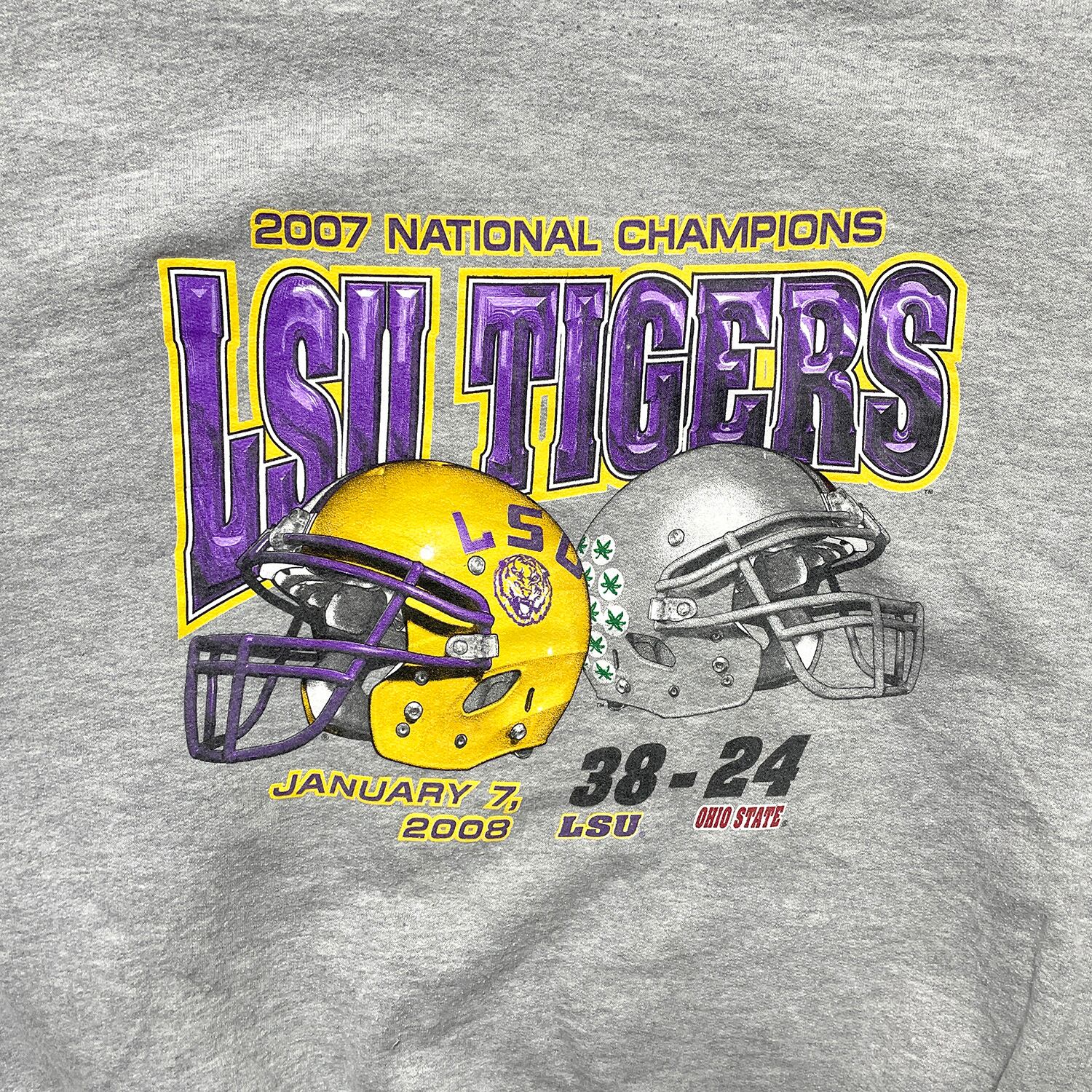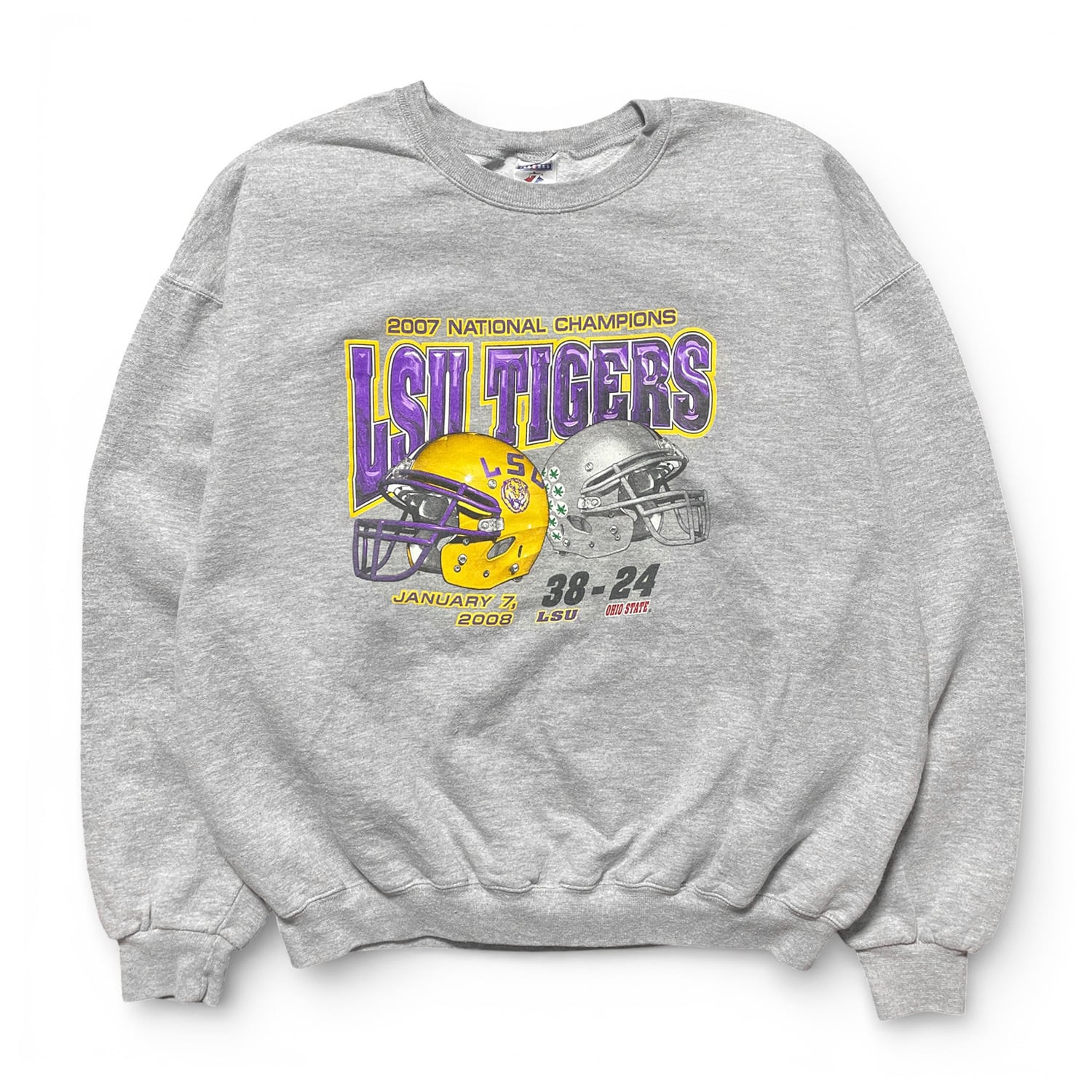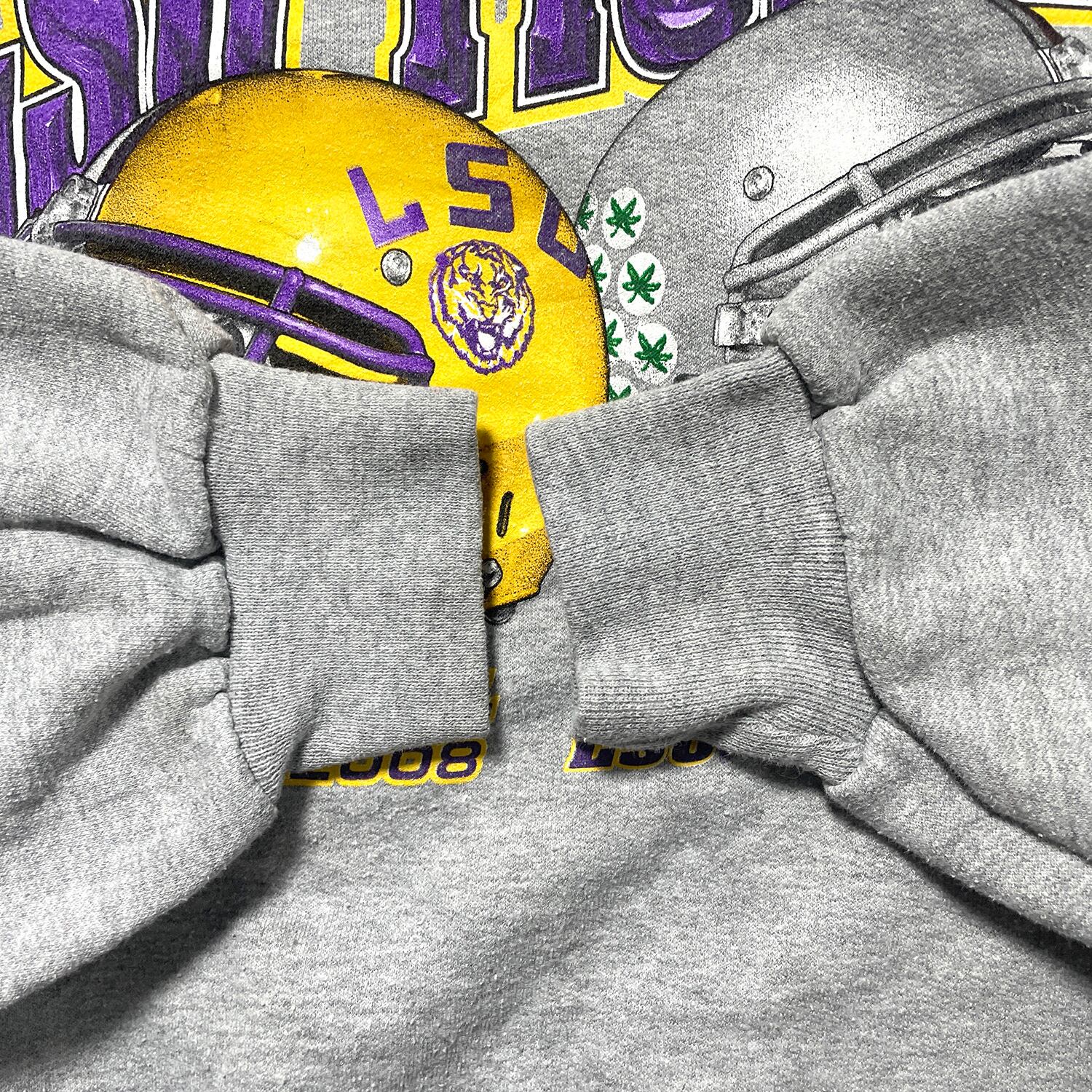 USA 古着 ルイジアナ州立大学 カレッジ クルーネック スウェット トレーナー プリント フットボール グレー メンズXL BD3261