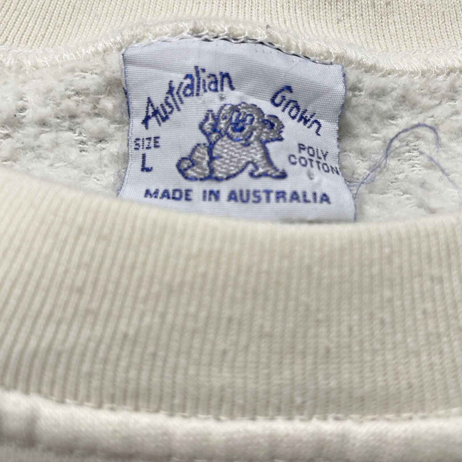 USA 古着 90S オーストラリア製 コアラ ヴィンテージ スウェット トレーナー 刺繍 アイボリー メンズL BD3245