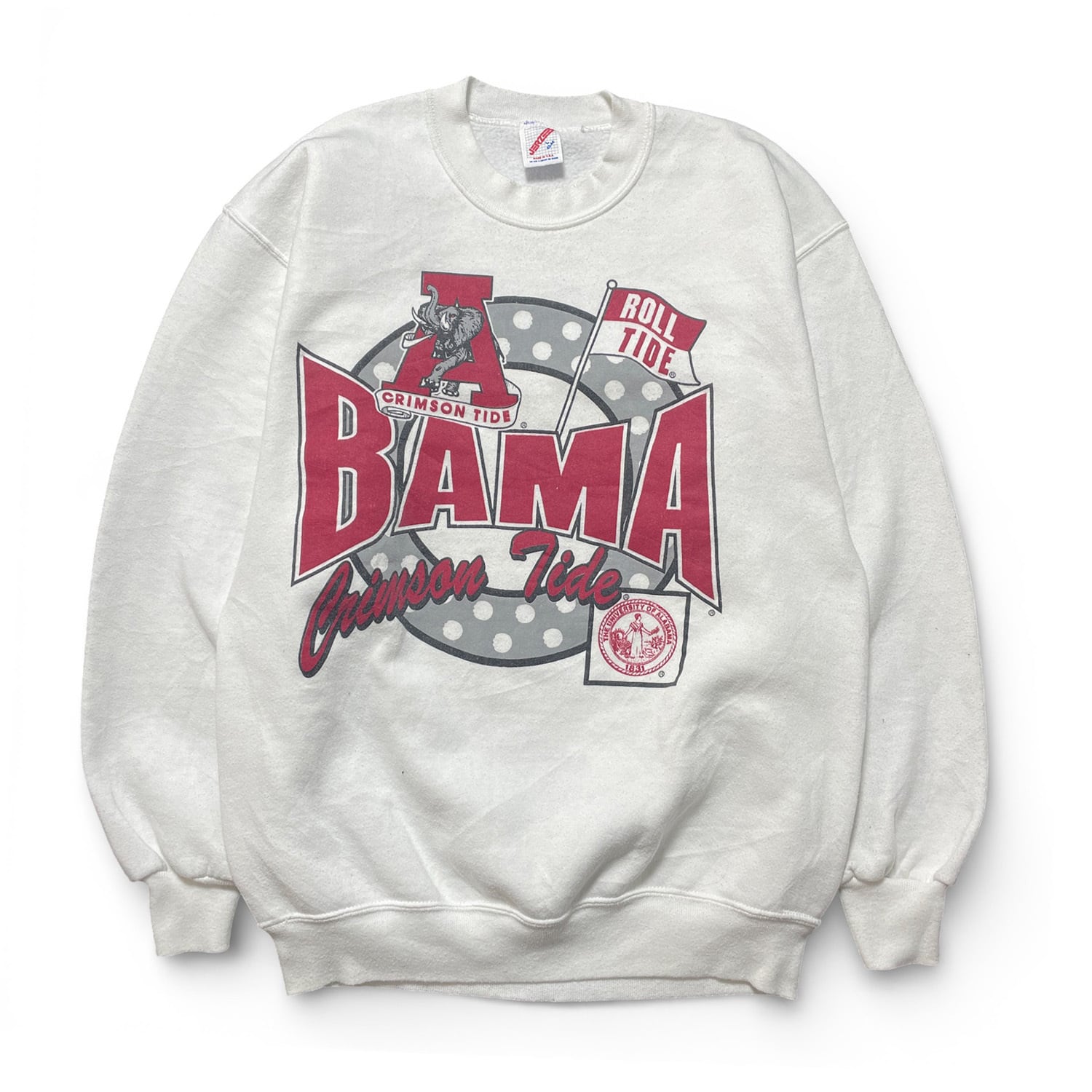 古着 USA製 90S アラバマ大学 カレッジ クルーネック ヴィンテージ スウェット トレーナー プリント ホワイト メンズL BD3246