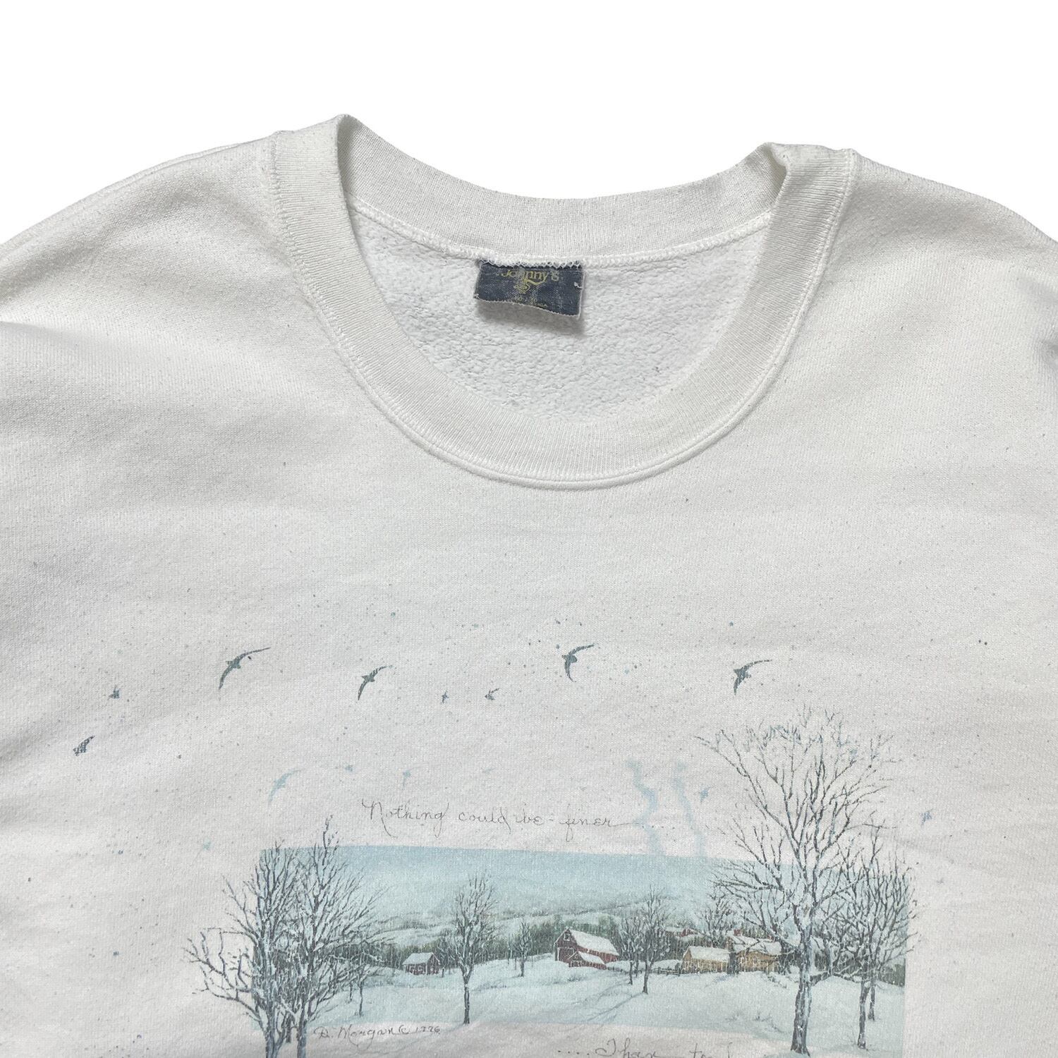 古着 USA製 90S ヴィンテージ クルーネック アート スウェット トレーナー プリント ホワイト メンズL BD3247