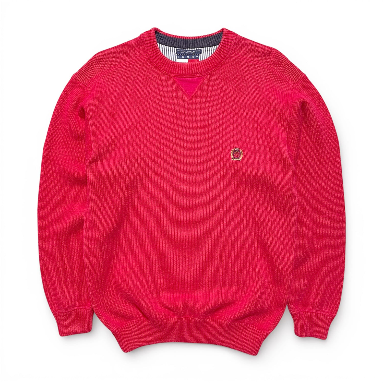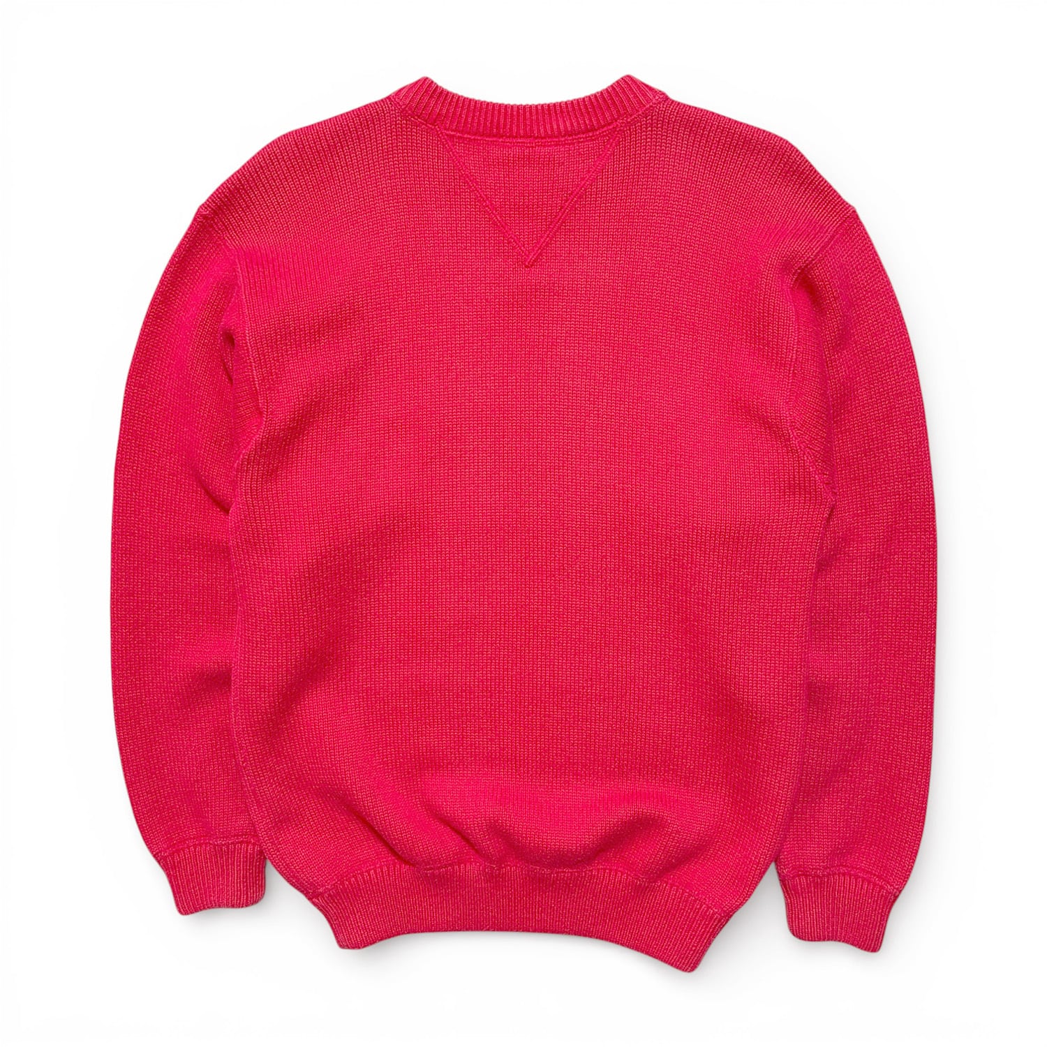 USA 古着 90S TOMMY HILFIGER トミーヒルフィガー コットンニット クルーネック セーター メンズS レッド 赤色 BJ1036