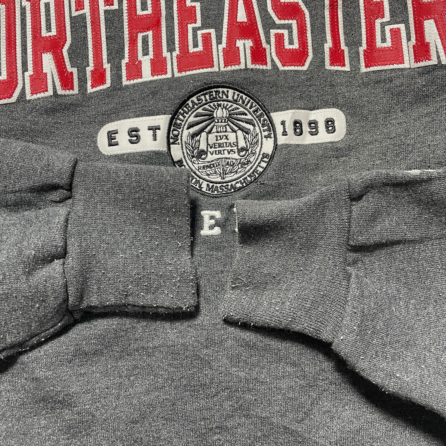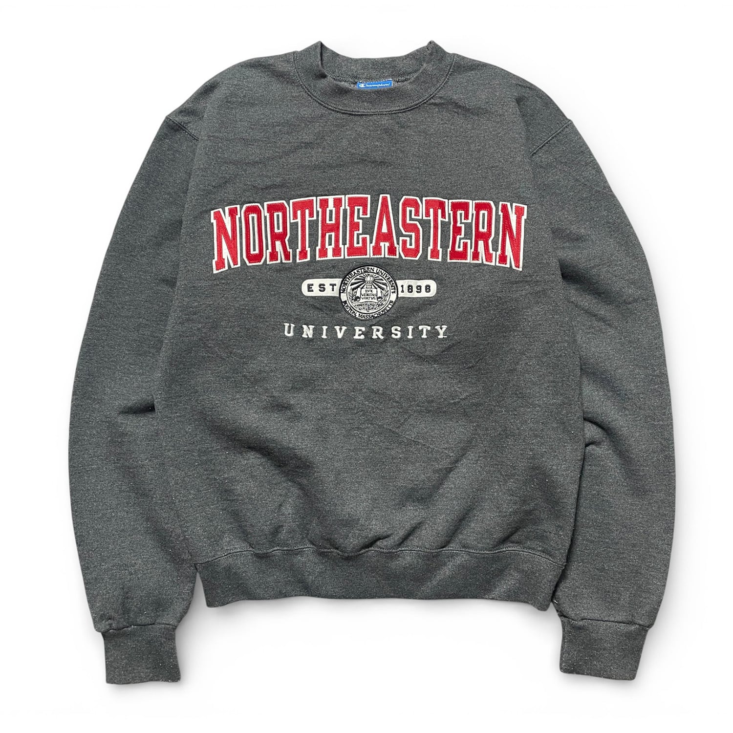 USA 古着 Champion チャンピオン ノースイースタン大学 カレッジ クルーネック スウェット トレーナー 刺繍 チャコールグレー メンズS BD3255