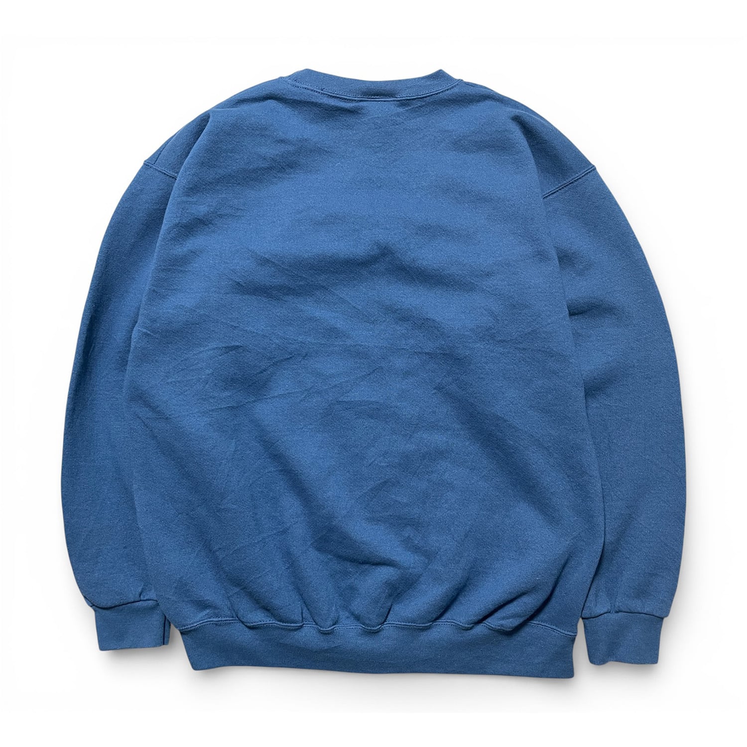 古着 USA製 90S アート 「雪夜の街灯とカーディナル」 ヴィンテージ スウェット トレーナー ネイビー プリント メンズL BD3257