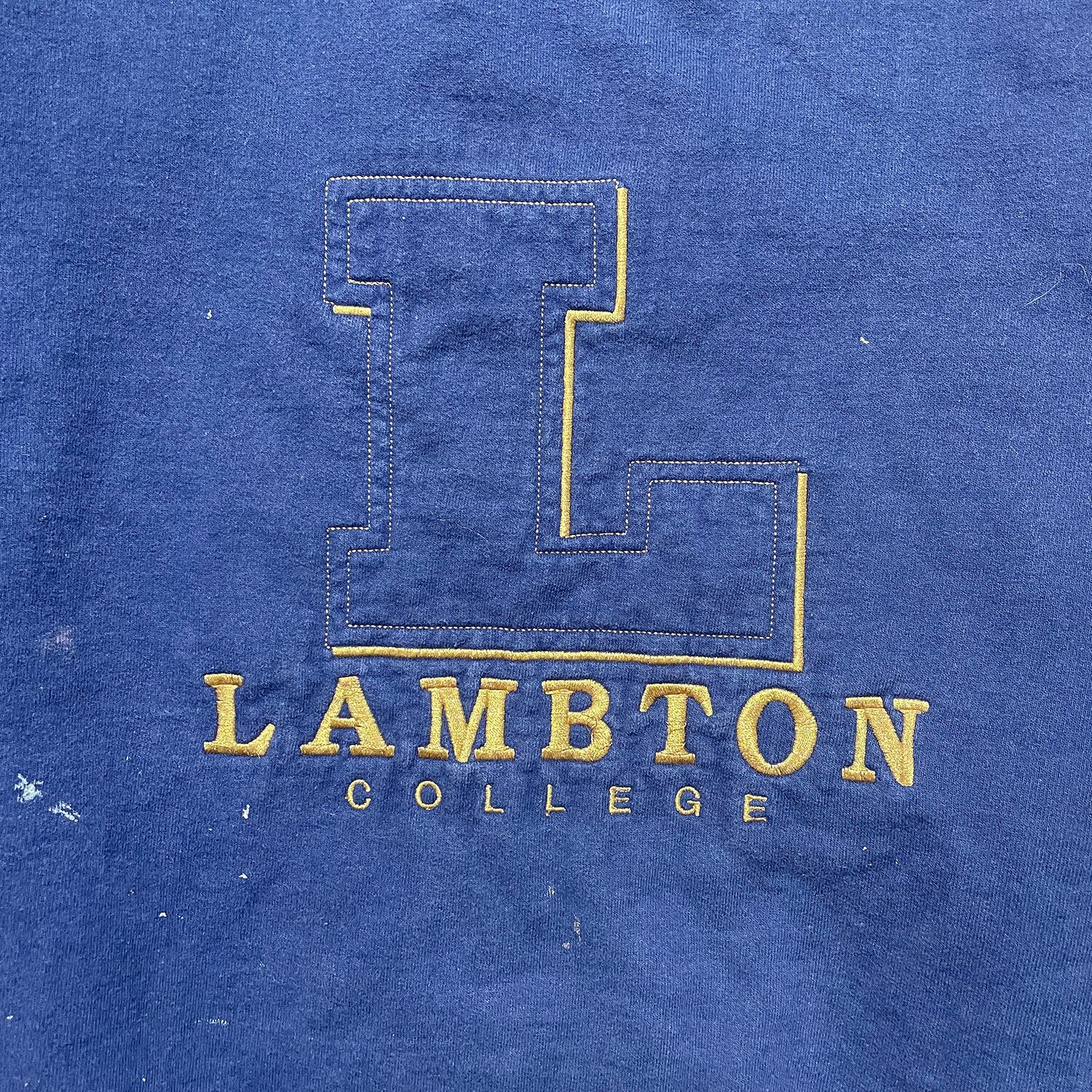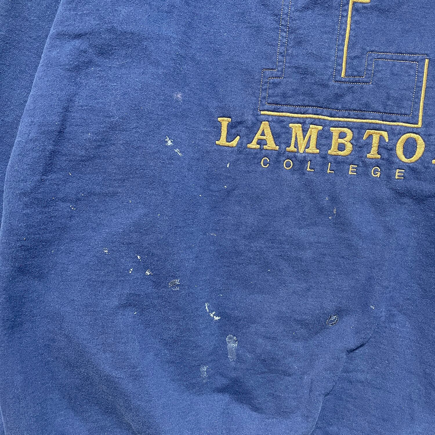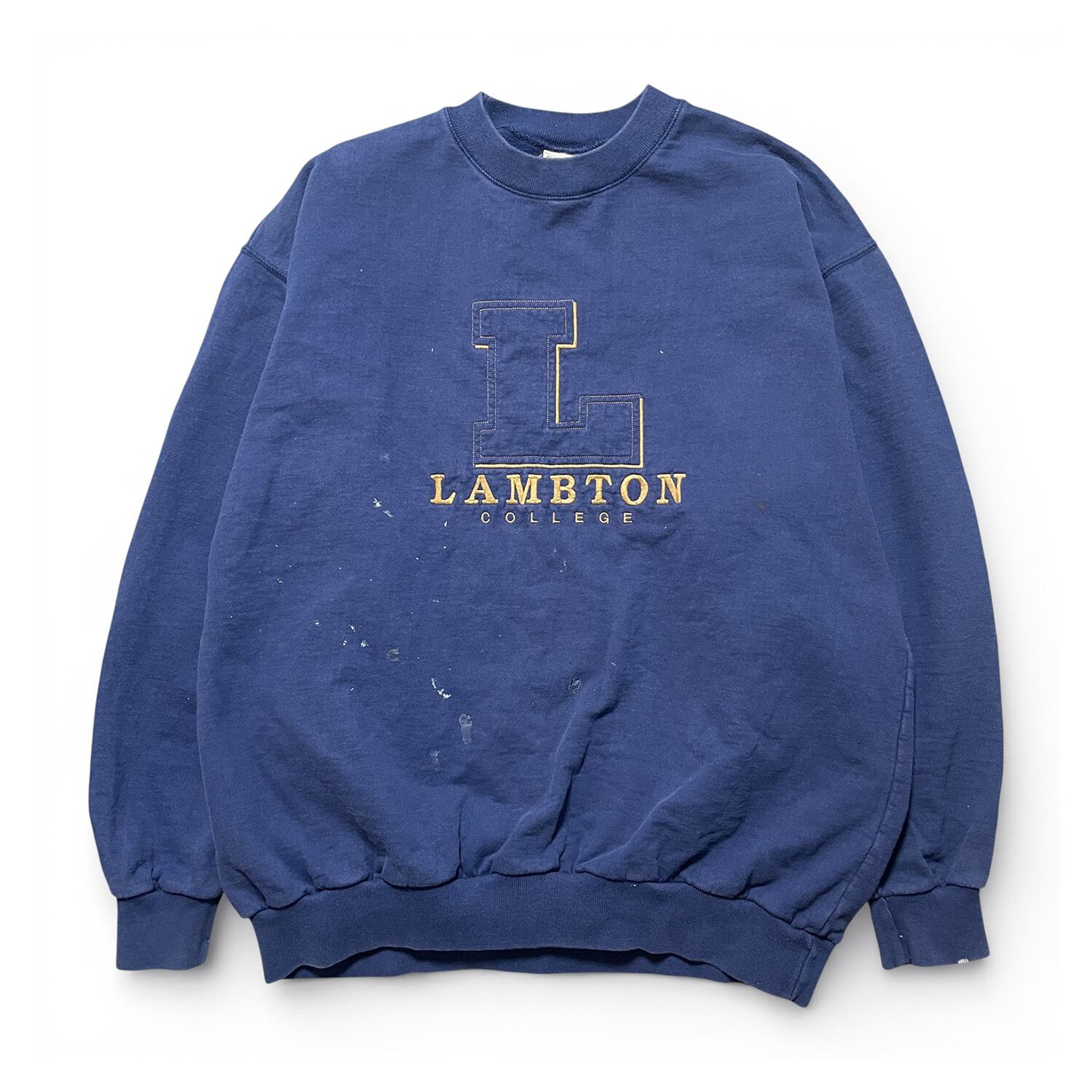 USA 古着 カナダ製 90S ラムトン大学 カレッジ ヴィンテージ クルーネック スウェット トレーナー 刺繍 ネイビー メンズXL BD3268