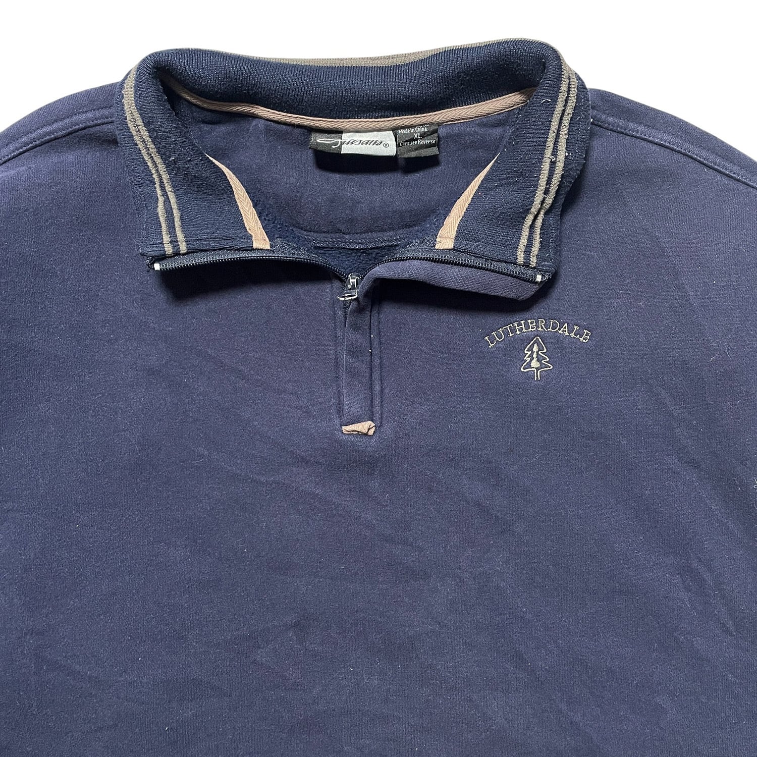 USA 古着 ルーサーデール キャンプ場 ハーフジップ スウェット トレーナー 刺繍 紺色 ネイビー メンズXL BD3266