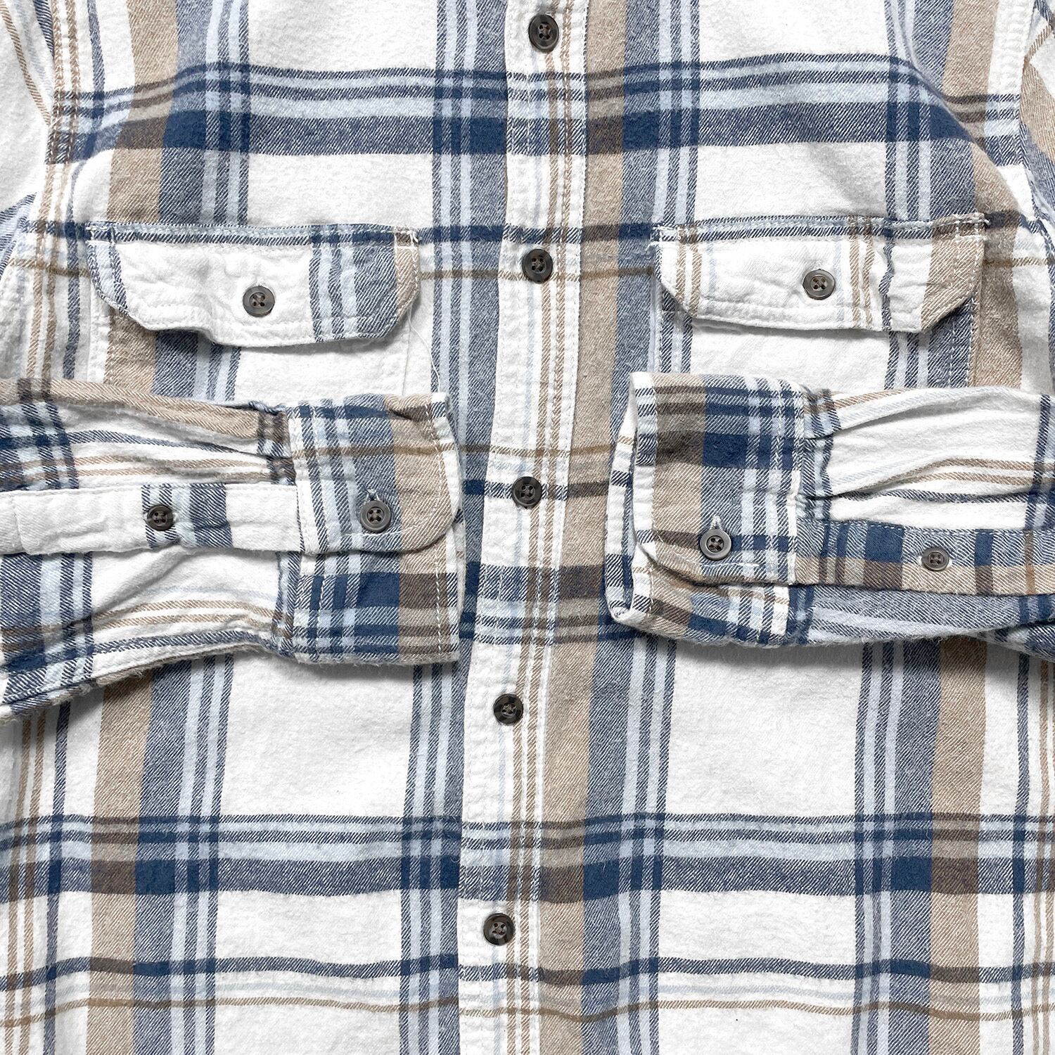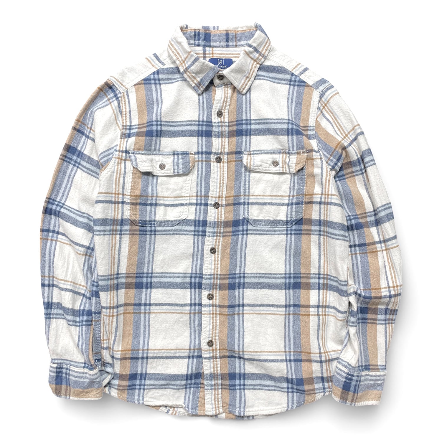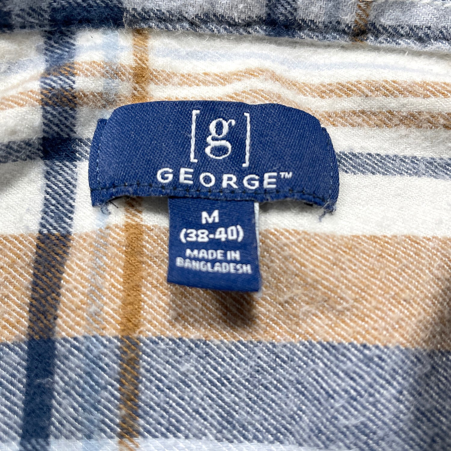 USA 古着 GEORGE ジョージ コットン チェック柄 ライトフランネル 長袖シャツ ネルシャツ メンズM ホワイト系 BG1239