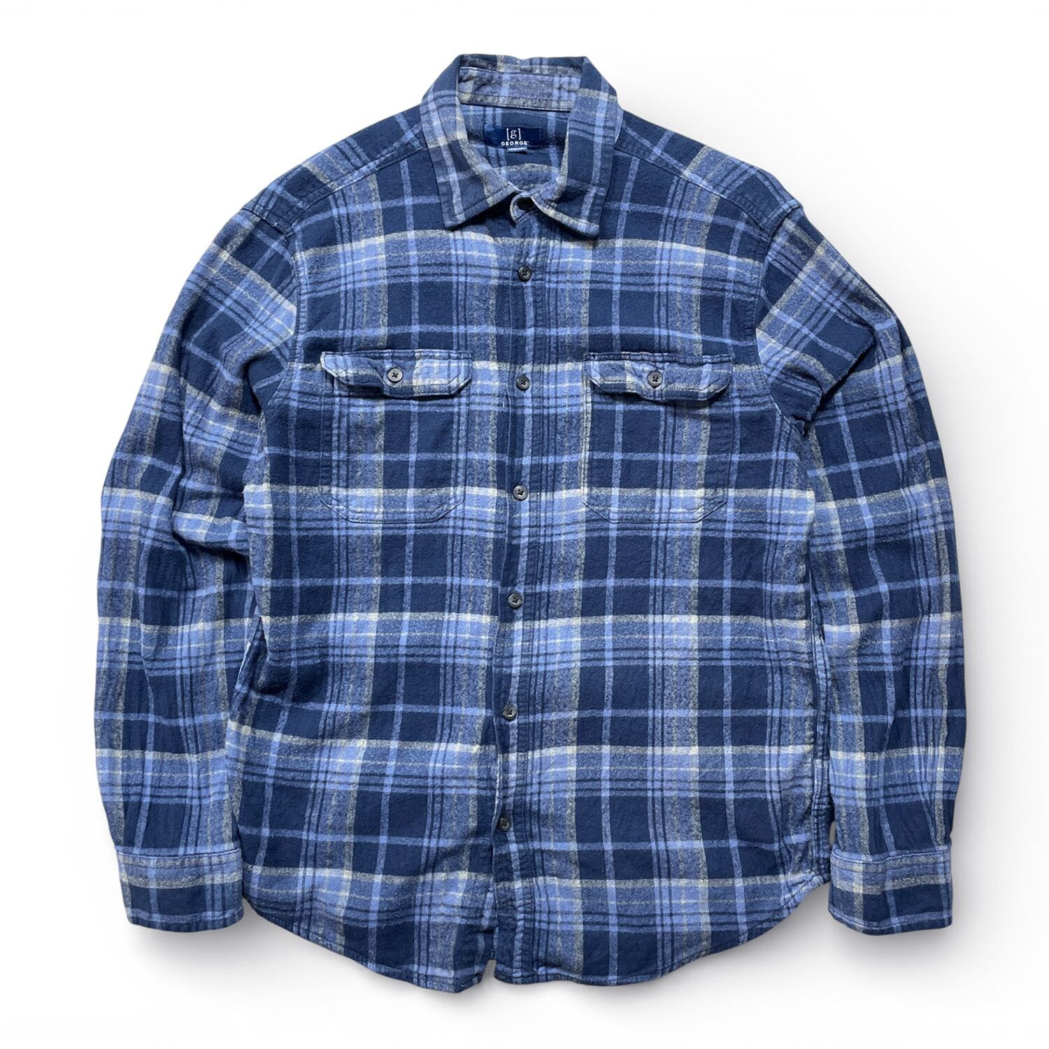 USA 古着 GEORGE ジョージ コットン チェック柄 ライトフランネル 長袖シャツ ネルシャツ メンズM BG1248