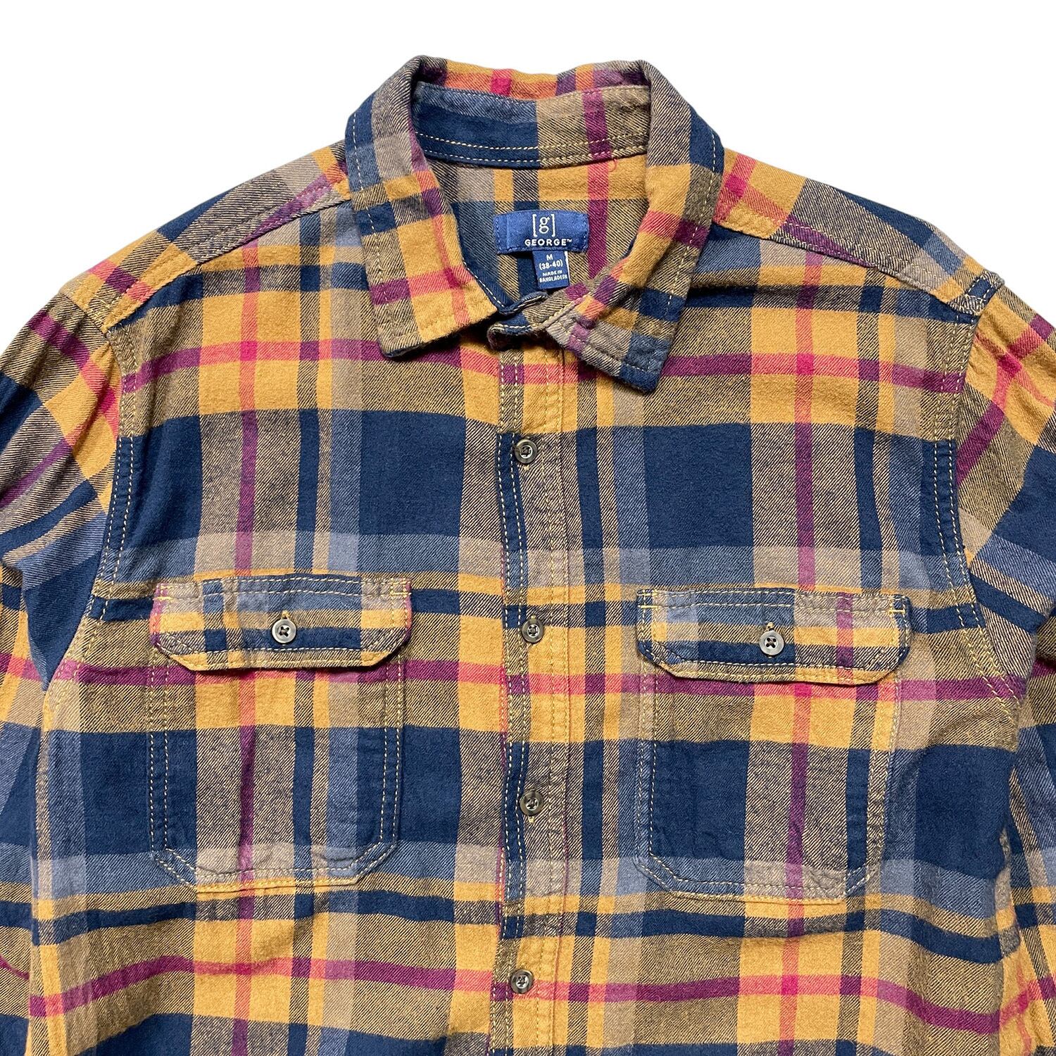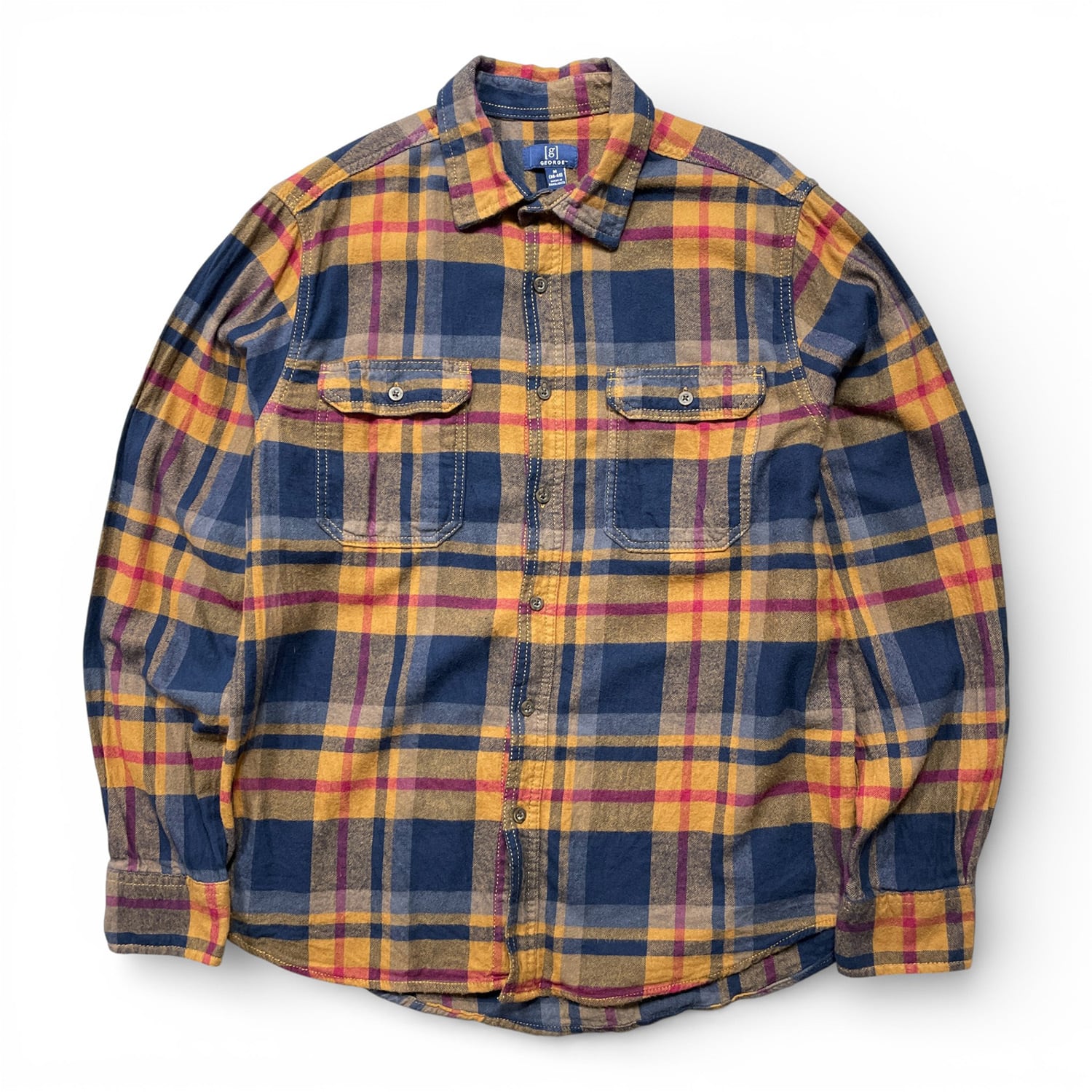 USA 古着 GEORGE ジョージ コットン チェック柄 ライトフランネル 長袖シャツ ネルシャツ メンズM BG1253