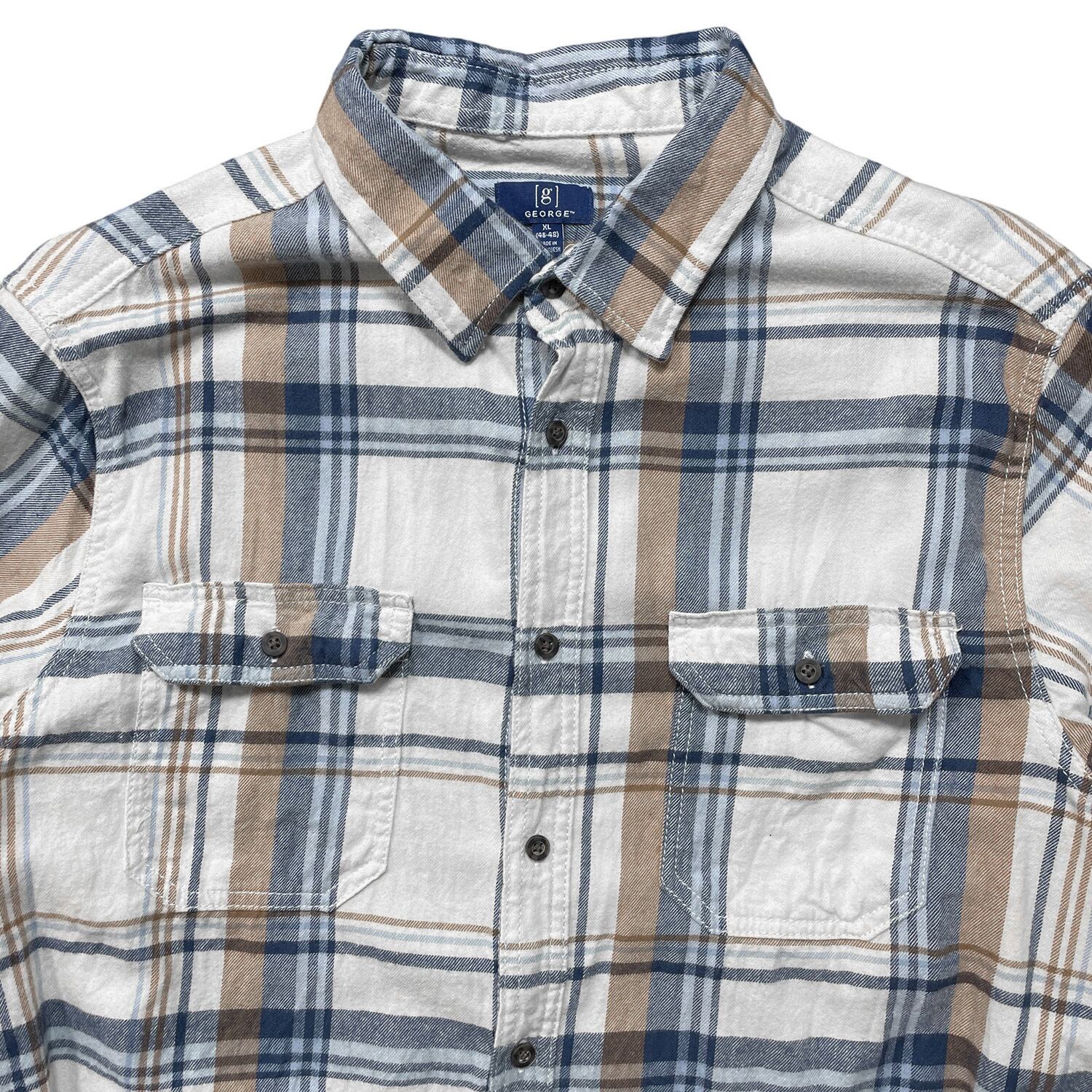 USA 古着 GEORGE ジョージ コットン チェック柄 ライトフランネル 長袖シャツ ネルシャツ メンズXL BG1258