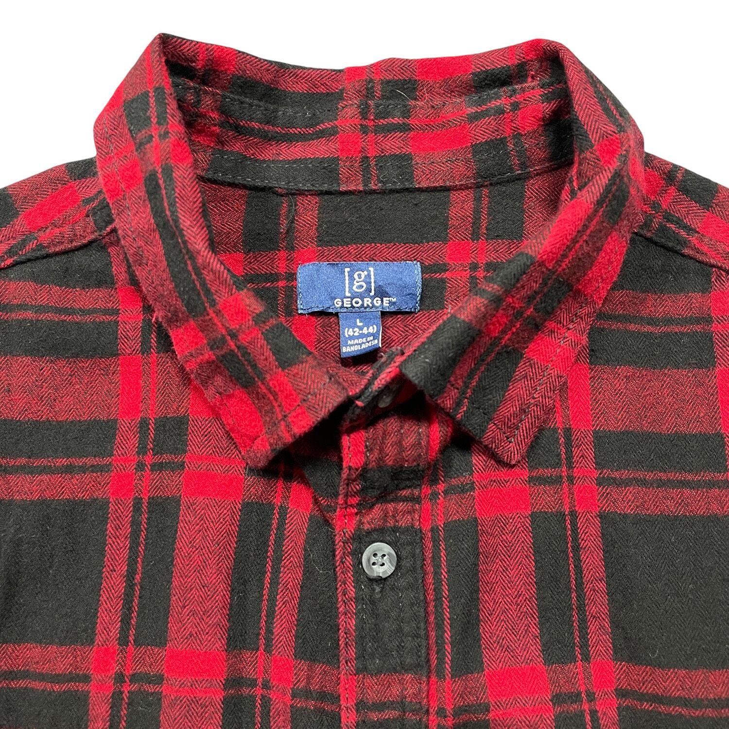 USA 古着 GEORGE ジョージ コットン チェック柄 ライトフランネル 長袖シャツ ネルシャツ メンズL BG1260