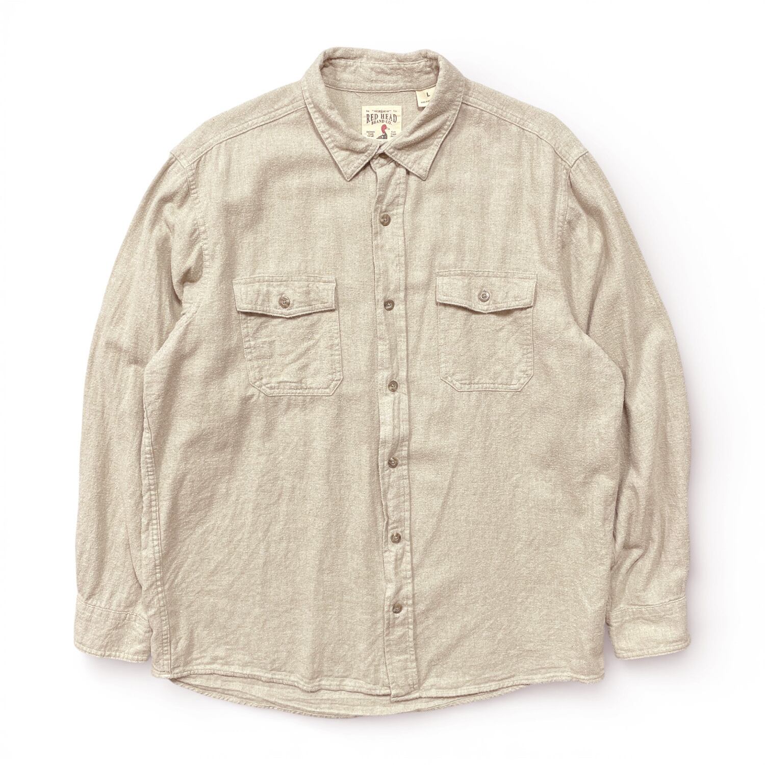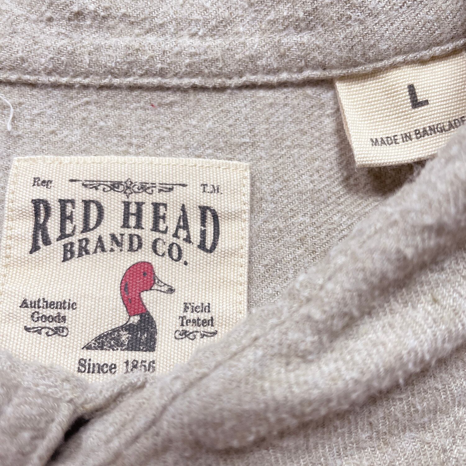 USA 古着 RED HEAD レッドヘッド アウトドア コットン シャモアクロス 無地 長袖シャツ ネルシャツ メンズL ベージュ BG1262