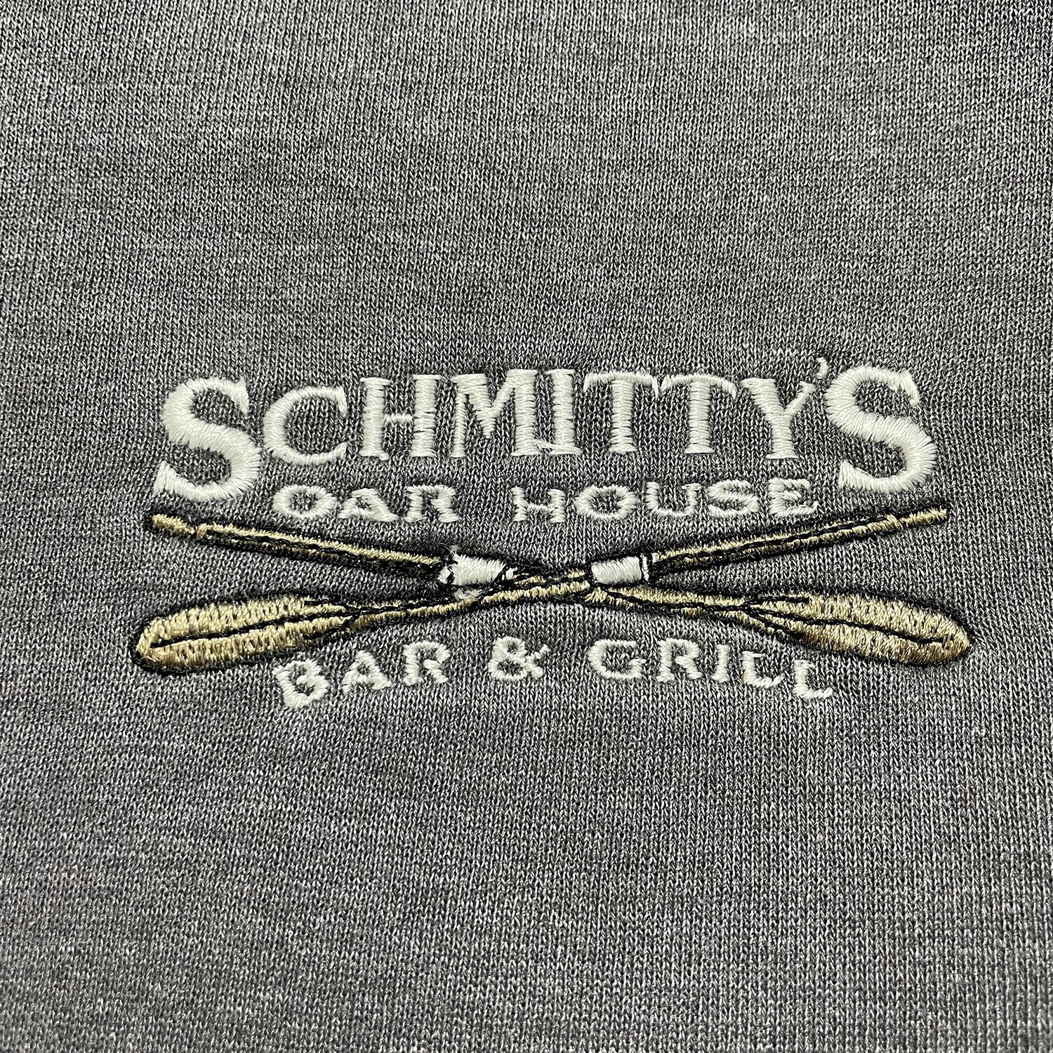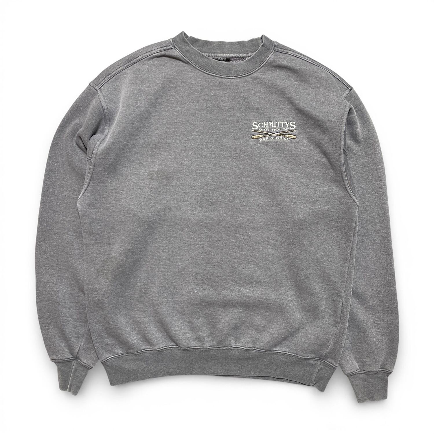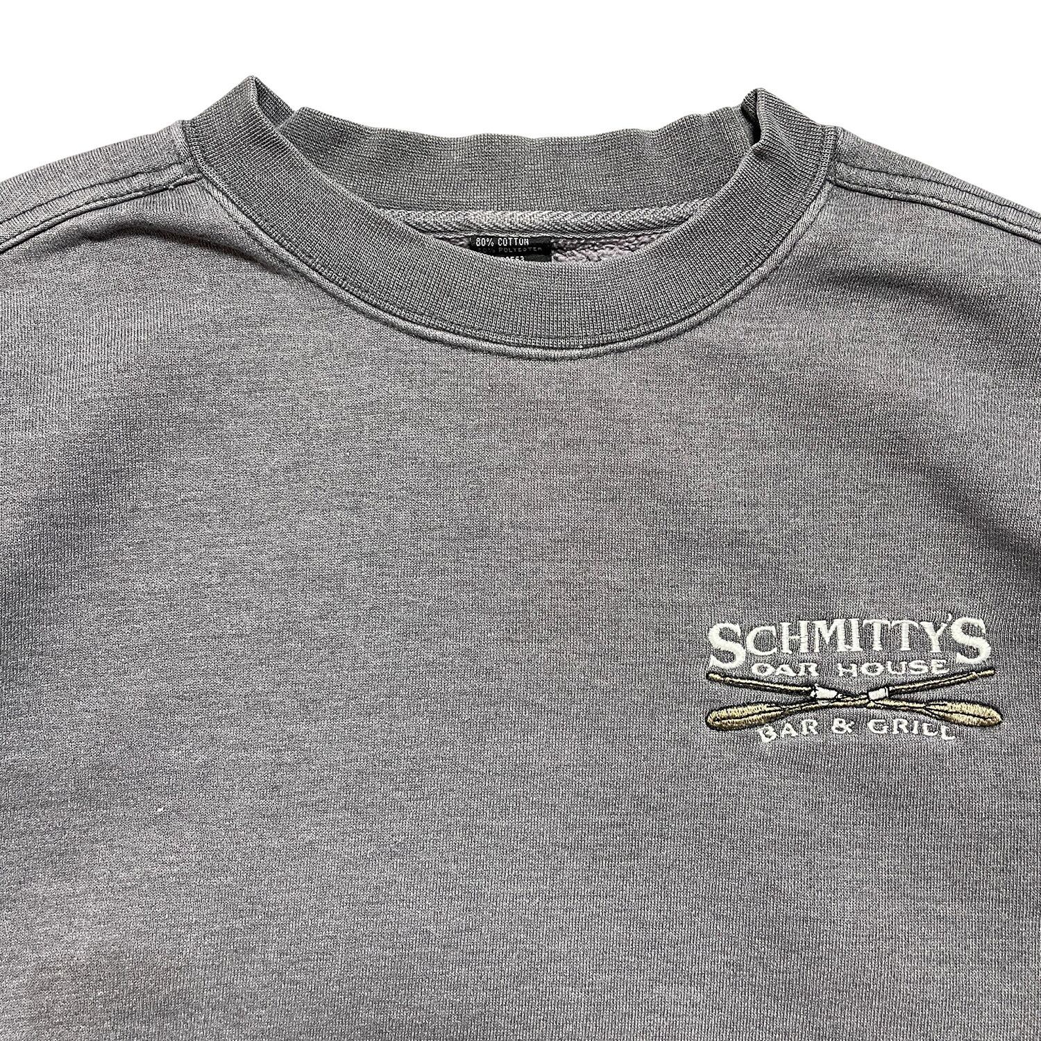 USA 古着 クルーネック スウェット トレーナー シュミティーズバー 刺繍 ワンポイント チャコールグレー メンズM BD3287