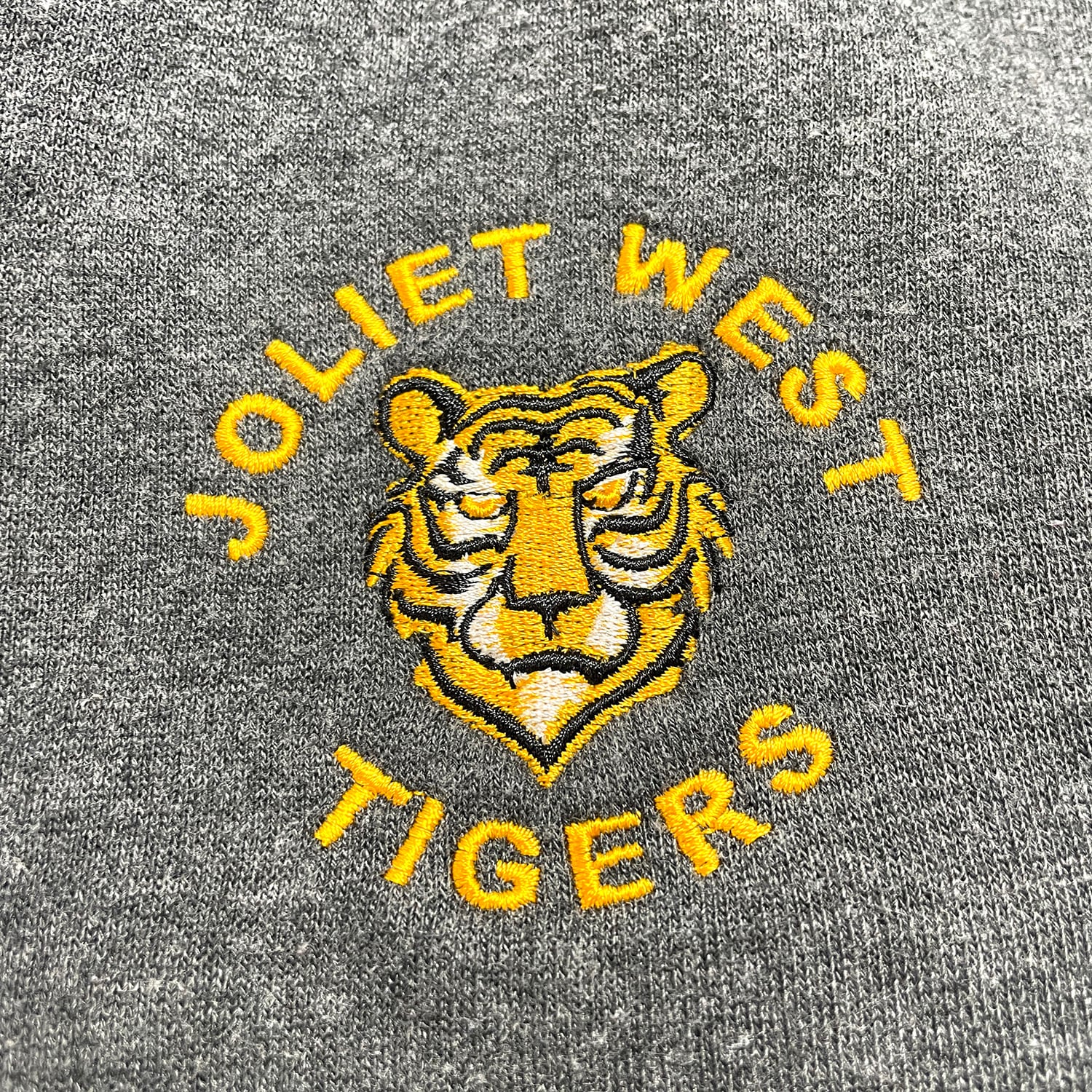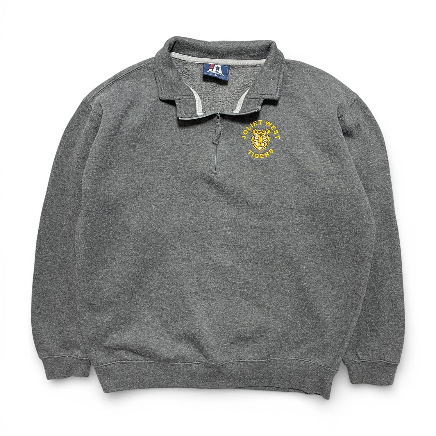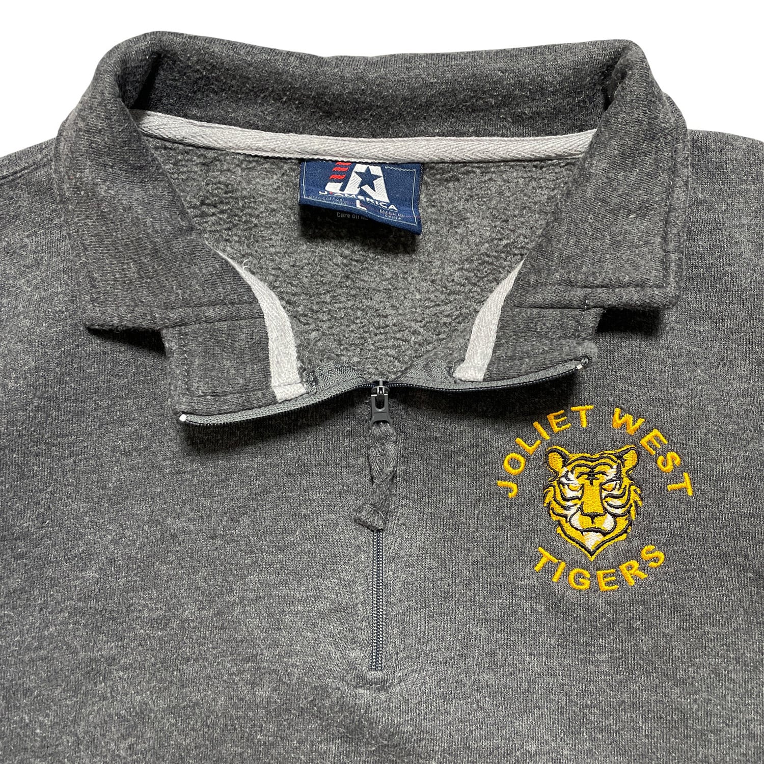 USA 古着 ジュリエットウェスト高校 ハイスクール ハーフジップ スウェット トレーナー 刺繍 チャコールグレー メンズL BD3289