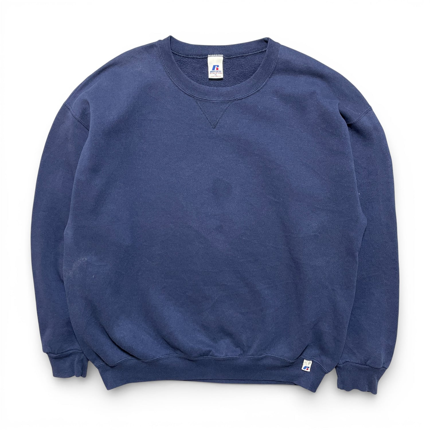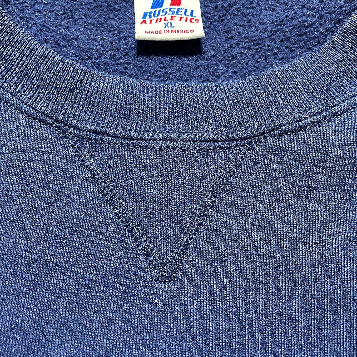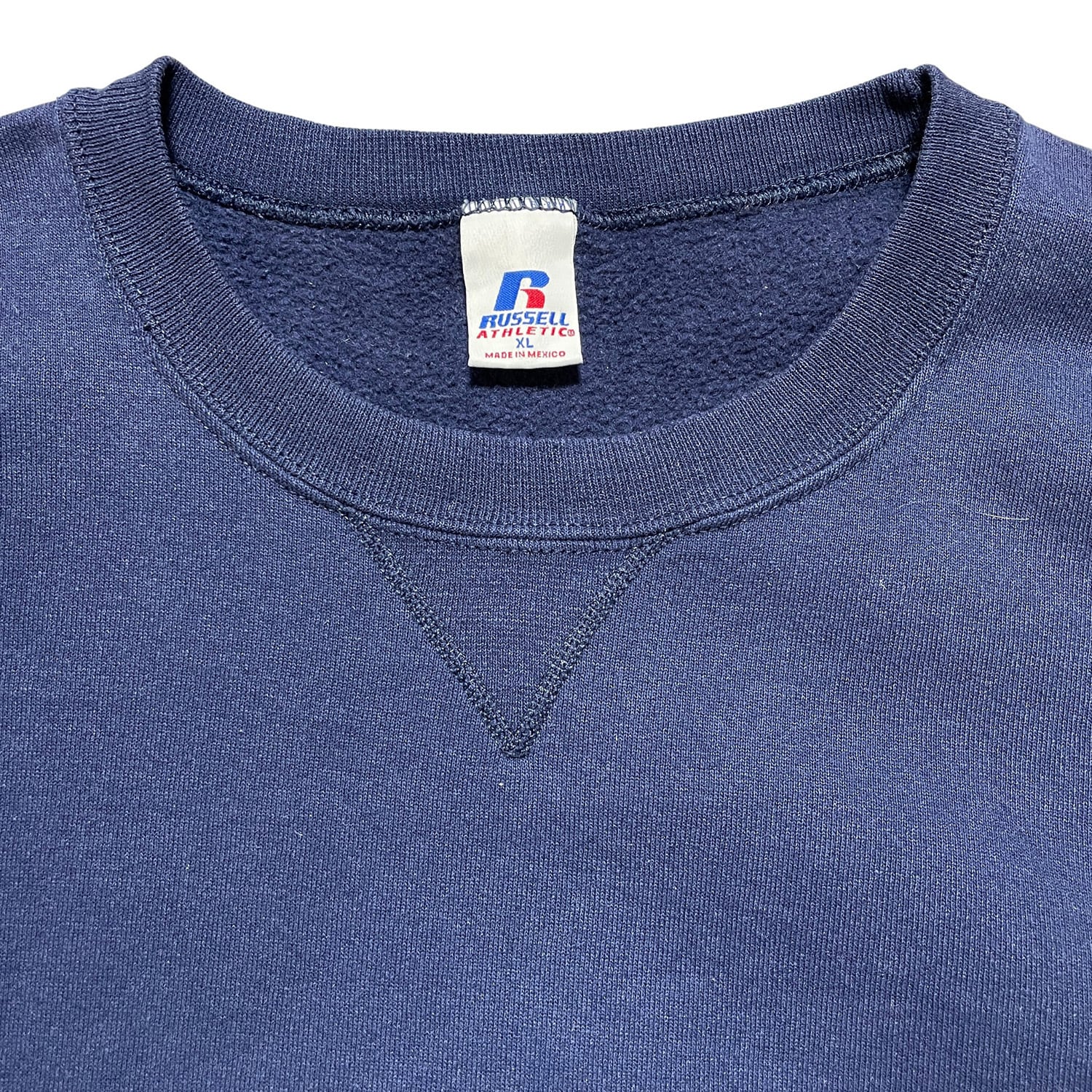 USA 古着 メキシコ製 Russell ラッセル 無地 ブランク スウェット 前V トレーナー ネイビー メンズXL BD3290