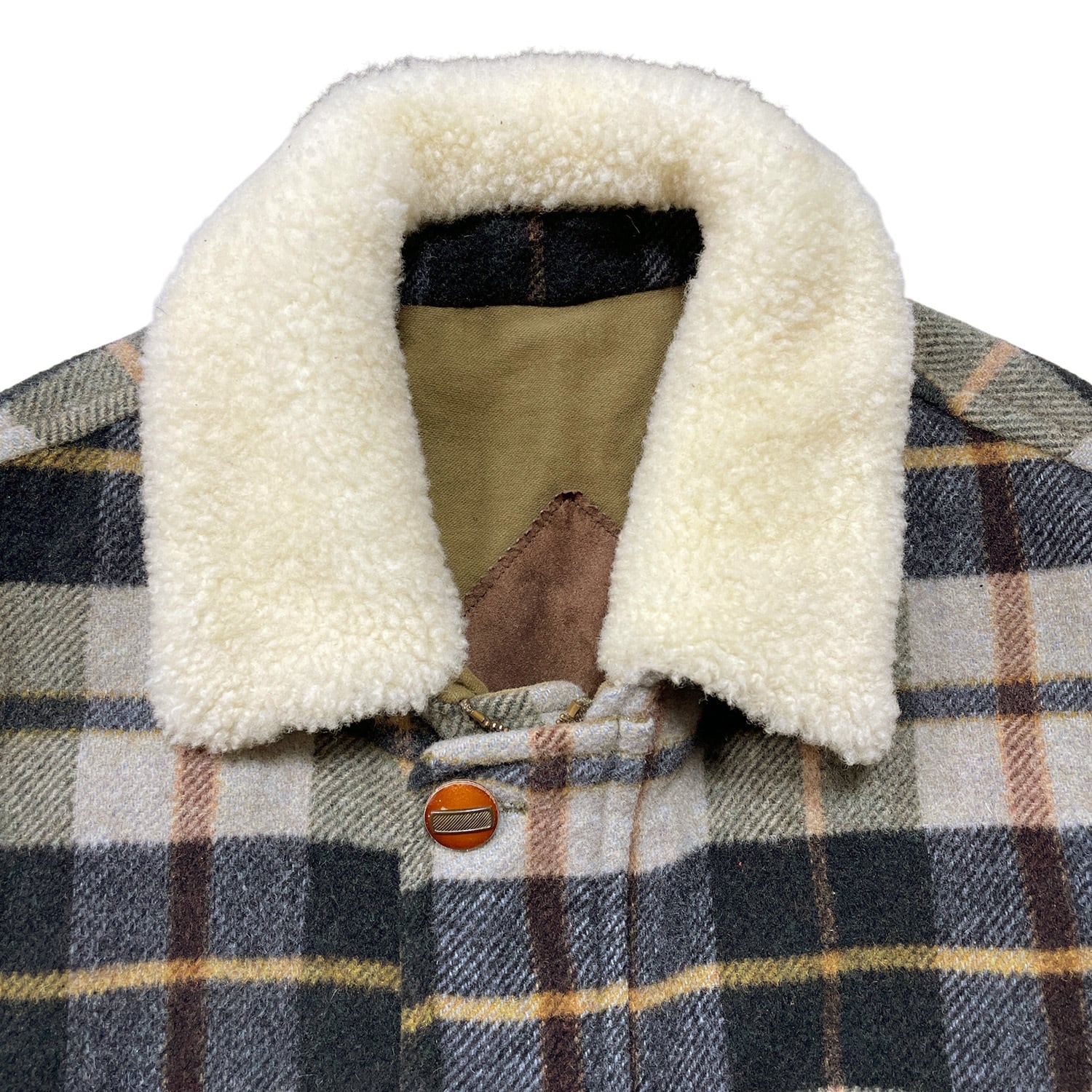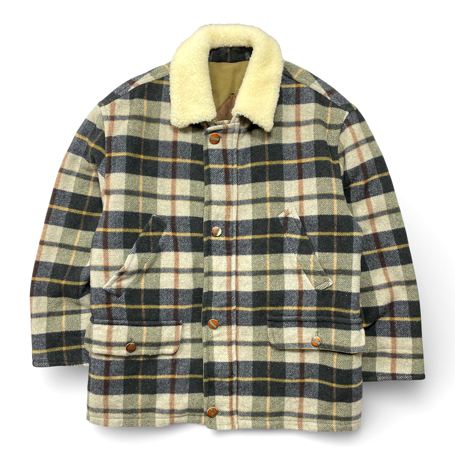 USA 古着 Bond Streer 80S ヴィンテージ ウール ボア コート チェック グレー メンズL 程度 アウター ジャケット AK0385