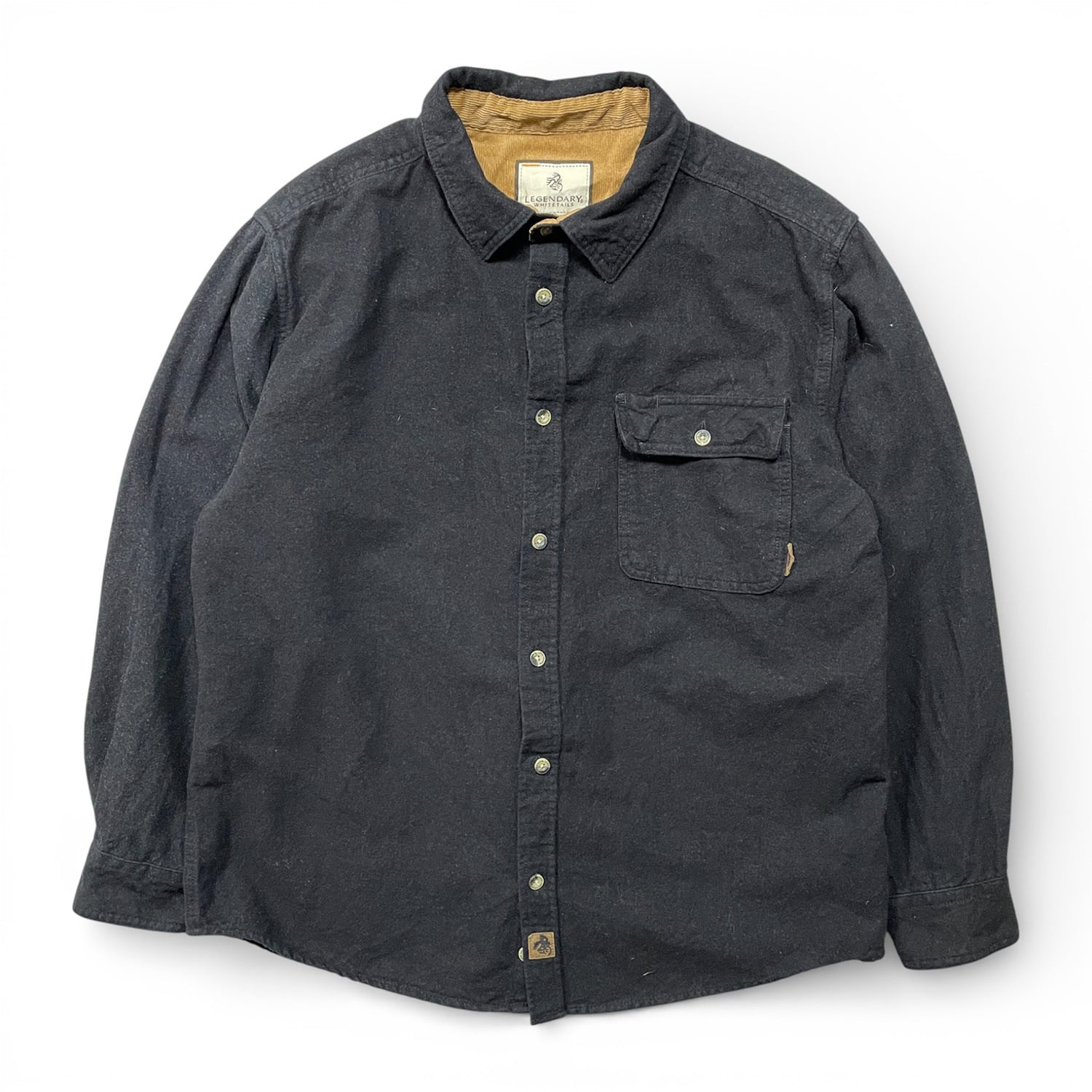 USA 古着 LEGENDARY アウトドア ブラック シャモアクロス コットン 無地 ネルシャツ 長袖シャツ 黒色 メンズL BG1271