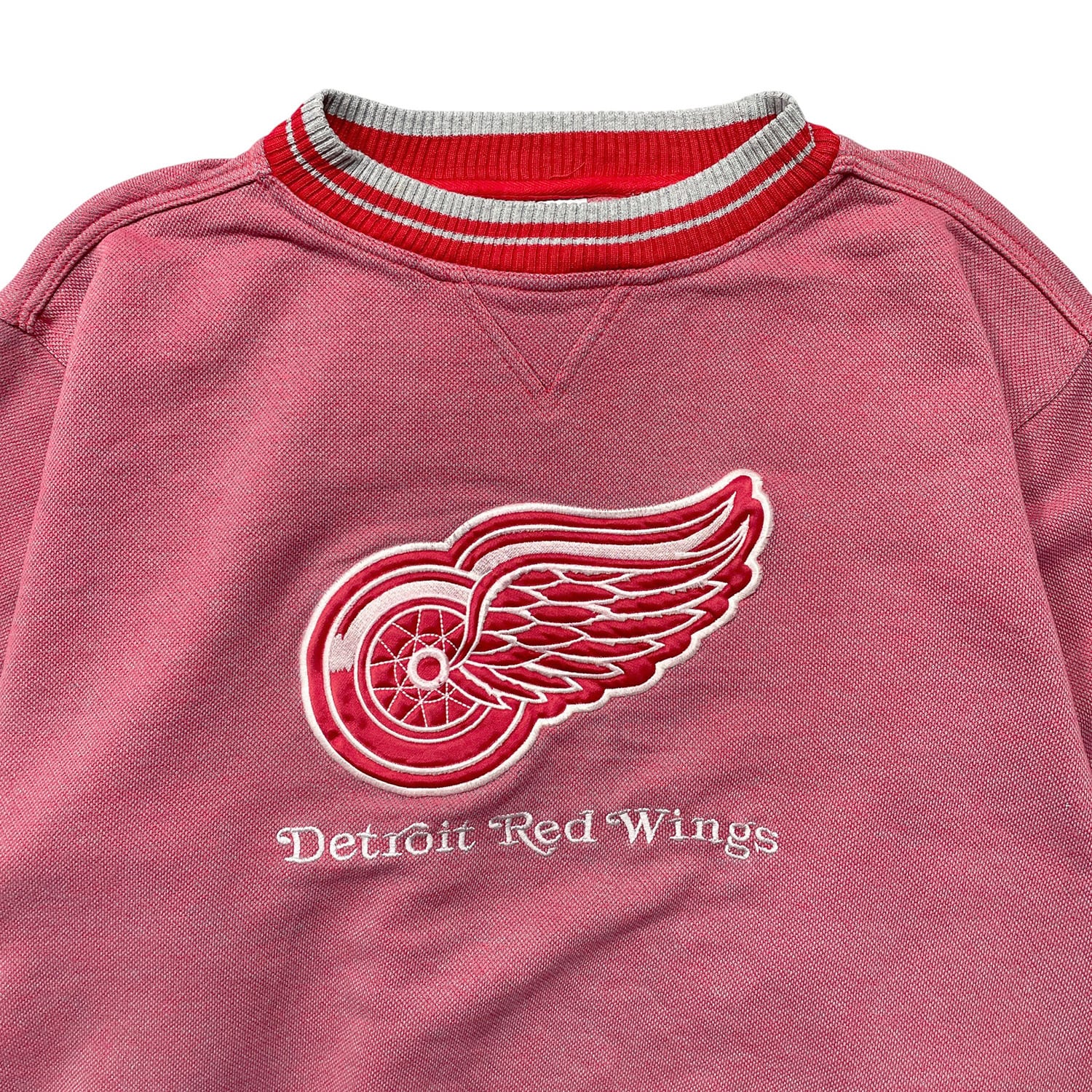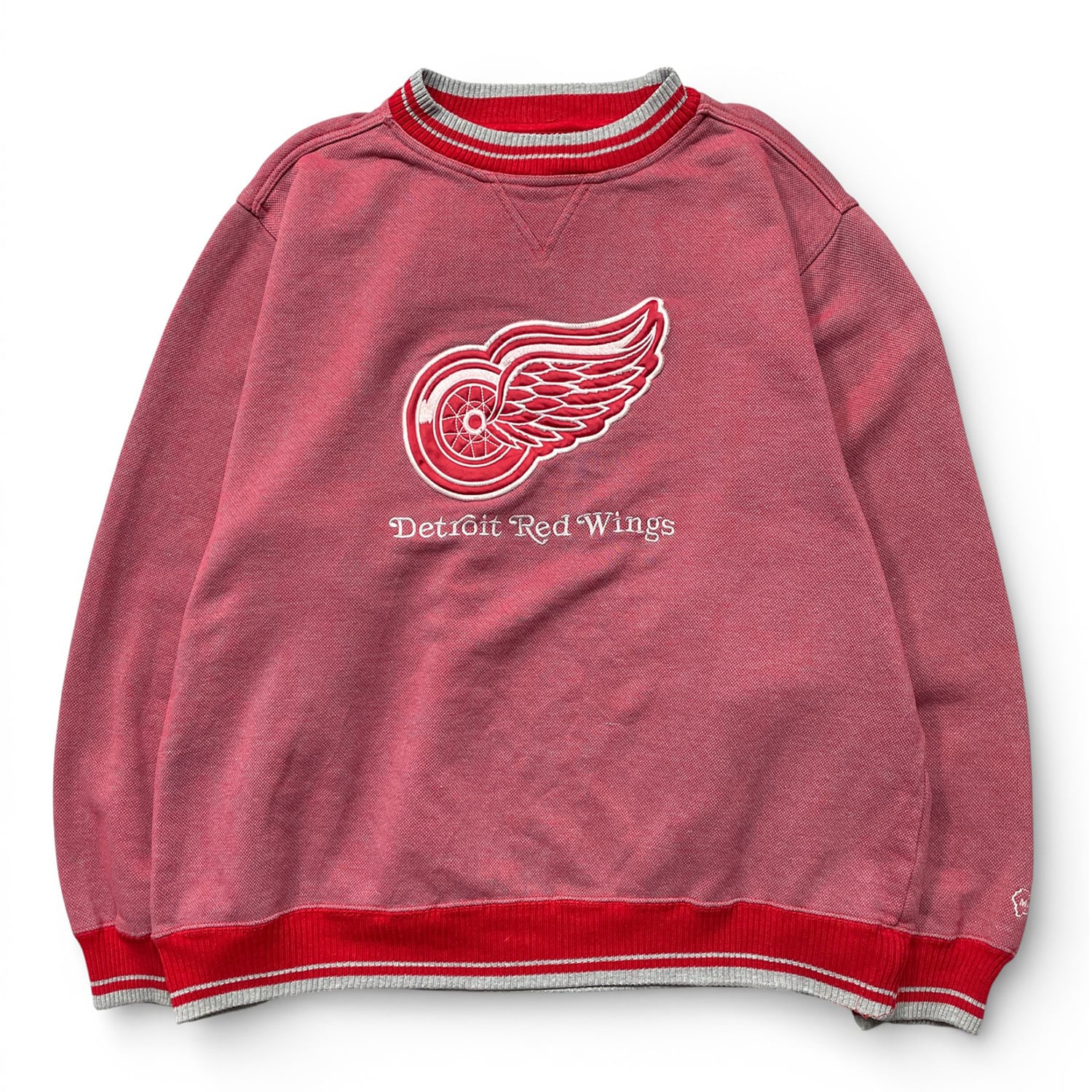 USA 古着 NHL デトロイトレッドウィングス スウェット トレーナー 刺繍 ロゴ レッド メンズL BD3300