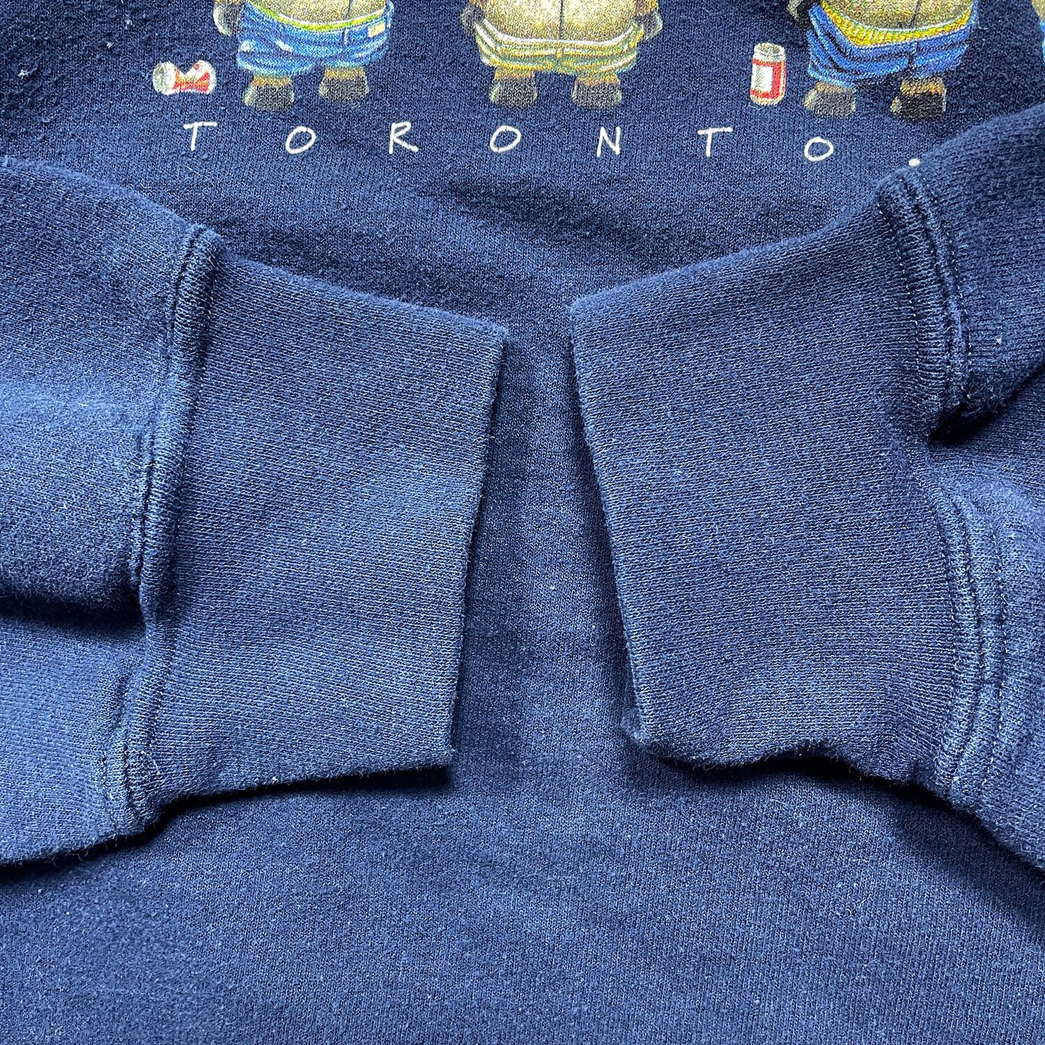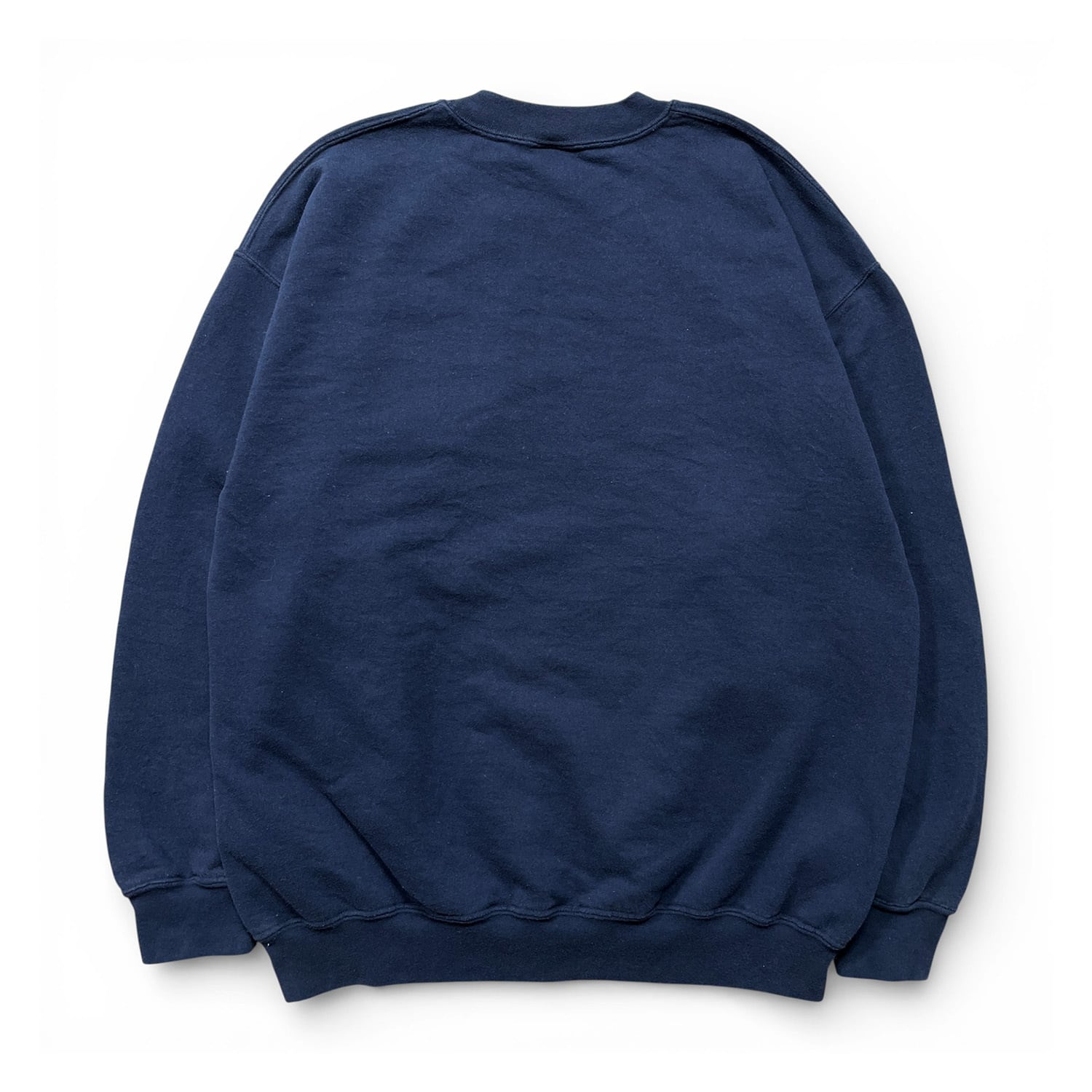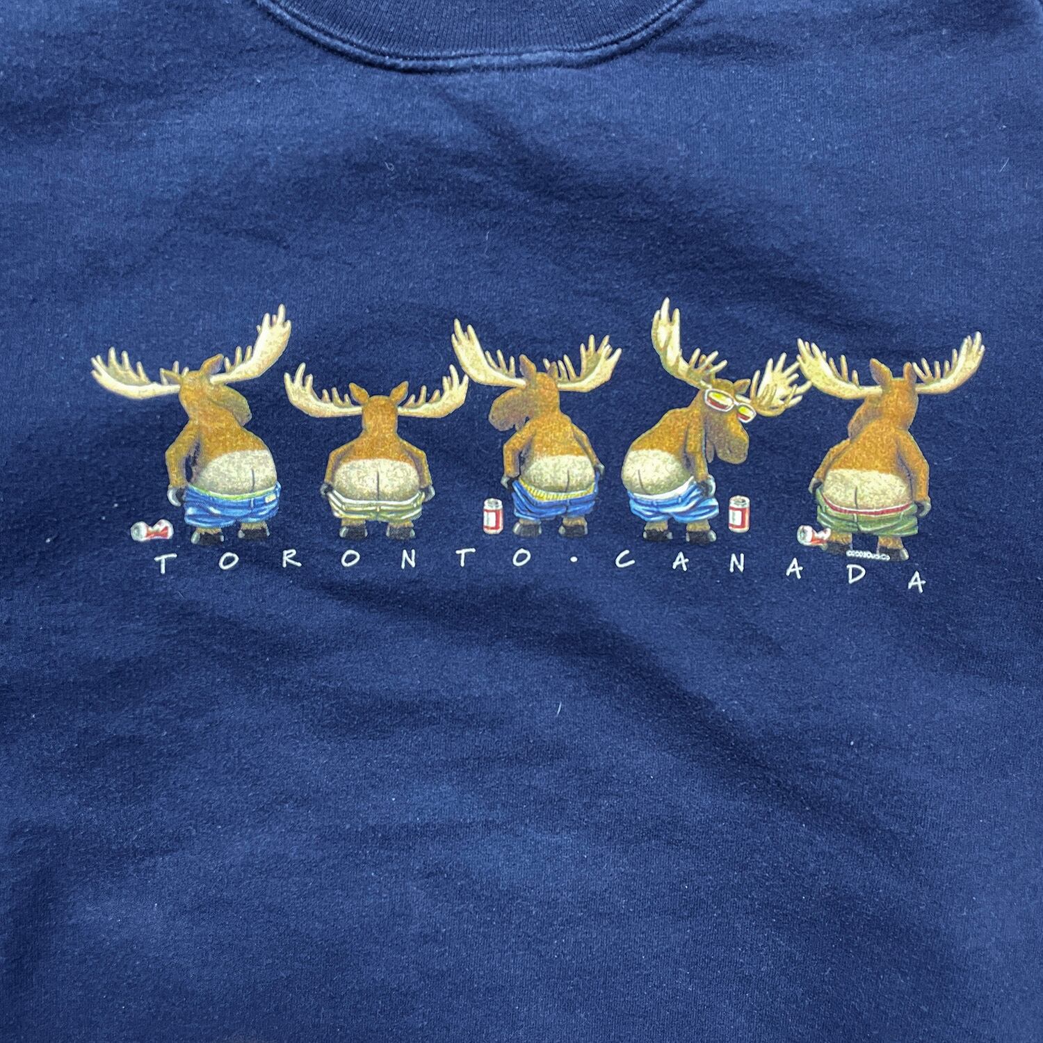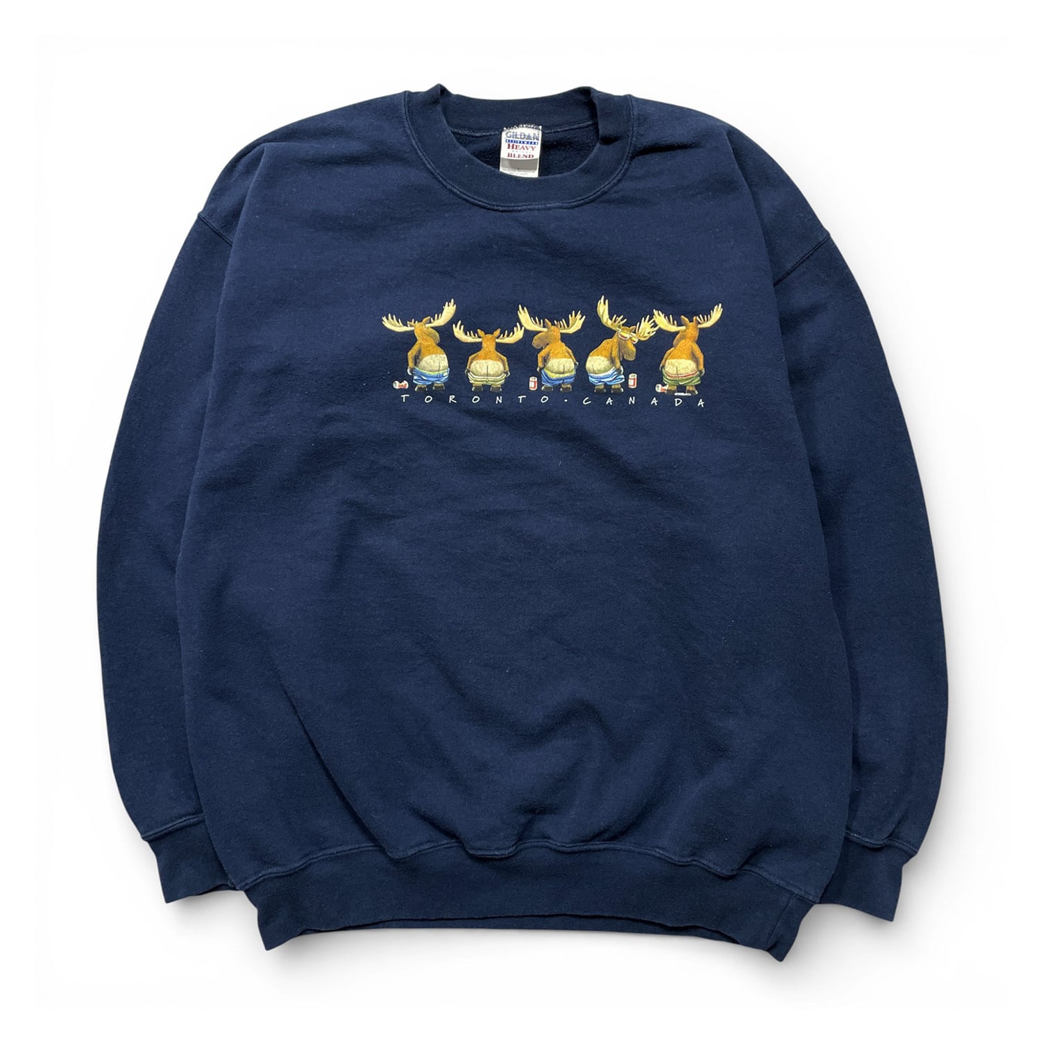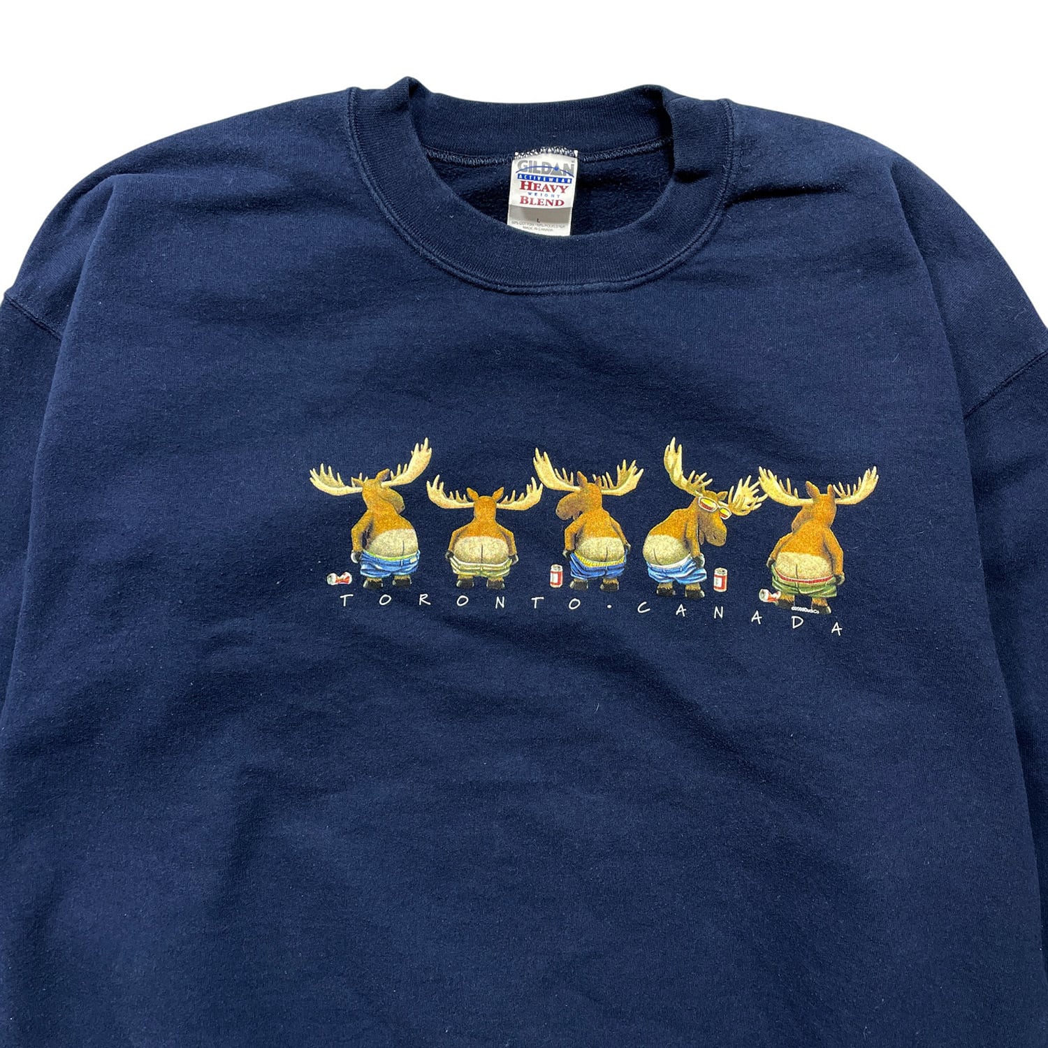 USA 古着 00S クルーネック スウェット トレーナー トナカイ アニマル プリント 紺色 ネイビー メンズL BD3294