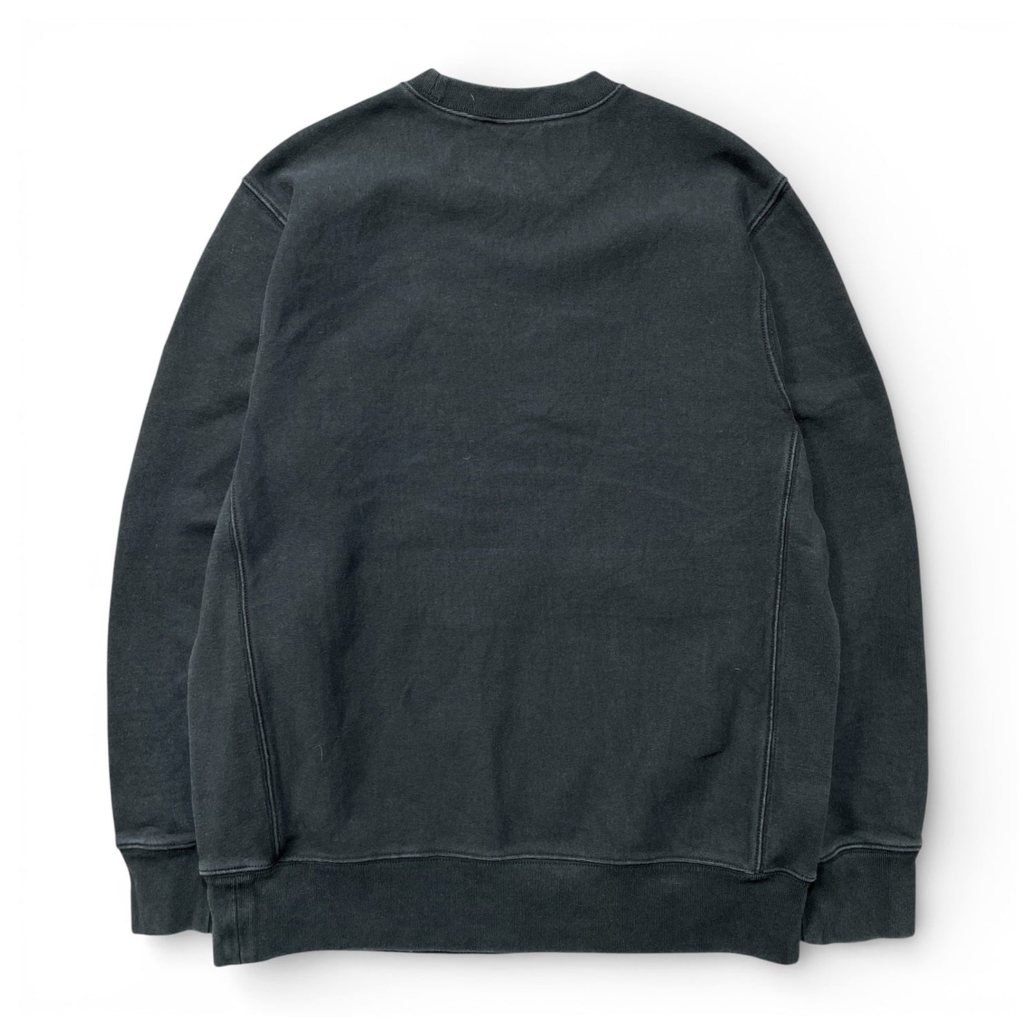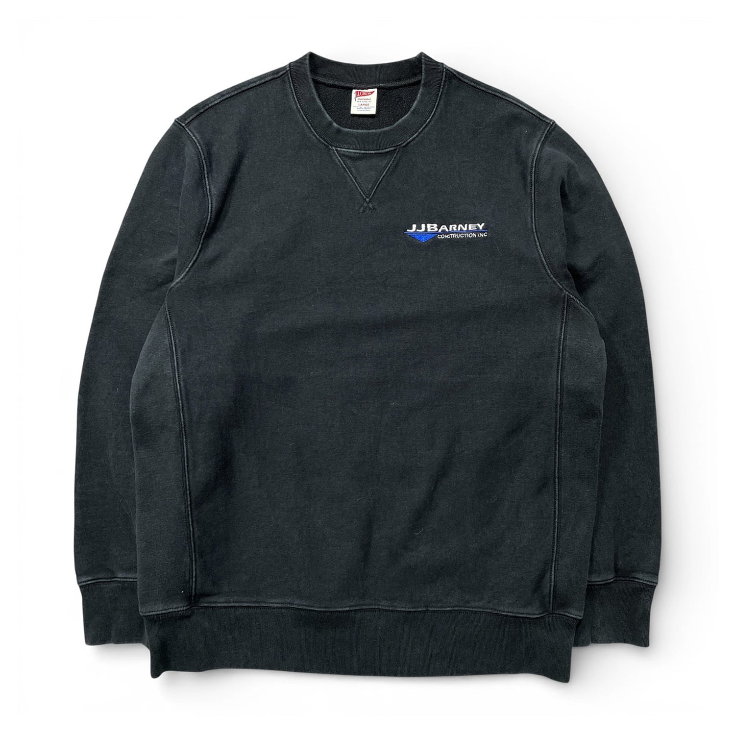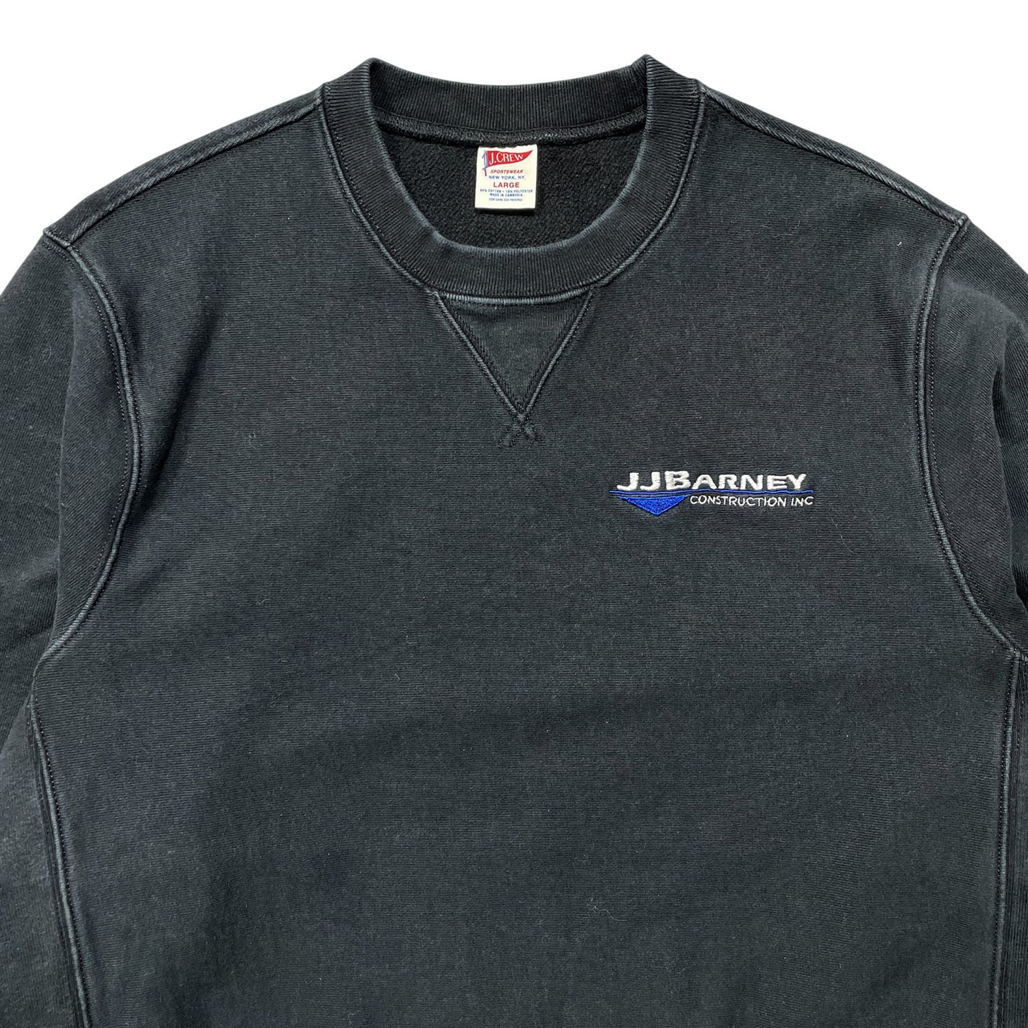 USA 古着 リバースウィーブタイプ 企業系 前V クルーネック スウェット トレーナー ロゴ 刺繍 黒 ブラック メンズL BD3291