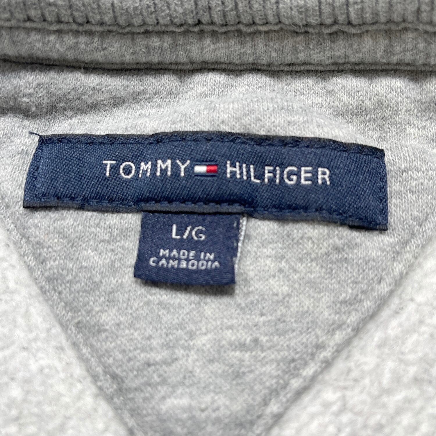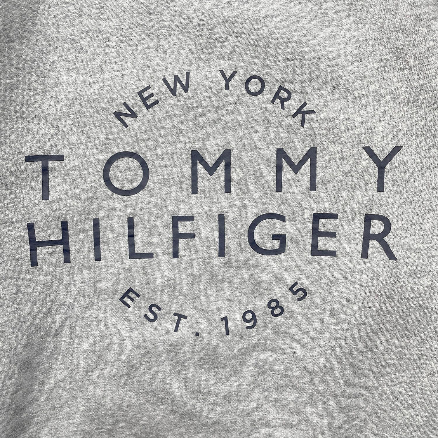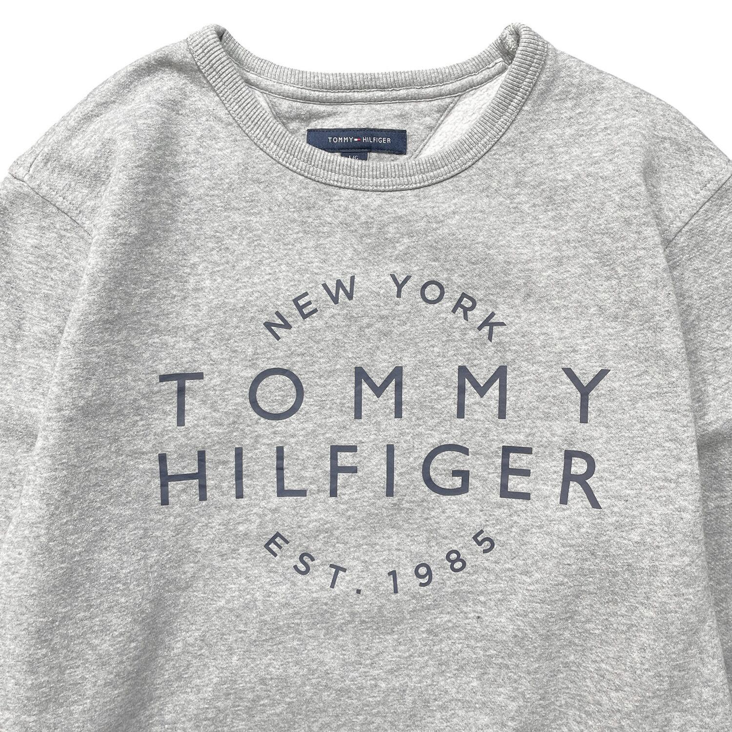 USA 古着 TOMMY HILFIGER トミーヒルフィガー クルーネック スウェット トレーナー プリント グレー 灰色 メンズL BD3317