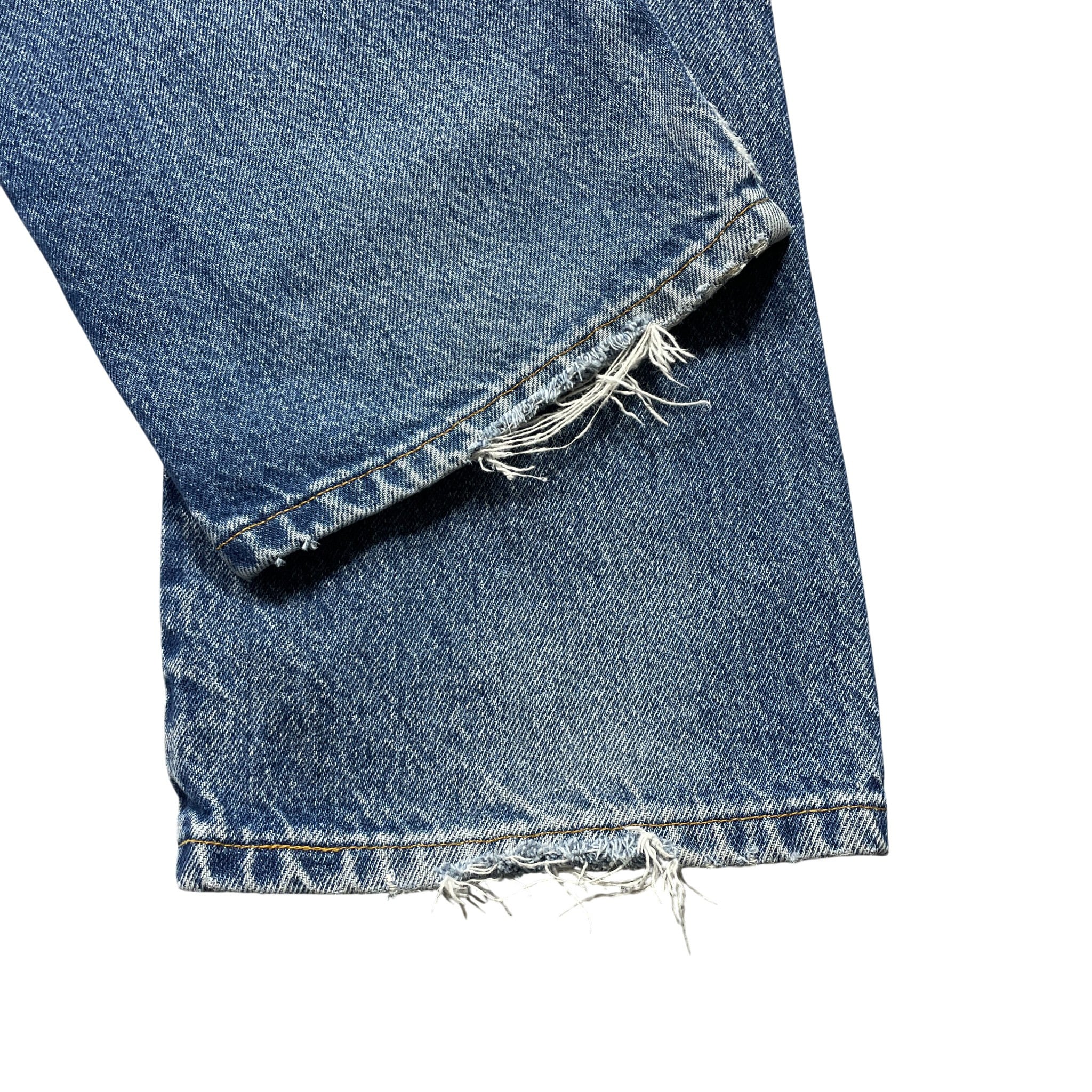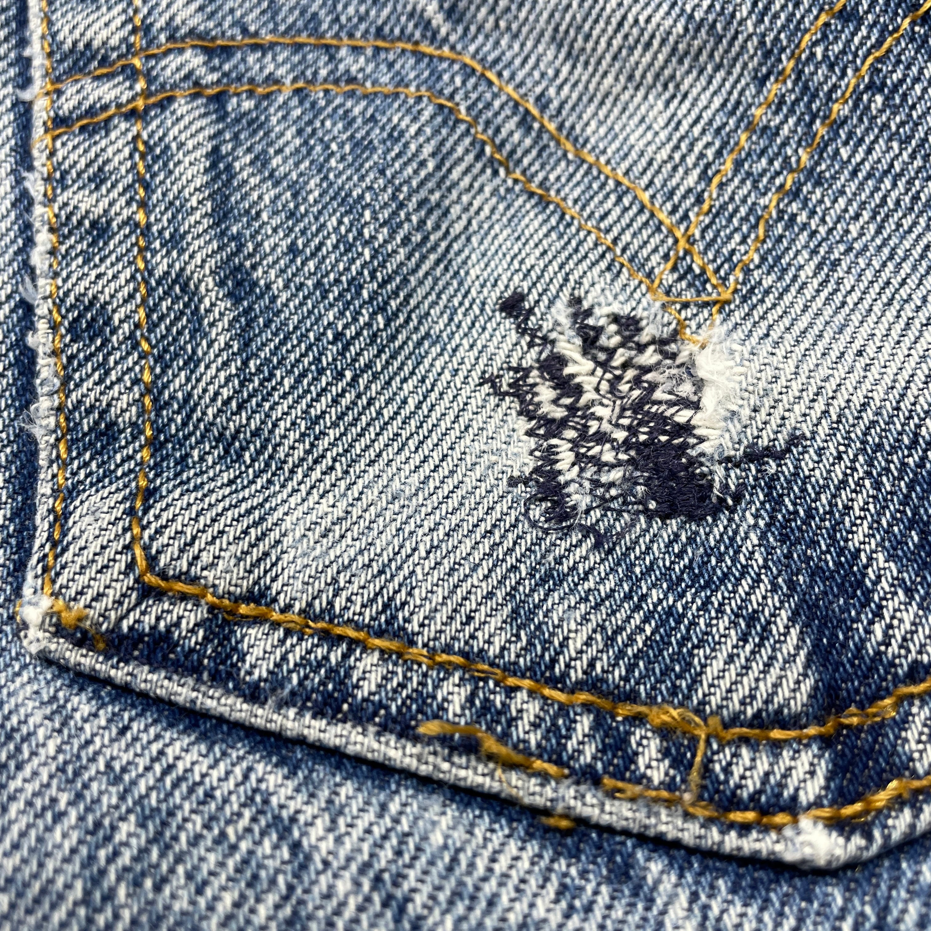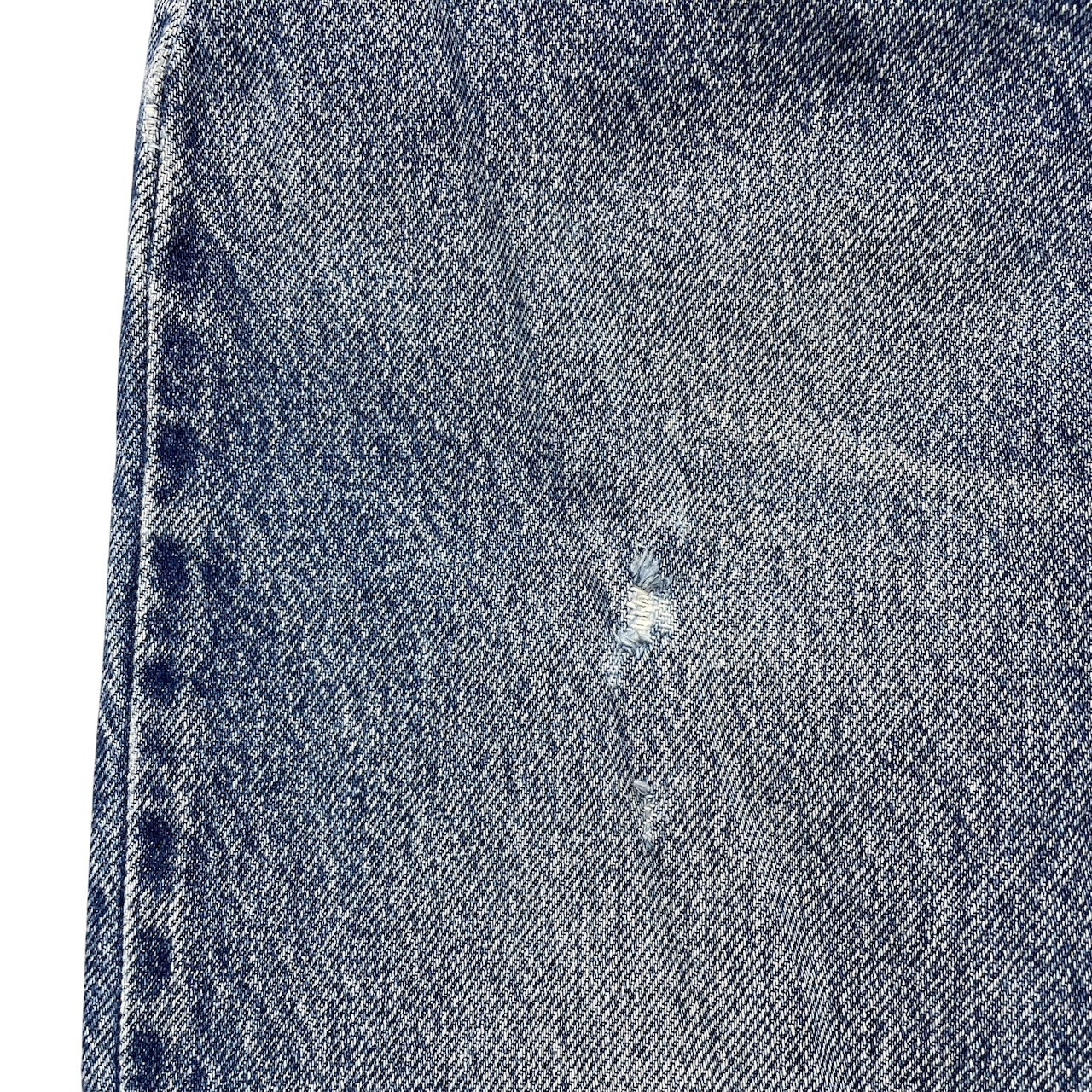 右腿・後ろポケット、裾などにダメージ・リペア箇所があります。
