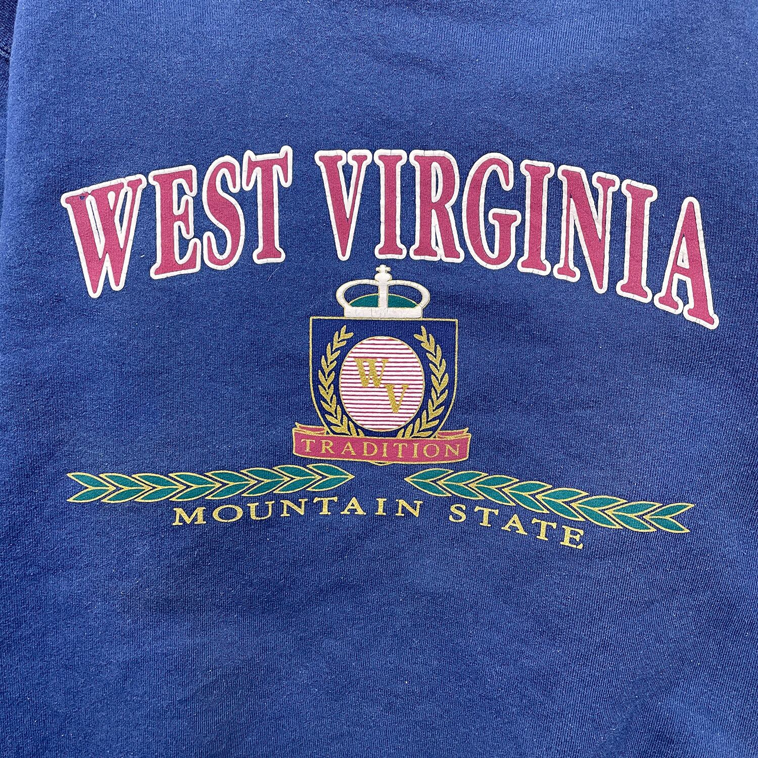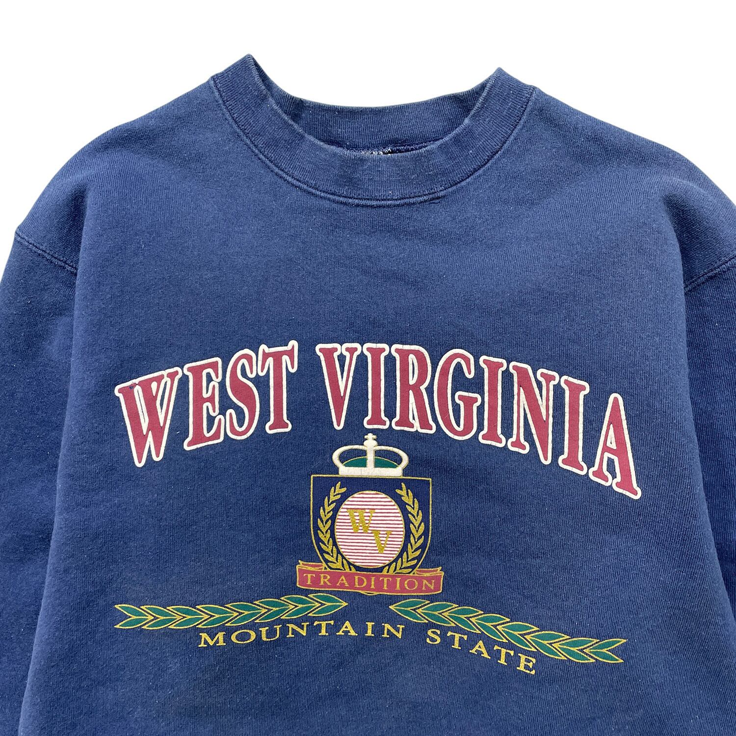 古着 USA製 90S ウェストバージニア大学 カレッジ ヴィンテージ クルーネック スウェット トレーナー プリントロゴ ネイビー メンズM BD3331