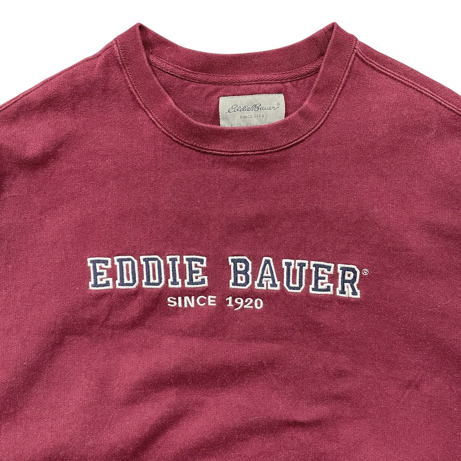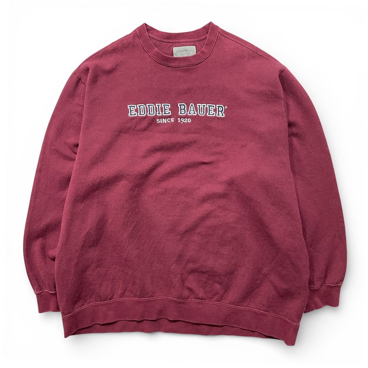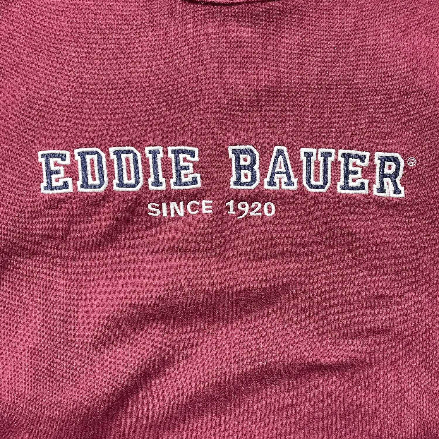 USA 古着 Eddie Bauer エディーバウアー 刺繍 ロゴ クルーネック スウェット トレーナー ボルドー メンズXL アウトドア BD3334