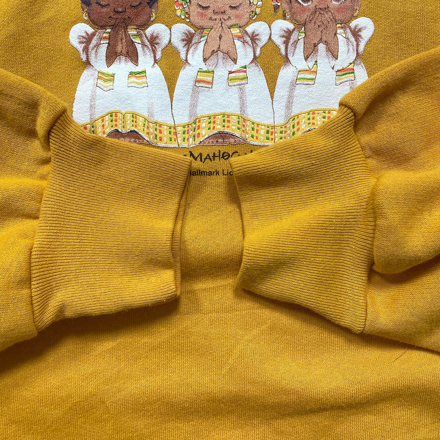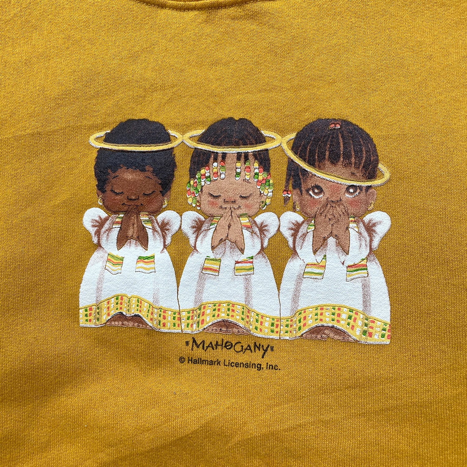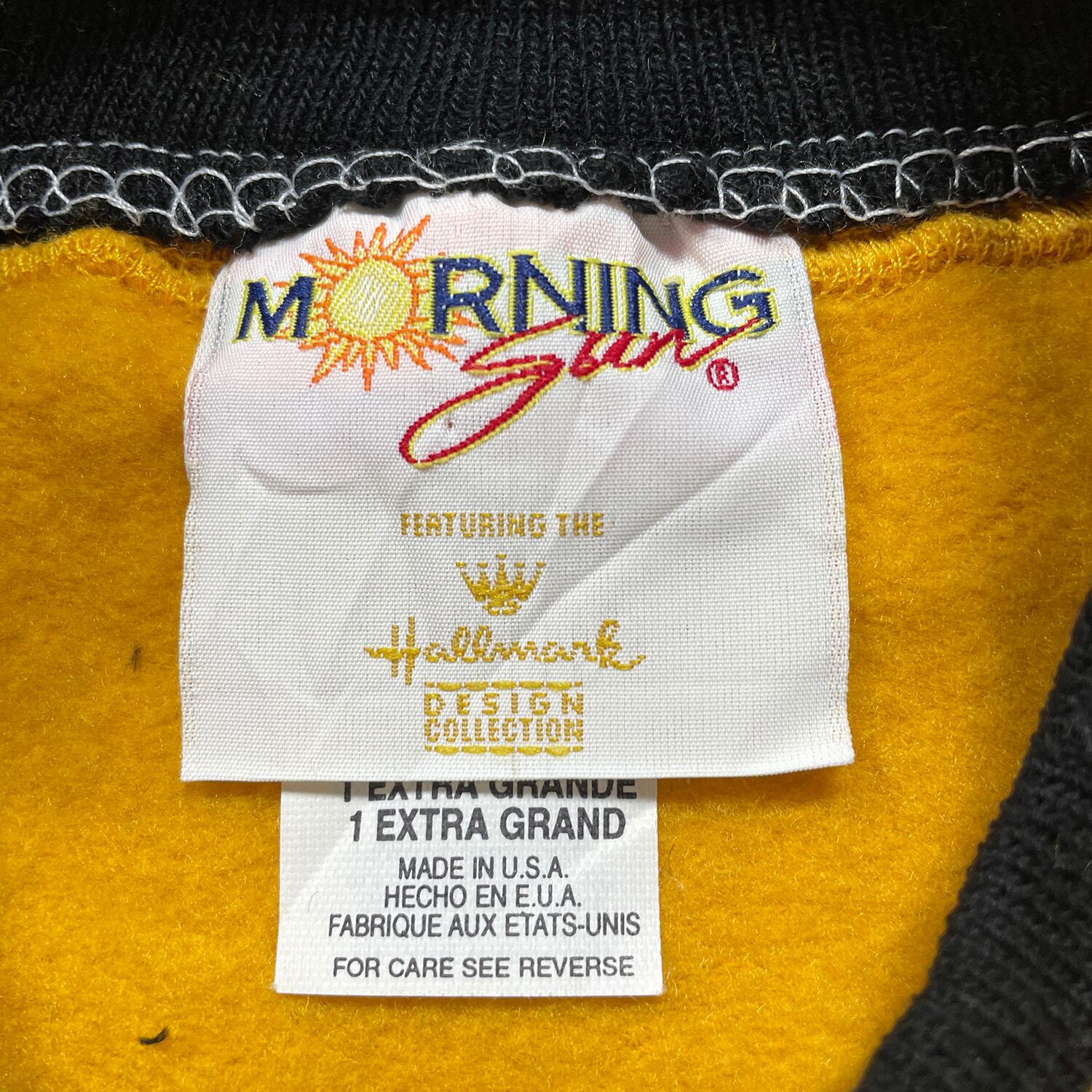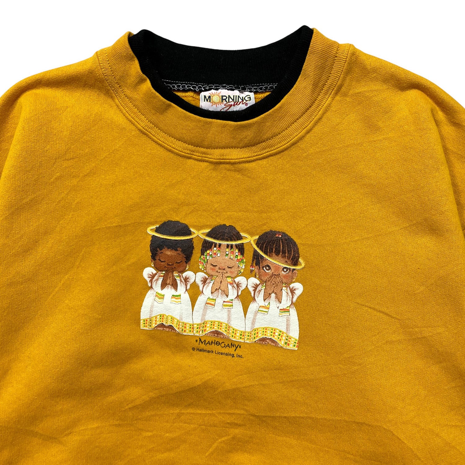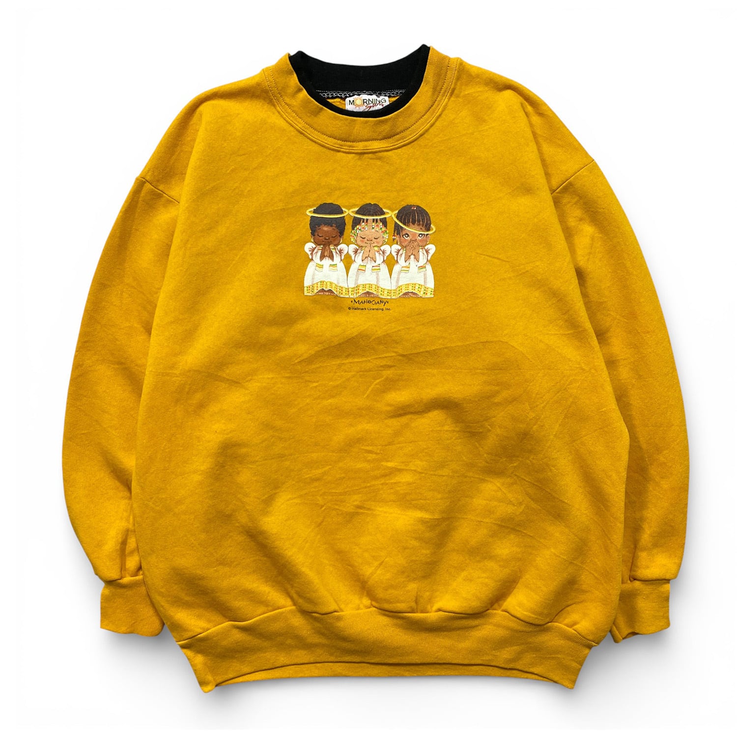 古着 USA製 90S モーニングサン ヴィンテージ ダブルネック スウェット トレーナー 天使 プリント イエロー系 レディース1X BD3339