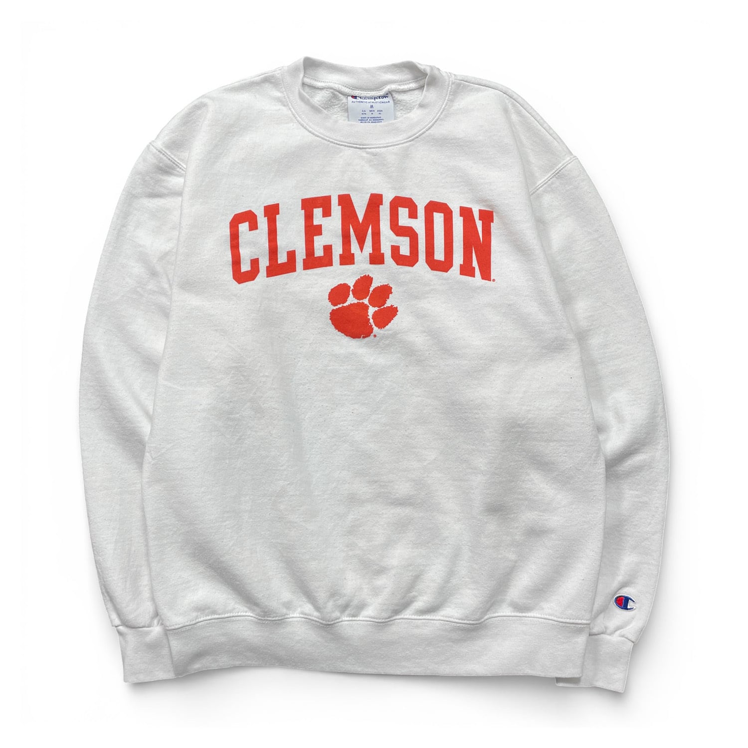USA 古着 Champion チャンピオン クレムソン大学 カレッジ クルーネック スウェット トレーナー プリント ホワイト メンズM BD3373