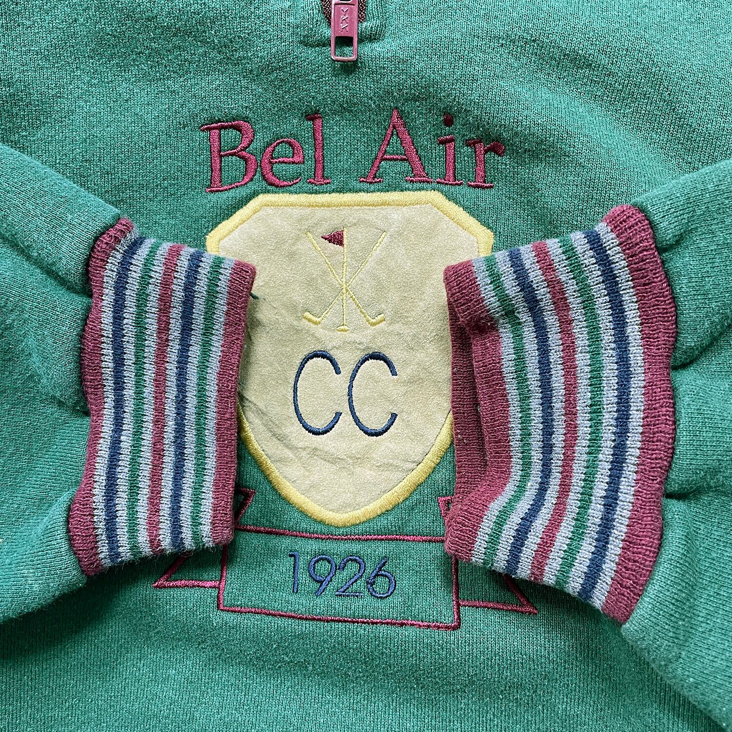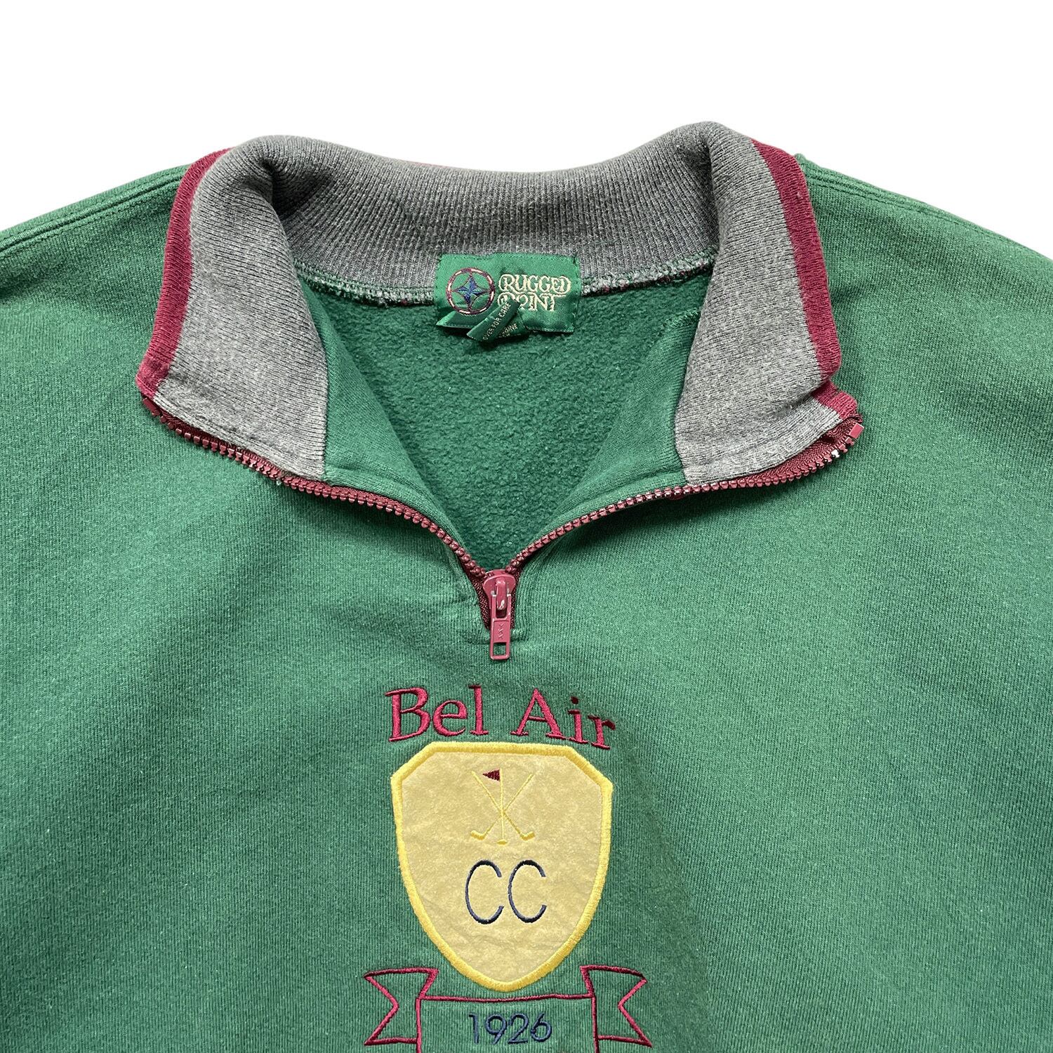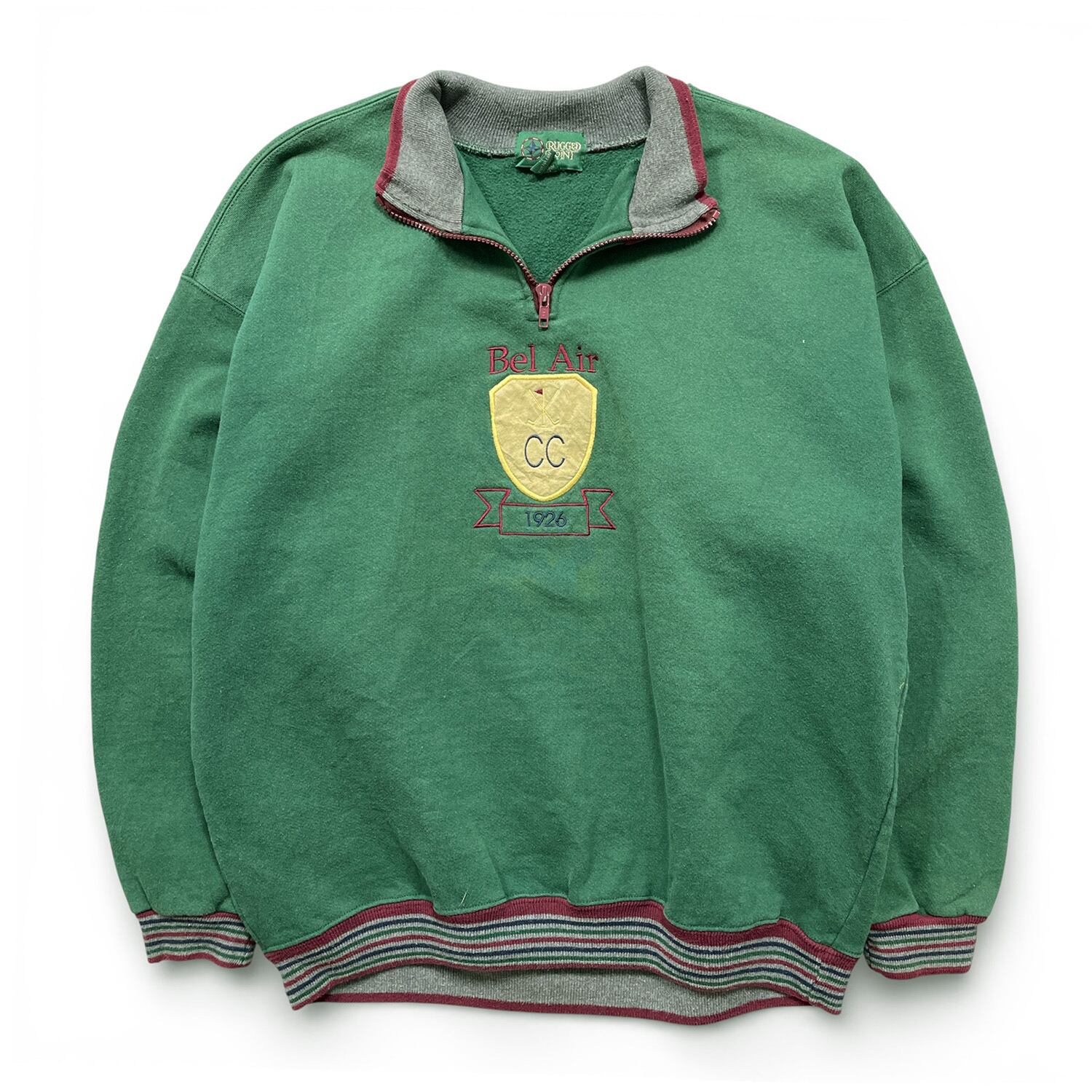 古着 USA製 90S ハーフジップ ヴィンテージ ベルエアカントリークラブ スウェット トレーナー ゴルフ場 刺繍 グリーン メンズXL BD3340