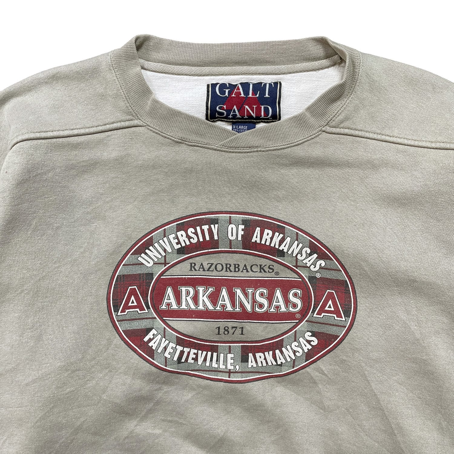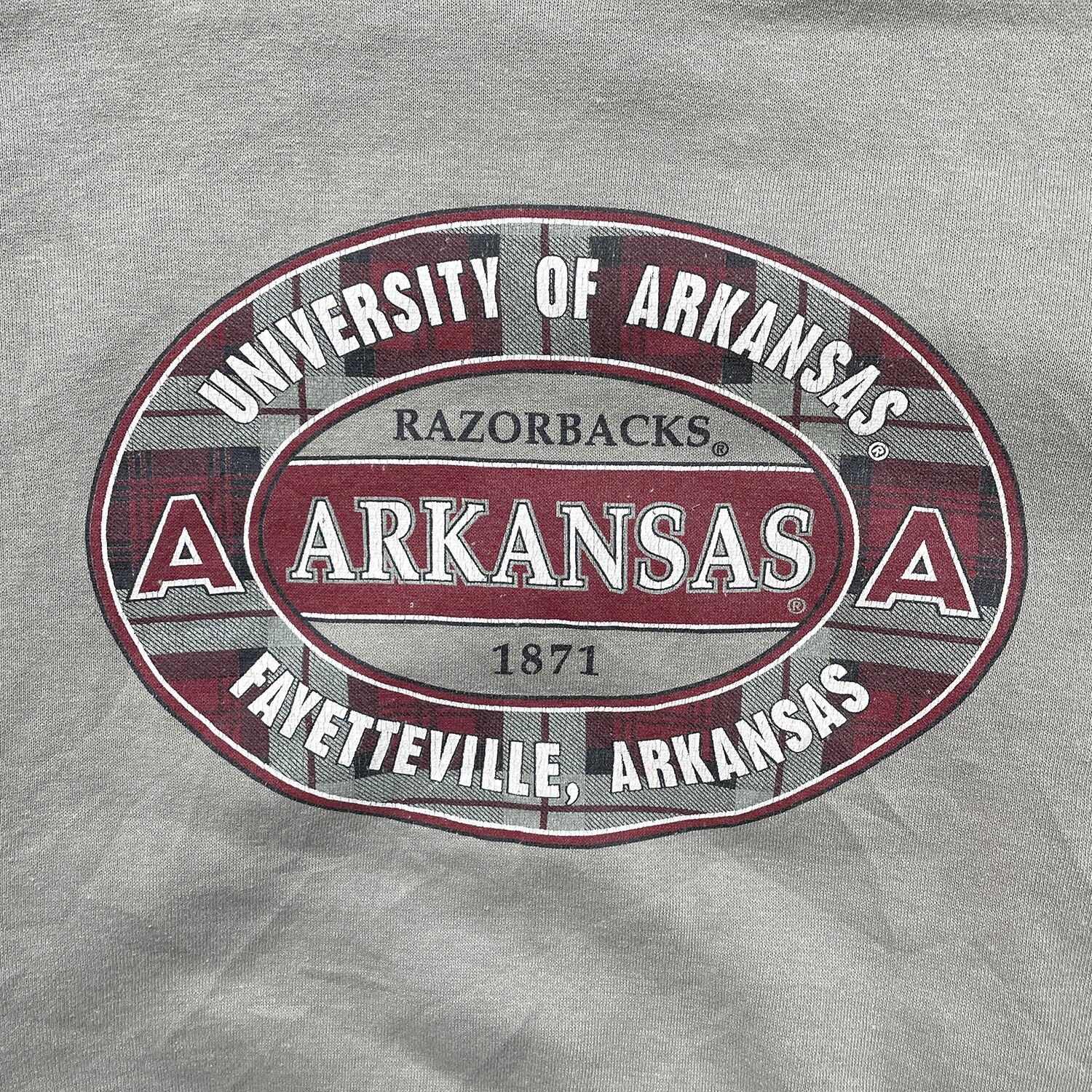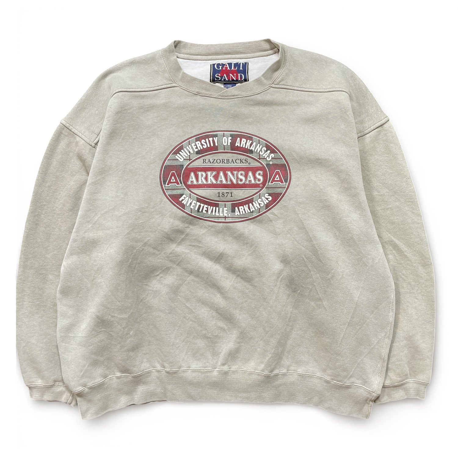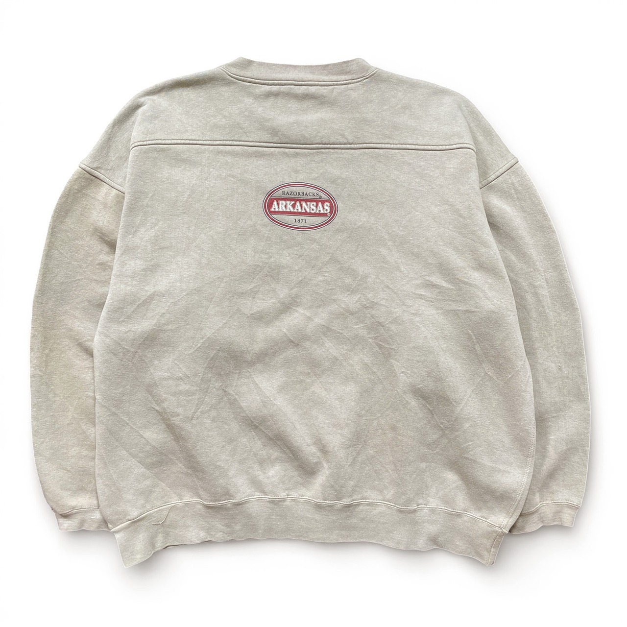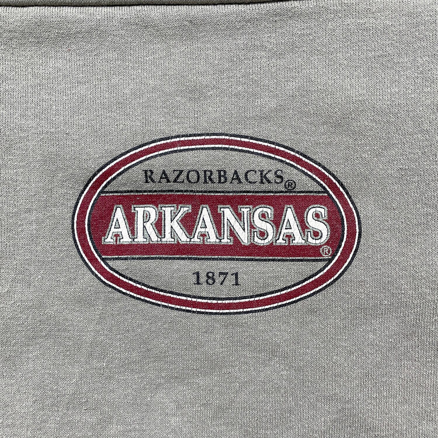 USA 古着 アーカンソー大学 カレッジ ヘビーウェイト スウェット トレーナー プリント カーキ メンズXL BD3345