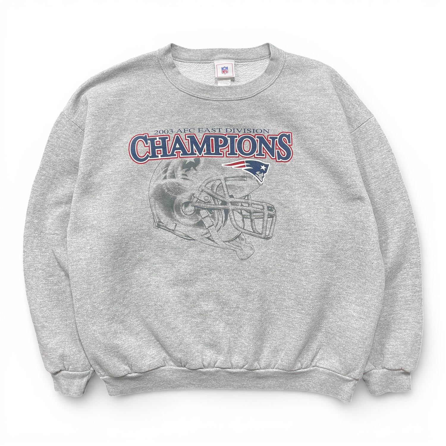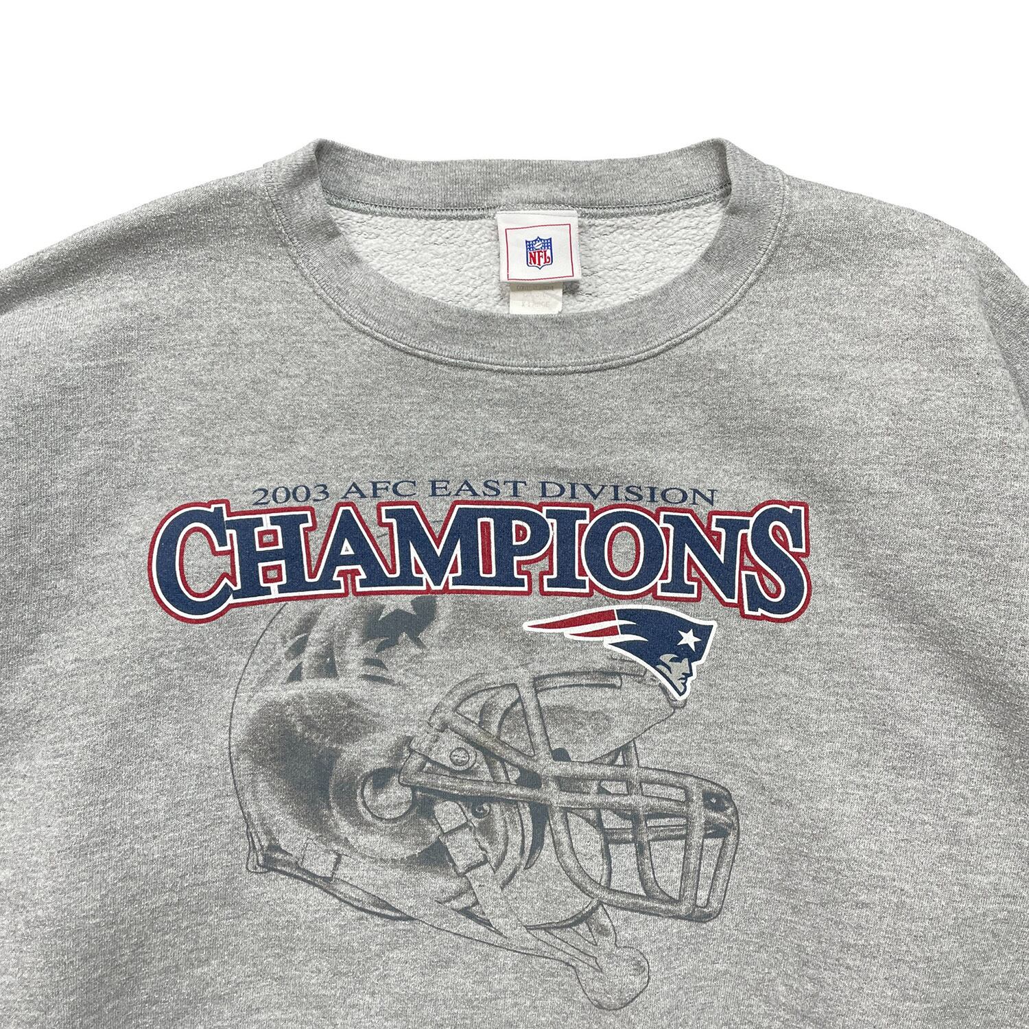 USA 古着 NFL ニューイングランドペイトリオッツ クルーネック スウェット トレーナー プリント グレー メンズXL BD3349