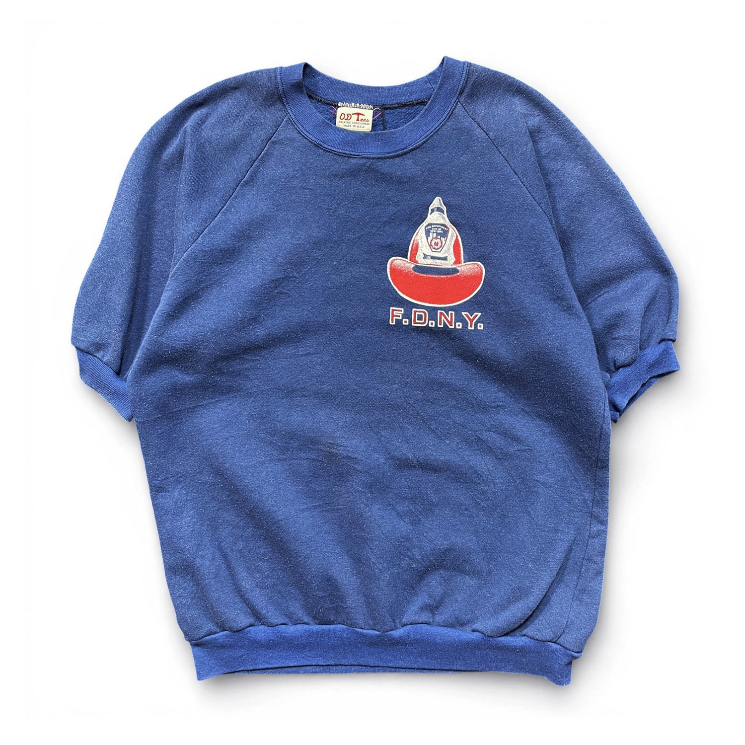 古着 USA製 90S ニューヨーク市消防局 FDNY ヴィンテージ 半袖 スウェット トレーナー プリント ネイビー メンズL BD3353